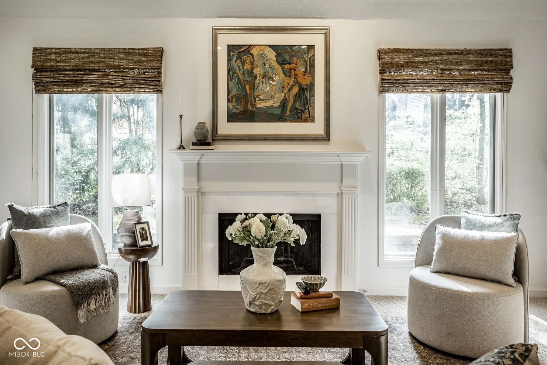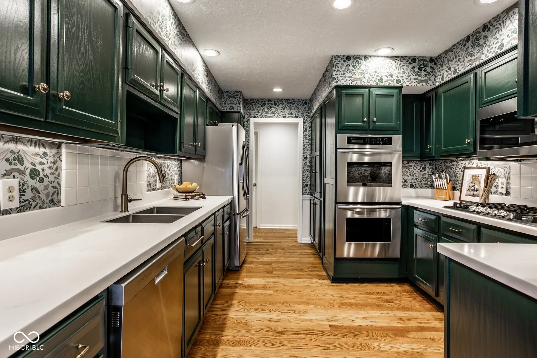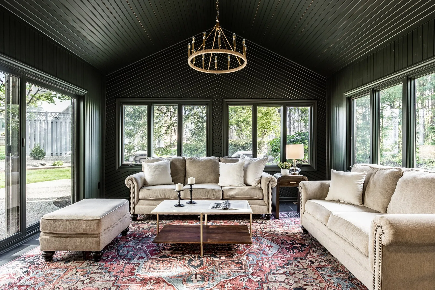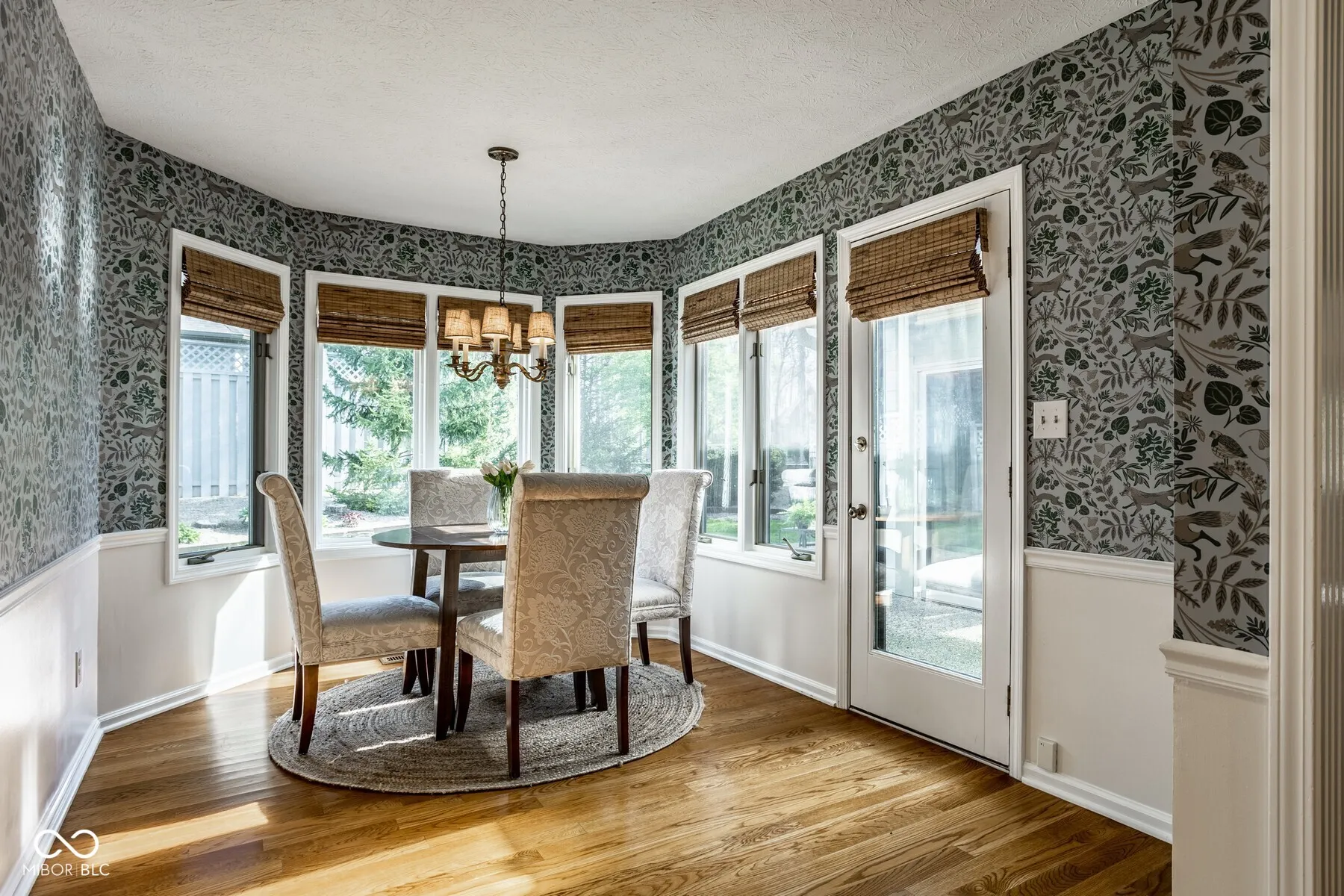 Nestled in the serene community of Springmill Lakes at Tamarack, this elegant end unit is undoubtedly one of the most beautiful in the area. Overlooking the lush Tamarack Nature Preserve, the home offers a perfect blend of traditional charm and modern functionality, surrounded by walking paths, dense woods, and privacy. The inviting entry opens to a newly painted warm interior with gorgeous hard wood flooring and new carpeting. Designed for one floor living, the floor plan facilitates a natural flow from one room to the next, making it ideal for entertaining and comfortable living. The great room, with its abundant natural light, raised ceiling, and wood-burning fireplace, extends into a stunning four-season sunroom that opens onto a private patio nestled among mature trees-a true retreat for relaxation and outdoor enjoyment. The kitchen is a culinary delight, complete with quartz countertops, tile backsplash, stainless steel appliances, and ample preparation spaces. Adjacent to the kitchen, a spacious breakfast room with a bay window offers serene views of the wooded private yard. The full dining room is perfectly suited for hosting dinner parties and special occasions. This floorplan also includes a separate stunning den with paneled walls and built in bookshelves. This home features three bedrooms and three full baths, with the master bedroom offering vaulted ceilings, two walk-in closets, and expansive windows that invite in the natural beauty of the surroundings. The second floor houses a versatile third bedroom or flex space with additional storage options, along with a full bath. New carpet and fresh paint throughout the home add to the pristine feel of the space. Additional conveniences include a large laundry room in the back hall leading from the finished garage, adding to the thoughtful layout of this stunning property.