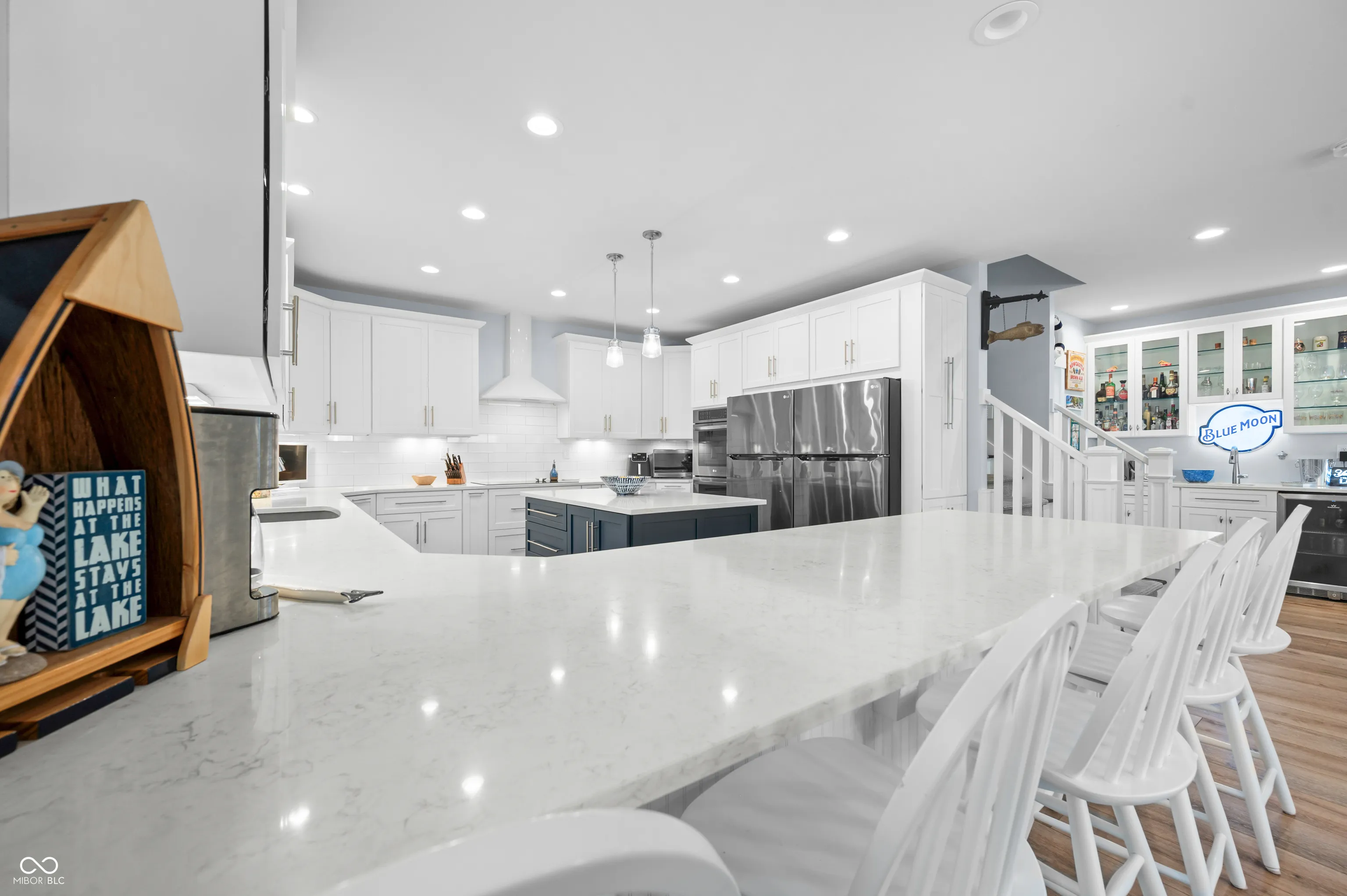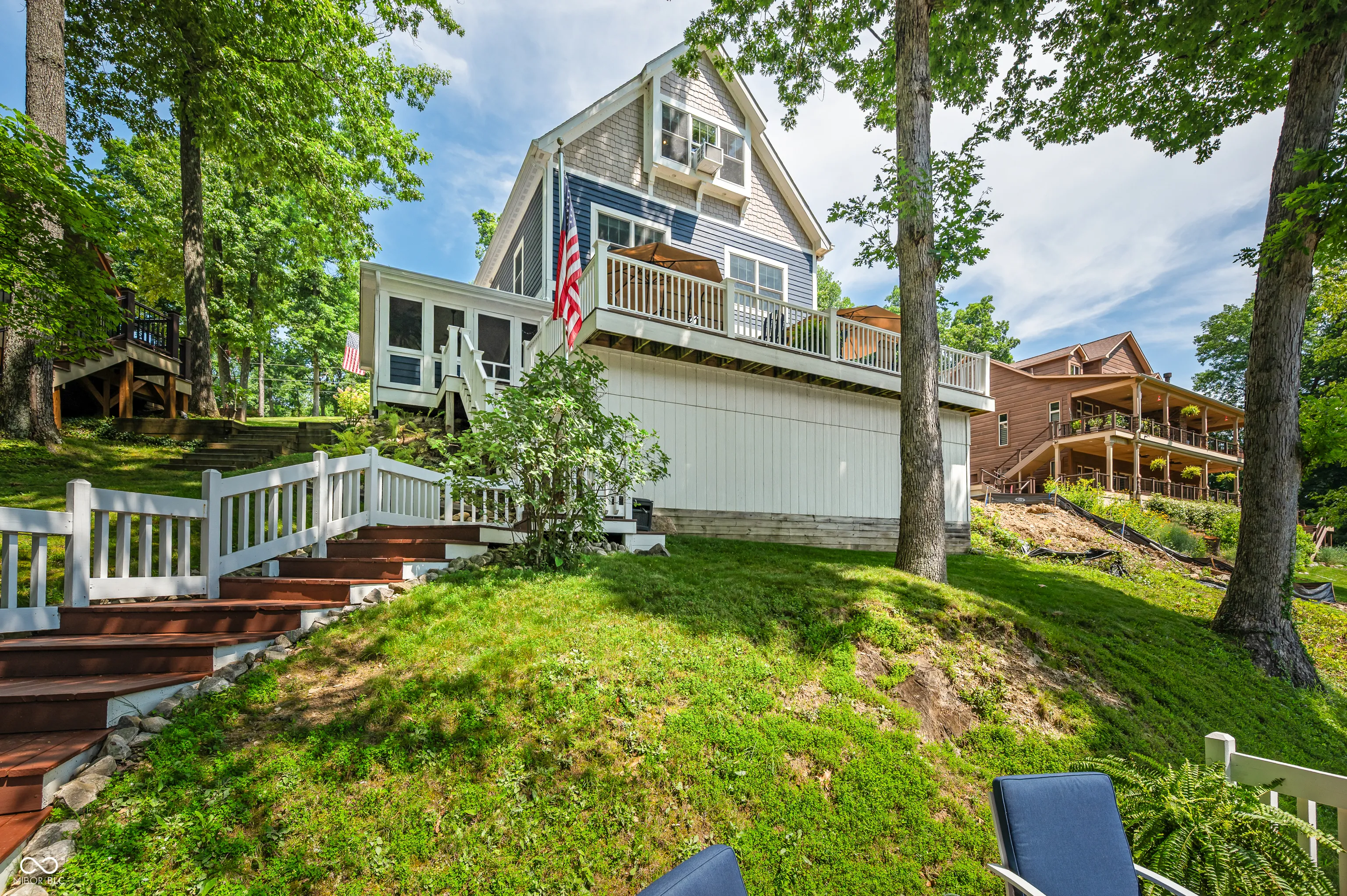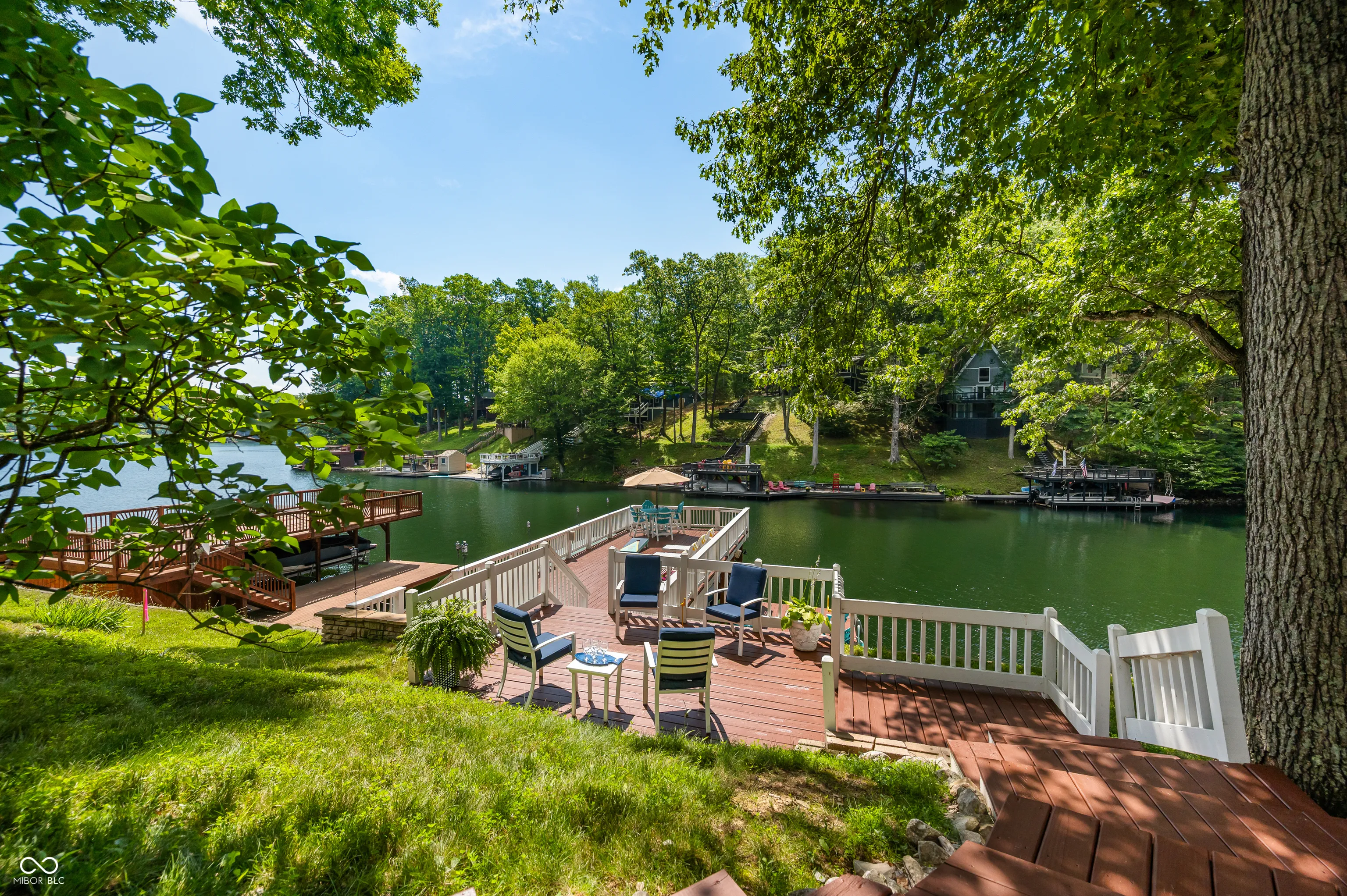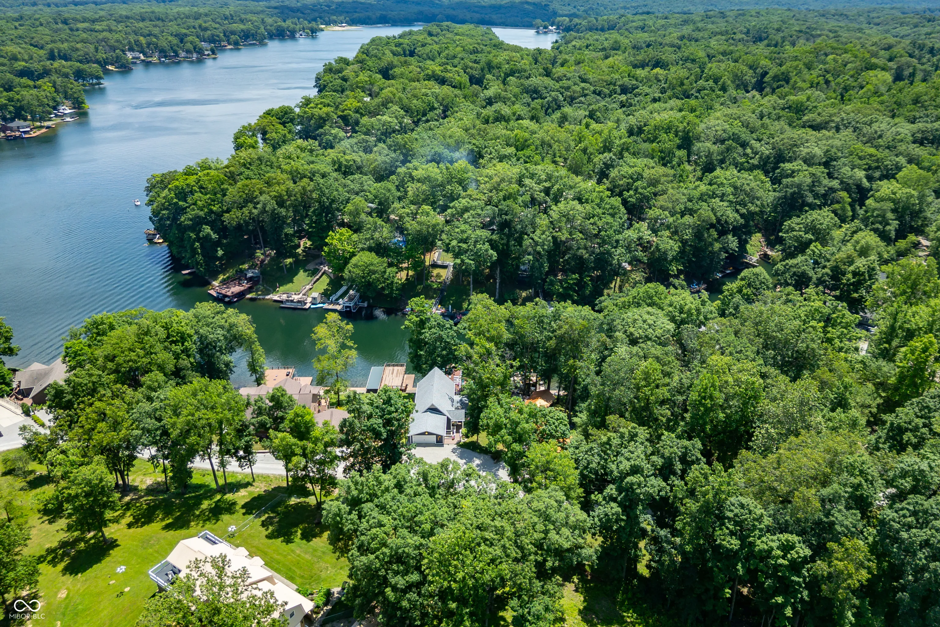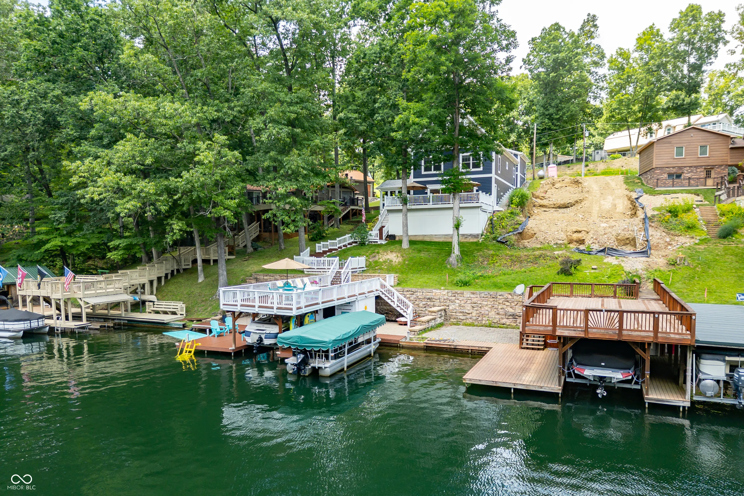 Welcome to 7433 Hummingbird Drive, where thoughtful design and lakeside living come together in perfect harmony. Built with quality in mind, this home features 10″ masonry walls, 6″ exterior framed walls, LP Smart Siding, spray foam insulation on all three levels, and an energy recovery ventilation (ERV) system-offering outstanding durability, efficiency, and comfort. Step inside to a welcoming foyer that sets the tone-elegant, warm, and functional. Just off the entry, a spacious laundry room adds convenience while staying tucked away. All bedrooms are located on the main level, making for seamless day-to-day living or relaxing weekend stays. The primary suite is a peaceful retreat with generous space and a well-designed en-suite bathroom featuring double sinks for added function. The lower-level kitchen is a showstopper. Marble countertops, sleek cabinetry, two full-size refrigerators, and luxury appliances make this space ready for everything from casual dinners to hosting a crowd. Outside is where this home truly shines. The expansive dock features a covered boat slip, a storage shed, and tucked-away storage to keep everything in its place. Above the dock is a large entertaining deck with beautiful lake views, and a second elevated deck provides even more space for relaxing or gathering with friends and family. 7433 Hummingbird Drive isn’t just a home-it’s a lifestyle. Whether you’re seeking everyday comfort, modern finishes, or a true outdoor retreat, this lakeside gem delivers it all.