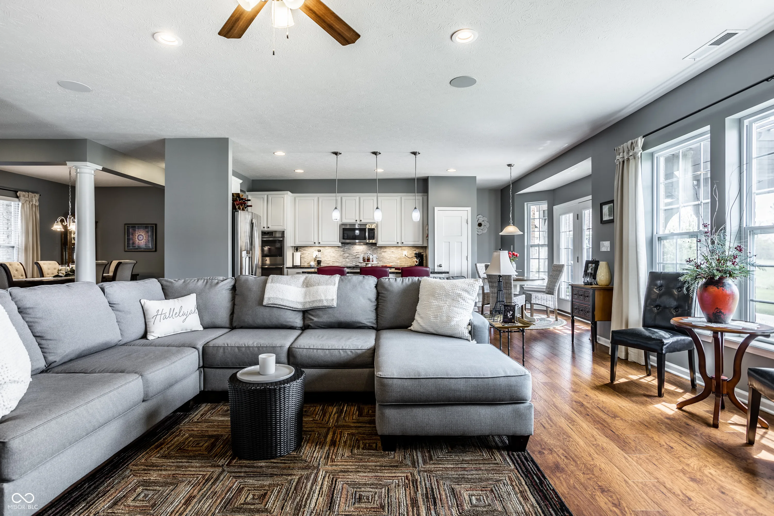 Beautiful and lovingly-maintained all-brick home in Secure, Exclusive Gated community of Abbey Road. 3 Beds/2 Full Baths with Custom Primary Closet and Gentleman’s Closet! Gorgeously updated Kitchen with “Barely used” SS appliances, Granite countertops, beautiful tile backsplash, and large center island for wonderful flow to the large Great Room. Perfect for Entertaining! Open Loft space tucked away for a private home office, home gym, kids’ playroom, or extra 4th Bedroom! The Outdoor Entertaining space affords privacy and charm with the paved patio, pergola, overhead fan, and privacy panels. Abbey Road offers a Community Clubhouse w/Workout Facility, Lawncare/Fertilization, and Snow Removal right to your front door plus easy access to I-65 for quick zips to Indy, Greenwood, and Columbus!