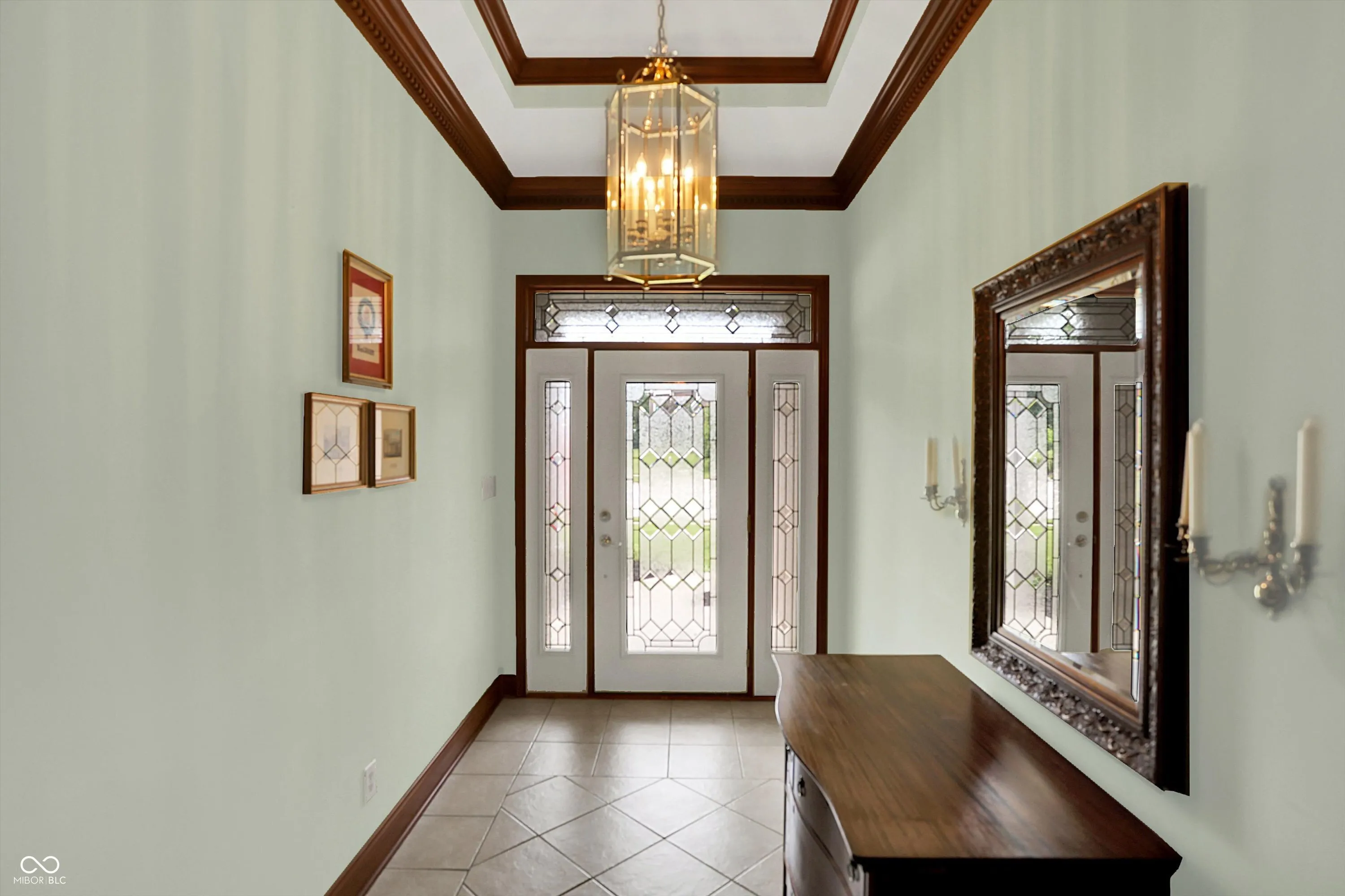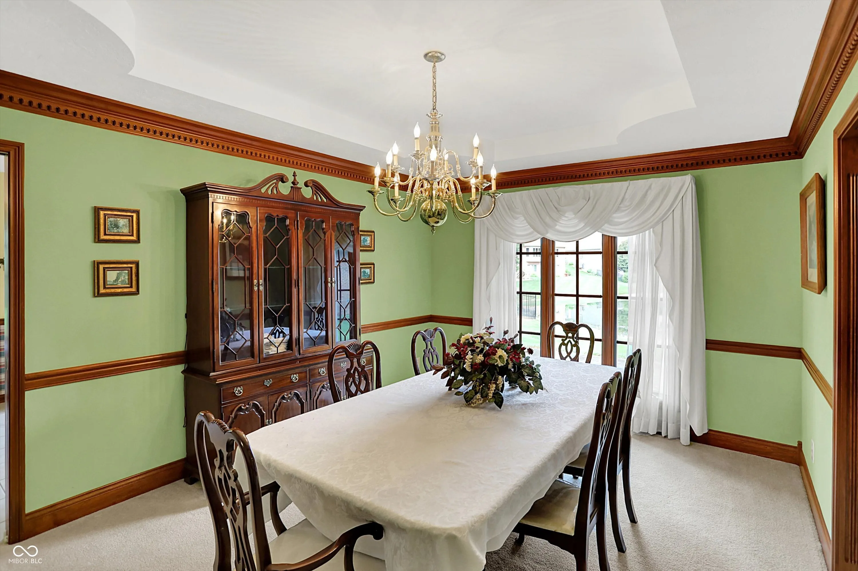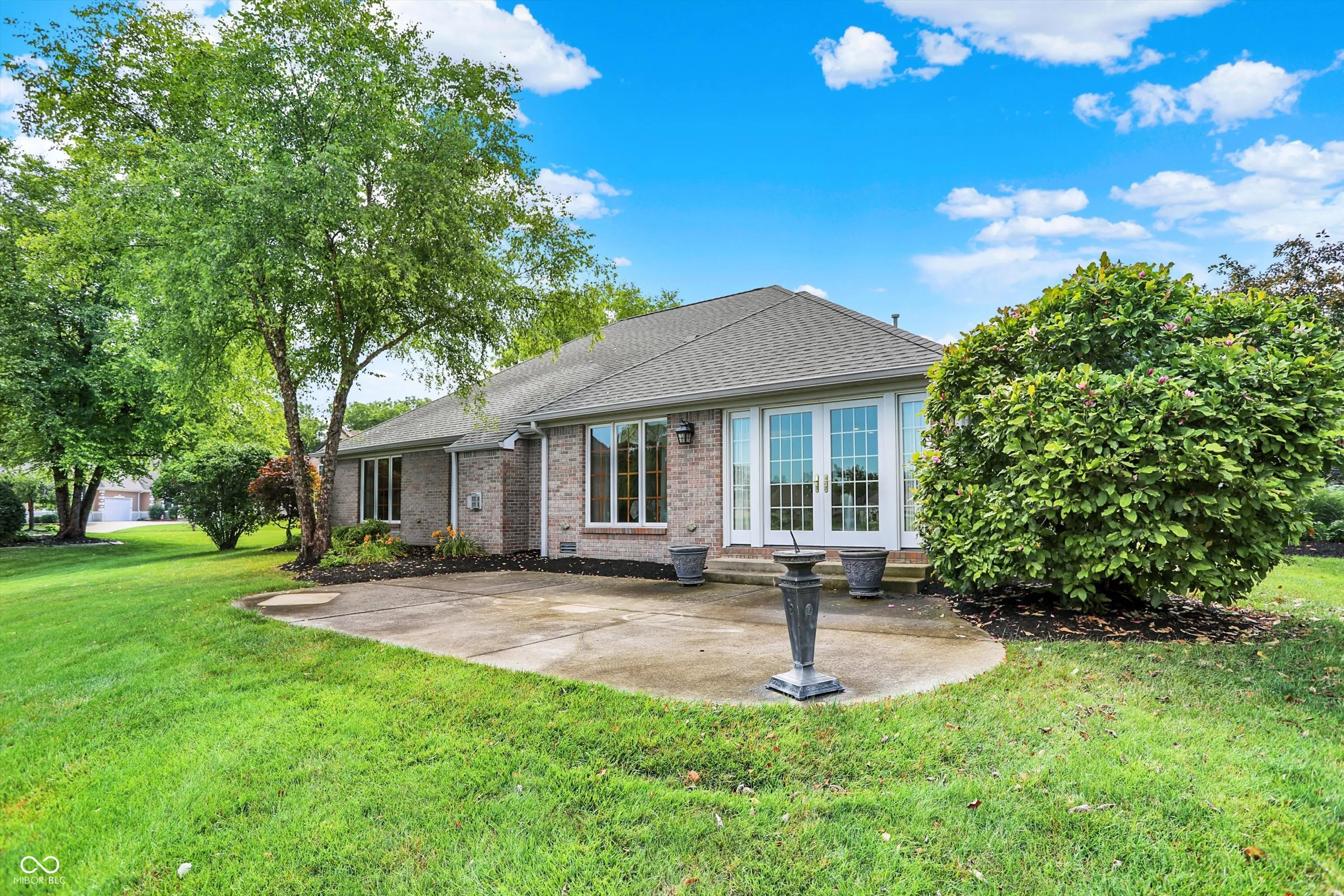 Luxurious 3-Bedroom, 2.5-Bath Brick Home in Walnut Woods. Welcome to this elegant brick home featuring 3 bedrooms and 2.5 baths, located in the desirable Walnut Woods neighborhood. Step through the front door, framed by side lights and a transom window, into a grand entryway with a 10-foot tray ceiling, crown molding, and tile flooring. The home opens into a captivating great room with vaulted ceilings and a cozy gas fireplace-perfect for relaxing or entertaining. Just off the great room is a formal dining room with a tray ceiling, ideal for hosting guests in style. The kitchen boasts cherry cabinetry, a center island, granite countertops, a pantry, tile floors, and a bright breakfast room. Adjacent to the breakfast area is a charming sitting room with a tray ceiling and French doors that lead to a spacious patio offering stunning views of the pond. The primary suite features a tray ceiling, walk-in closet, and a luxurious bath with double sinks, a whirlpool tub with a custom window above, and a separate stand-alone shower. All bedrooms include ceiling fans and generous closet space. Throughout the home, you’ll find custom trim and ceiling details that add to its character and craftsmanship. Beautifully landscaped with a full sprinkler system, the exterior is just as impressive. The oversized, finished 3-car garage includes a floor drain, keyless entry, pull-down attic access, a service door, a storage area, and pegboard for your tools. This truly is a wonderful home-inside and out!