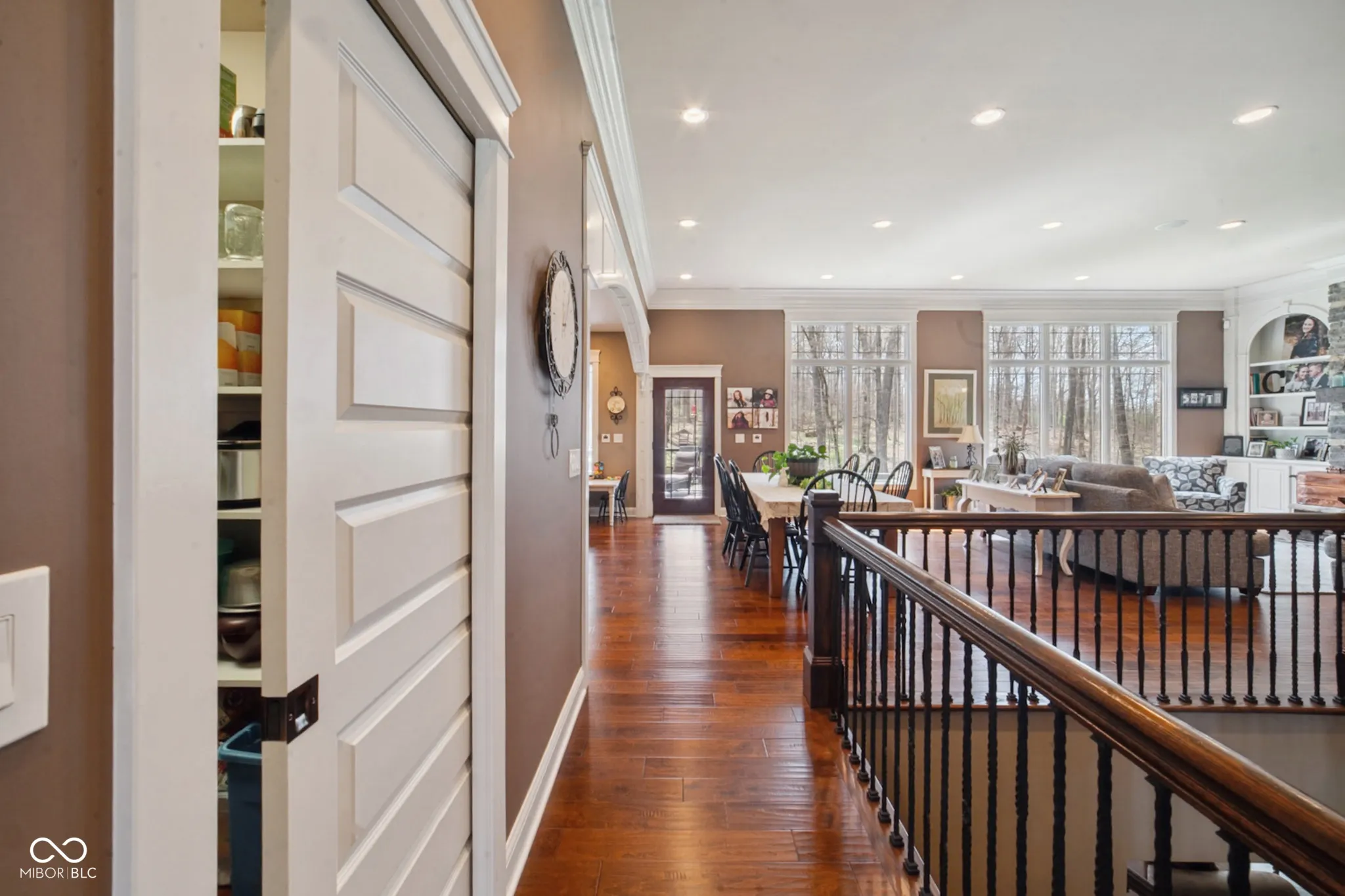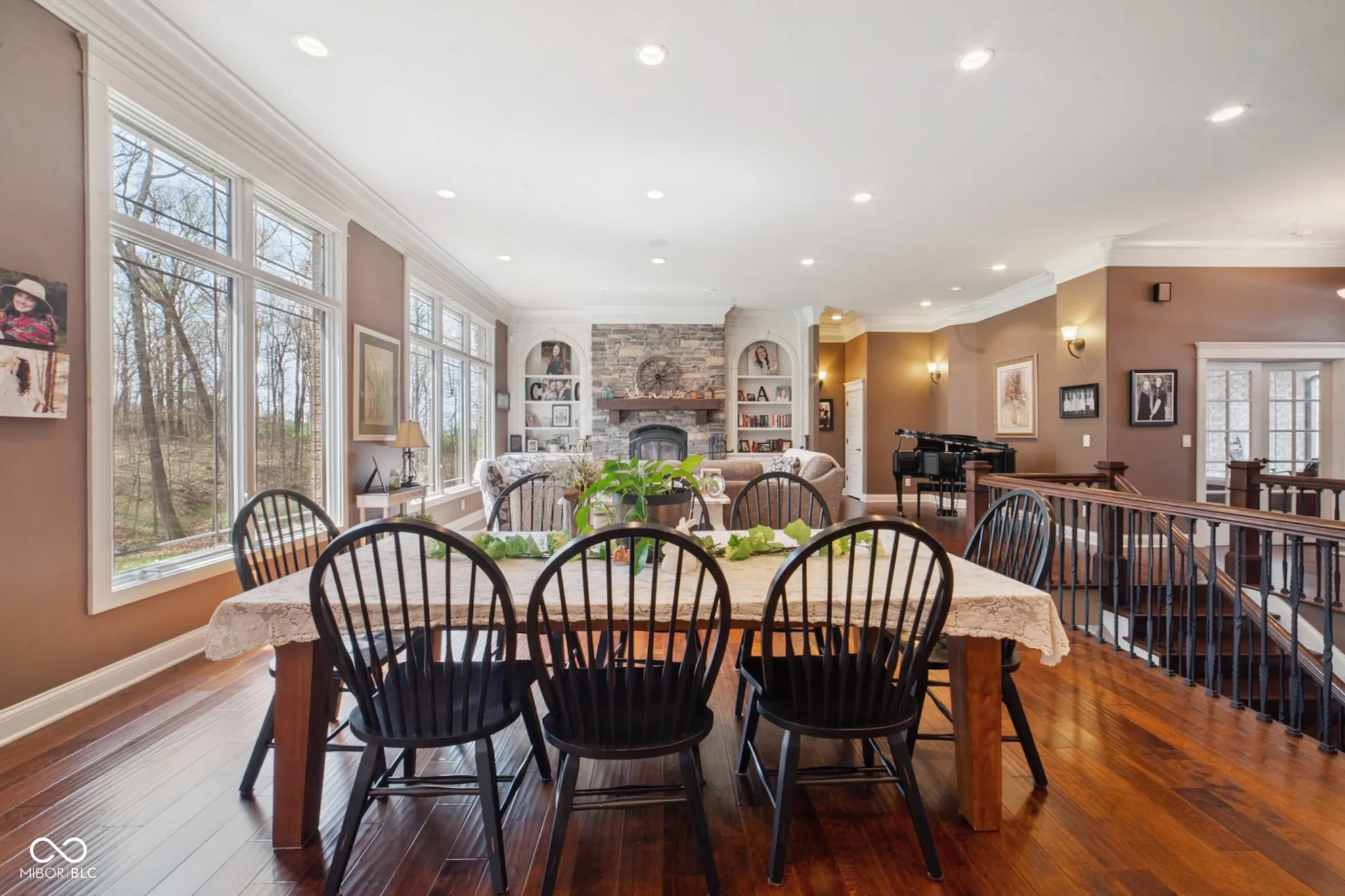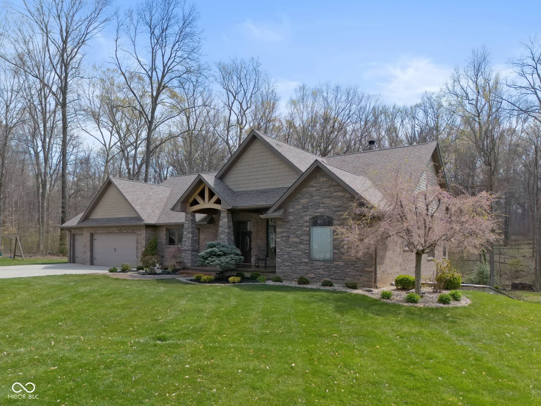 Welcome to 7777 E 50 N, a nearly 5,000 sq ft executive home on 8 private wooded acres. Built in 2013 and awarded Jackson County’s Most Efficient Home, this property combines luxury living with energy efficiency, featuring geothermal heating and cooling. Inside, the home offers four spacious bedroom suites each with private bathrooms and walk-in closets. One suite includes a kitchenette, ideal for guests or in-laws. Custom Amish-made cabinetry and detailed woodwork are featured throughout, along with built-in bookcases, window seats, and hardwood floors. The main living area is centered around a large stone wood-burning fireplace and expansive windows with views of the surrounding woods. The chef’s kitchen includes granite countertops, a large island, top-tier appliances, and a reverse osmosis water system. The primary suite features heated tile floors, a walk-in marbled shower, a whirlpool tub, and a large walk-in closet. Entertainment is easy with a theater room featuring surround sound and a whole-home speaker system that extends to the decks. Outdoor living includes a large covered porch, a screened-in porch, a lower patio, and a landscaped fire pit area. The land offers ATV trails, a creek, a food plot, a hunting tower, and fruit trees. The 3-car garage includes built-in shelving, a utility sink, and a cedar-lined closet for gear. This one-of-a-kind property offers comfort, privacy, and natural beauty, perfect for those seeking a high-quality home in a peaceful setting. An additional 13.49 acres for sale behind the property.