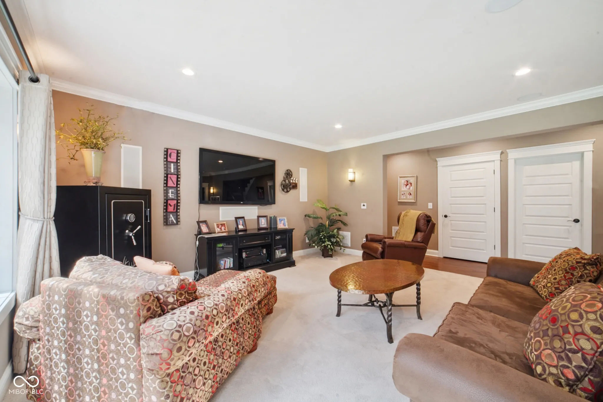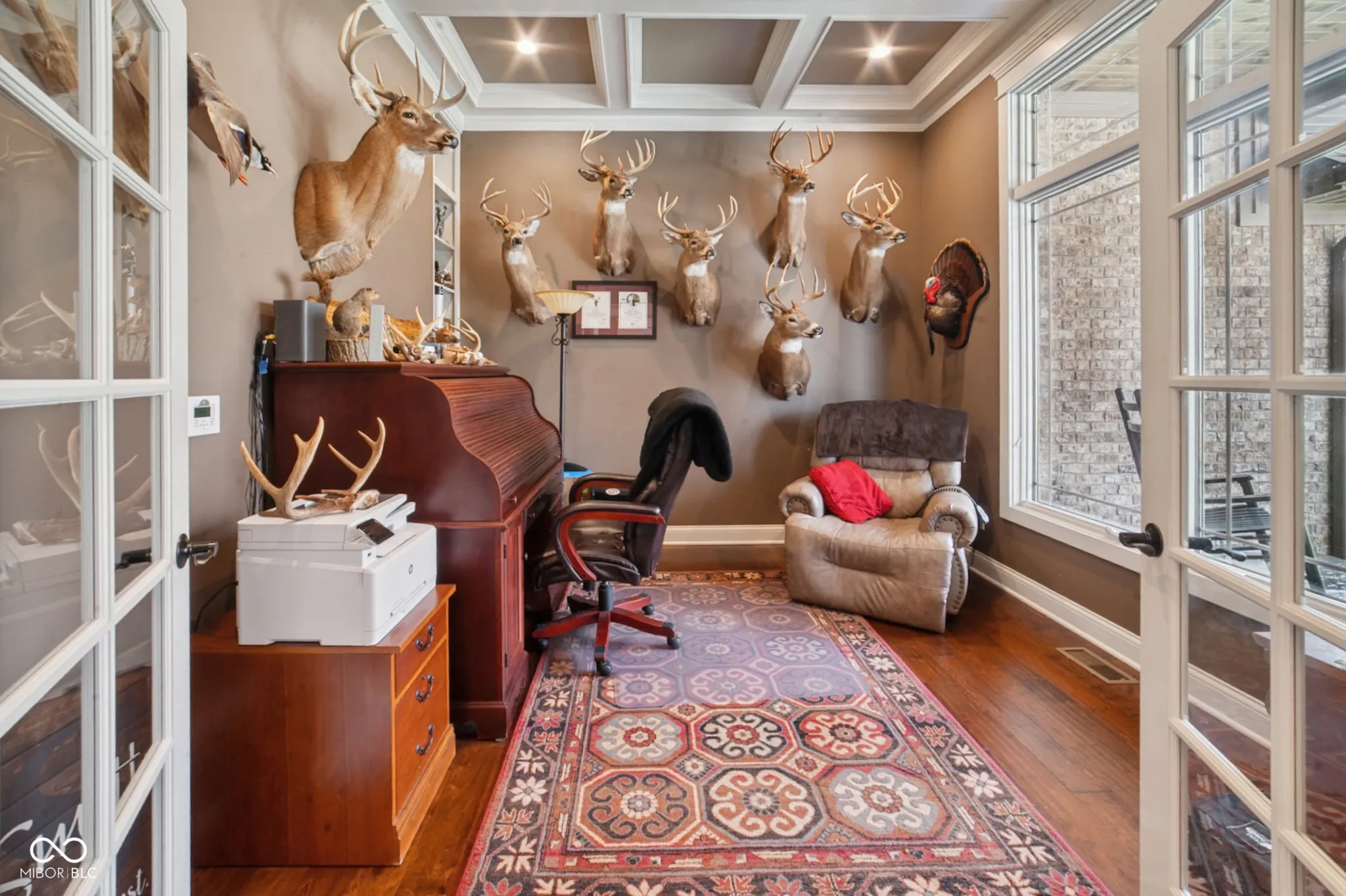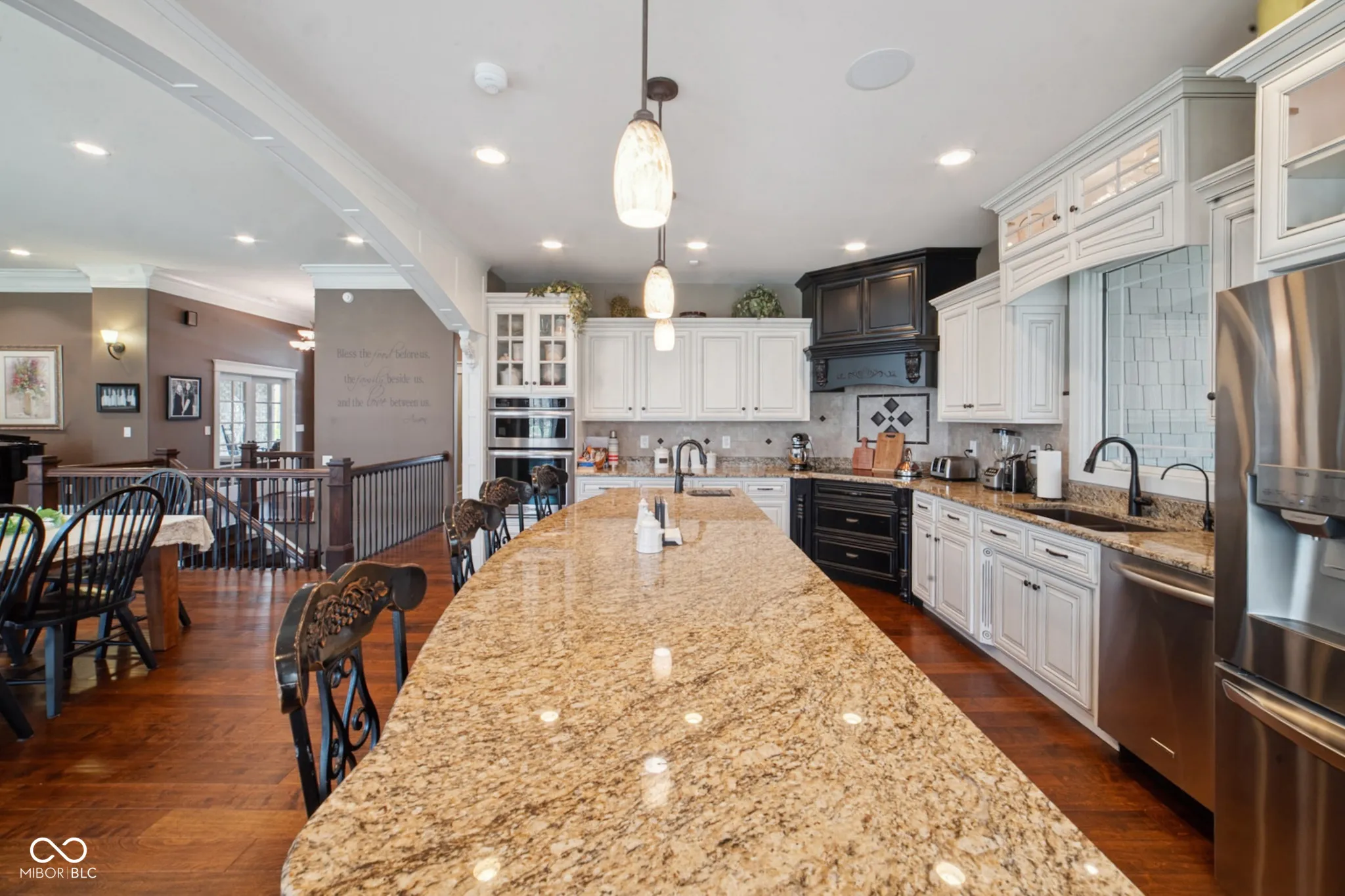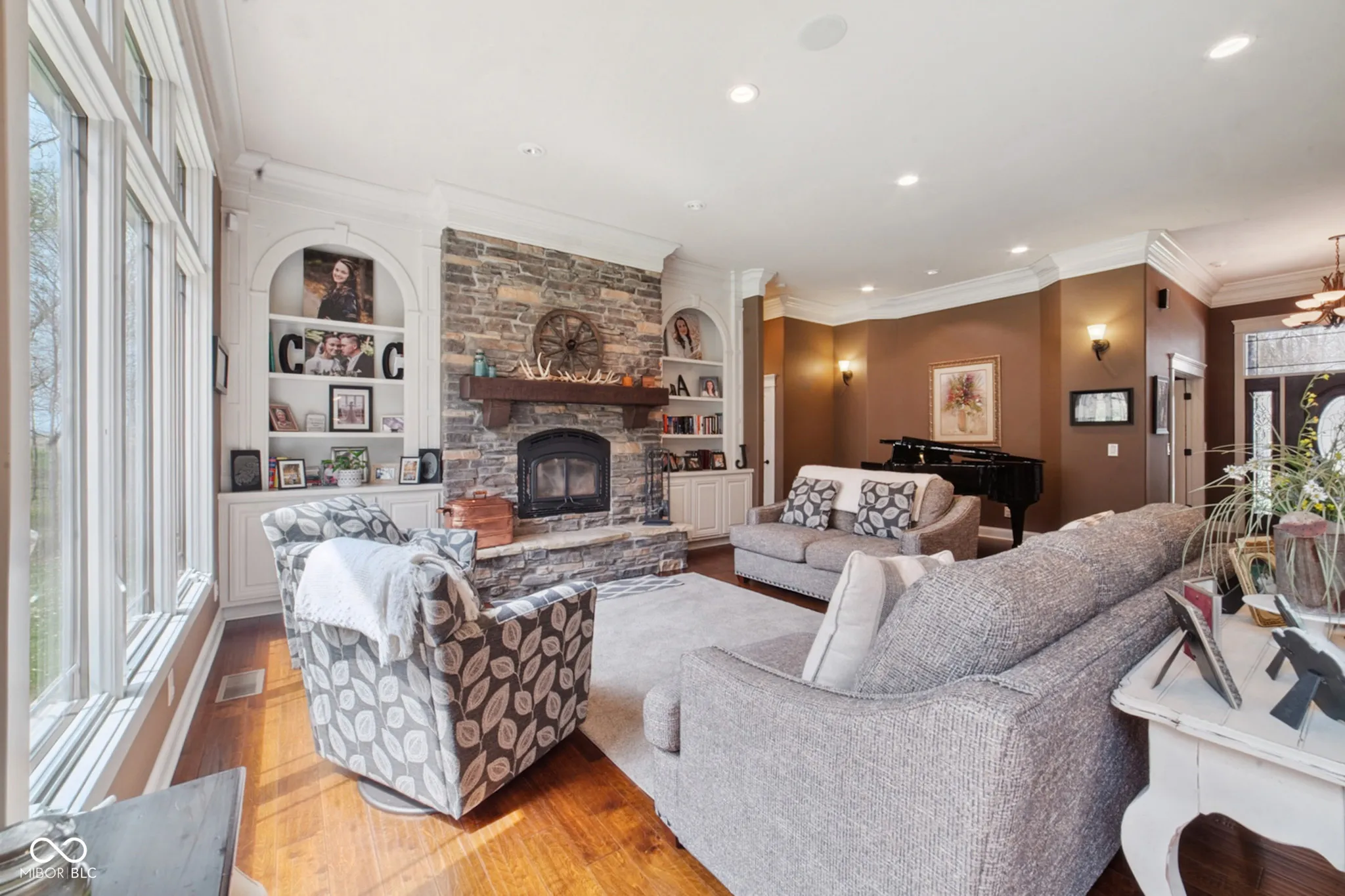Welcome to 7777 E 50 N, a nearly 5,000 sq ft executive home on 8 private wooded acres. Built in 2013 and awarded Jackson County’s Most Efficient Home, this property combines luxury living with energy efficiency, featuring geothermal heating and cooling. Inside, the home offers four spacious bedroom suites each with private bathrooms and walk-in closets. One suite includes a kitchenette, ideal for guests or in-laws. Custom Amish-made cabinetry and detailed woodwork are featured throughout, along with built-in bookcases, window seats, and hardwood floors. The main living area is centered around a large stone wood-burning fireplace and expansive windows with views of the surrounding woods. The chef’s kitchen includes granite countertops, a large island, top-tier appliances, and a reverse osmosis water system. The primary suite features heated tile floors, a walk-in marbled shower, a whirlpool tub, and a large walk-in closet. Entertainment is easy with a theater room featuring surround sound and a whole-home speaker system that extends to the decks. Outdoor living includes a large covered porch, a screened-in porch, a lower patio, and a landscaped fire pit area. The land offers ATV trails, a creek, a food plot, a hunting tower, and fruit trees. The 3-car garage includes built-in shelving, a utility sink, and a cedar-lined closet for gear. This one-of-a-kind property offers comfort, privacy, and natural beauty, perfect for those seeking a high-quality home in a peaceful setting. An additional 13.49 acres for sale behind the property.