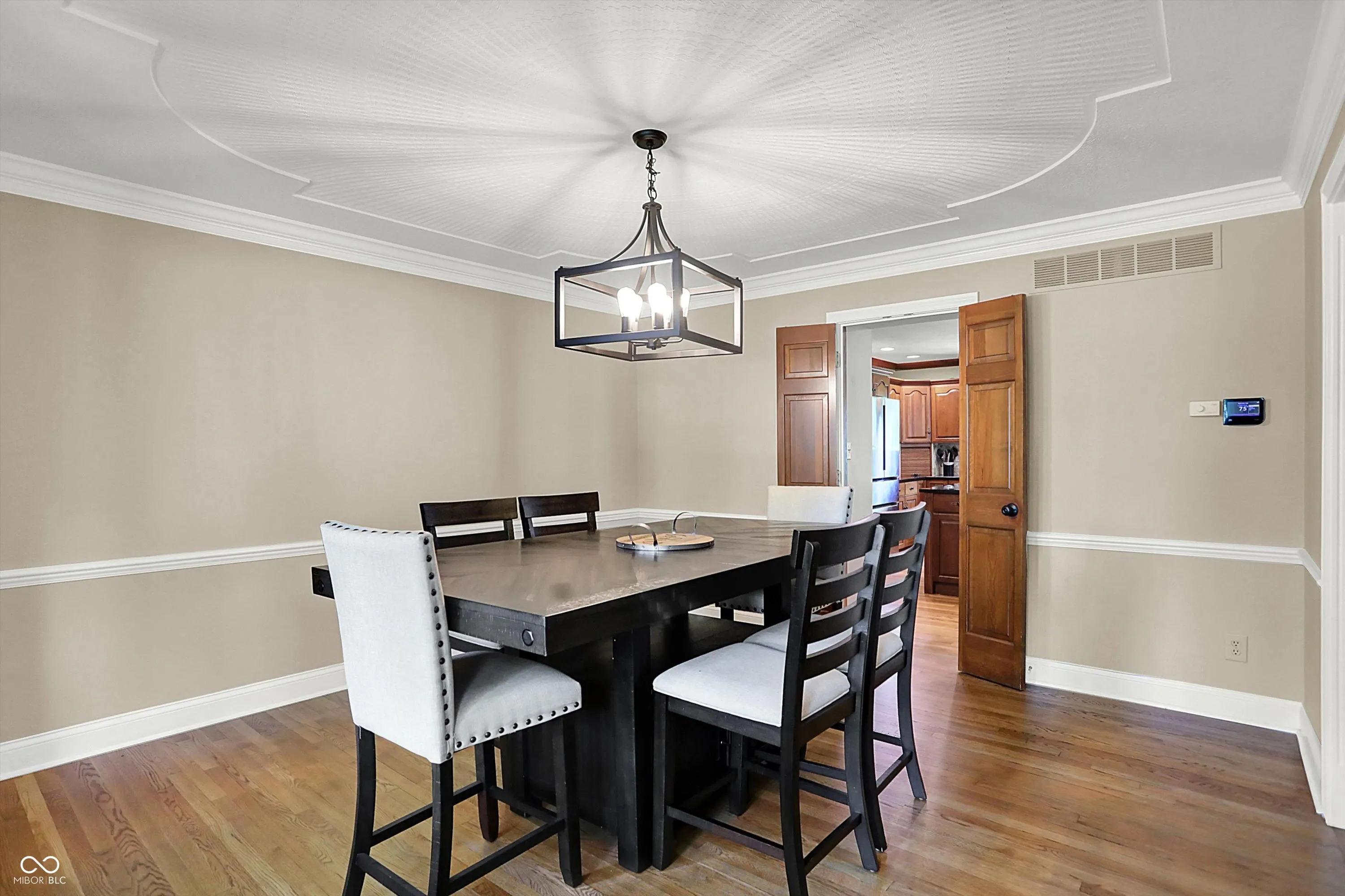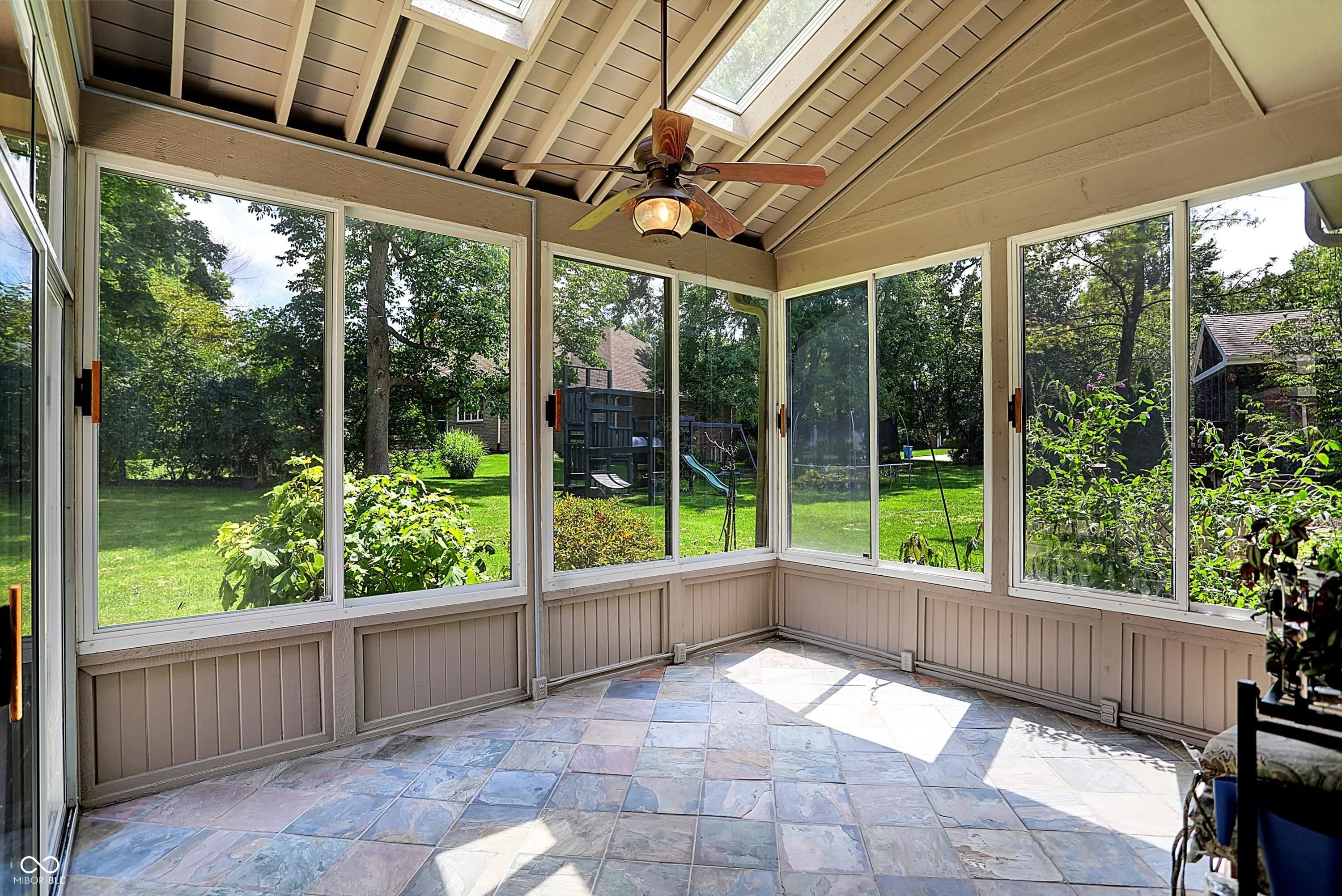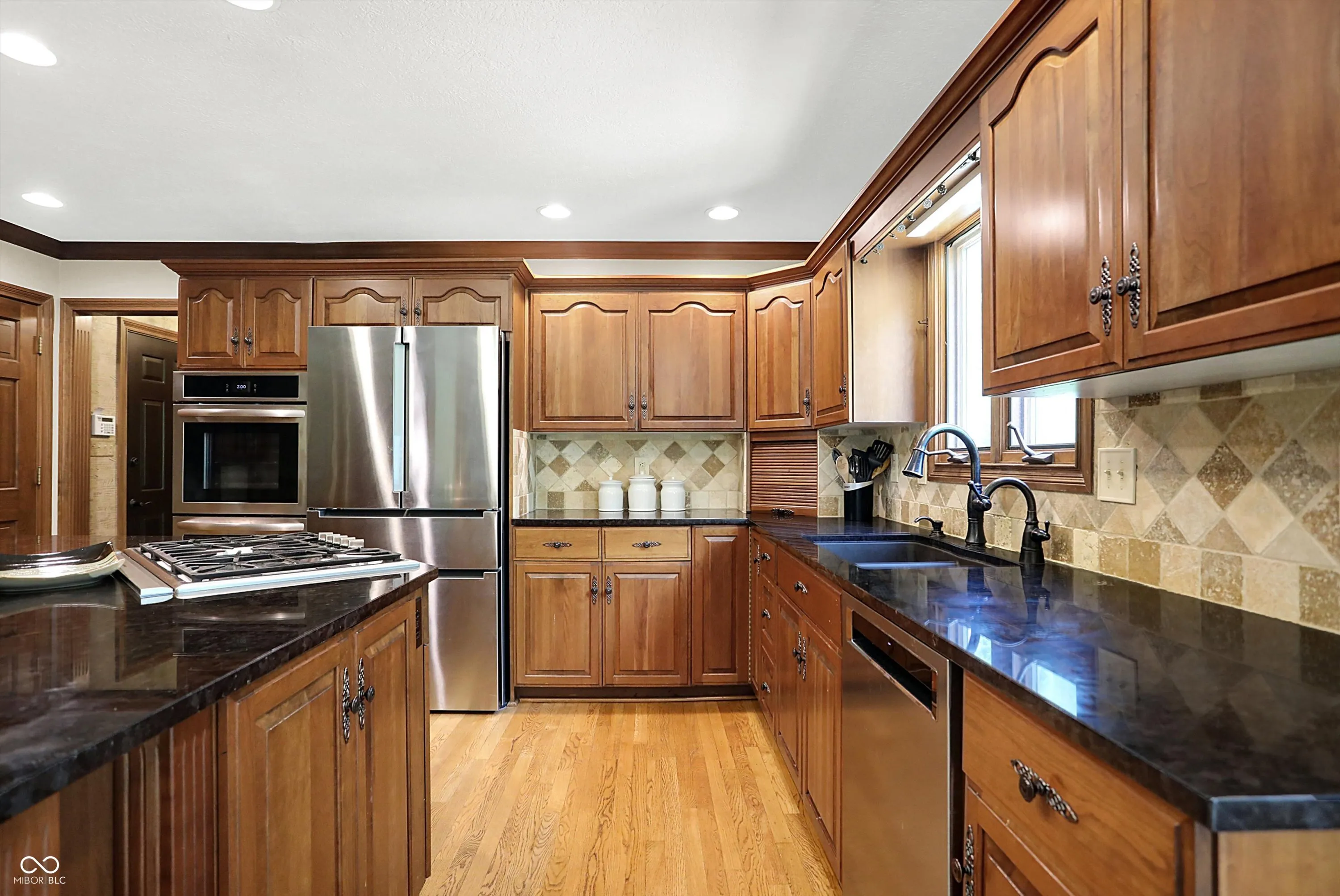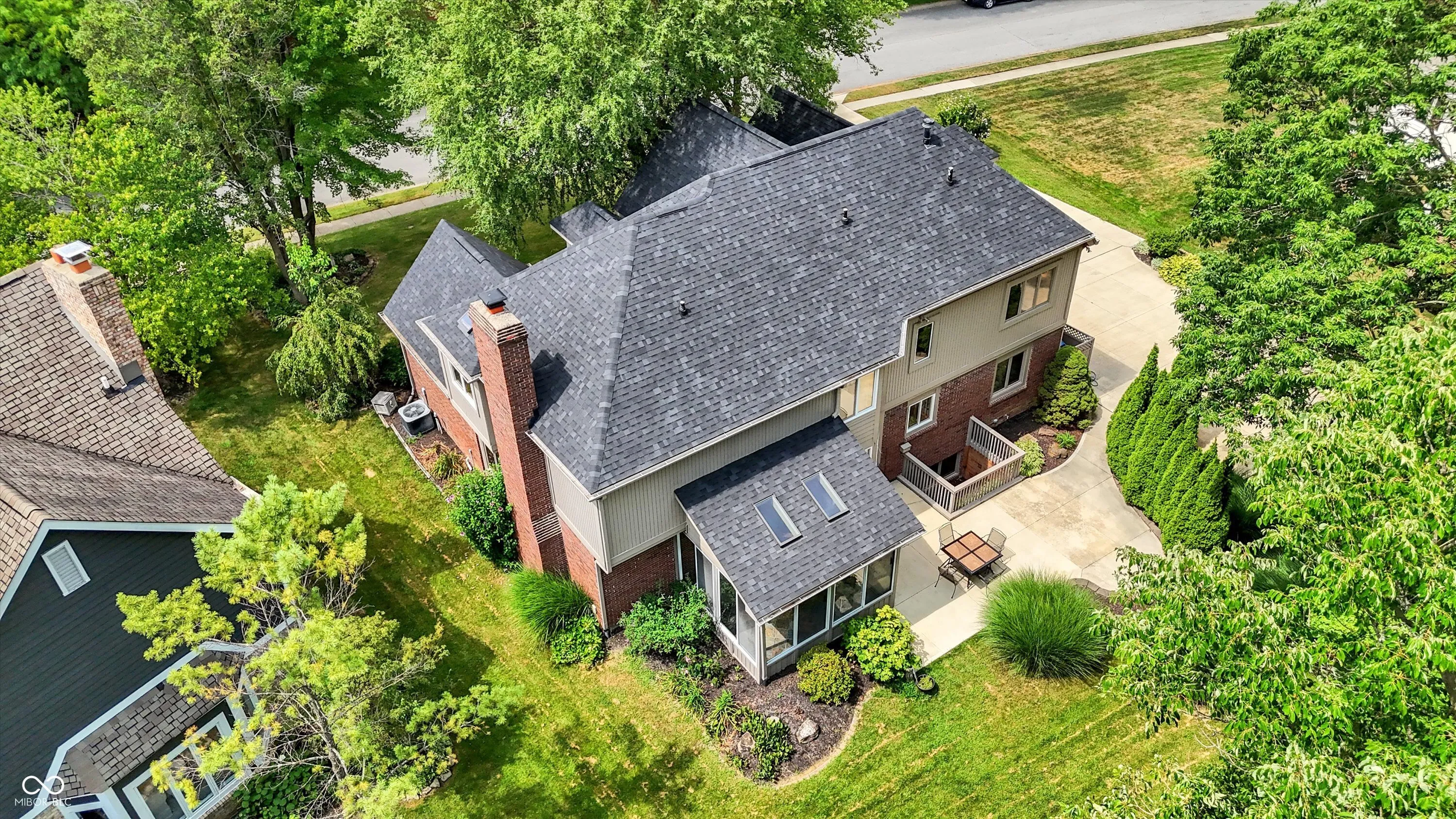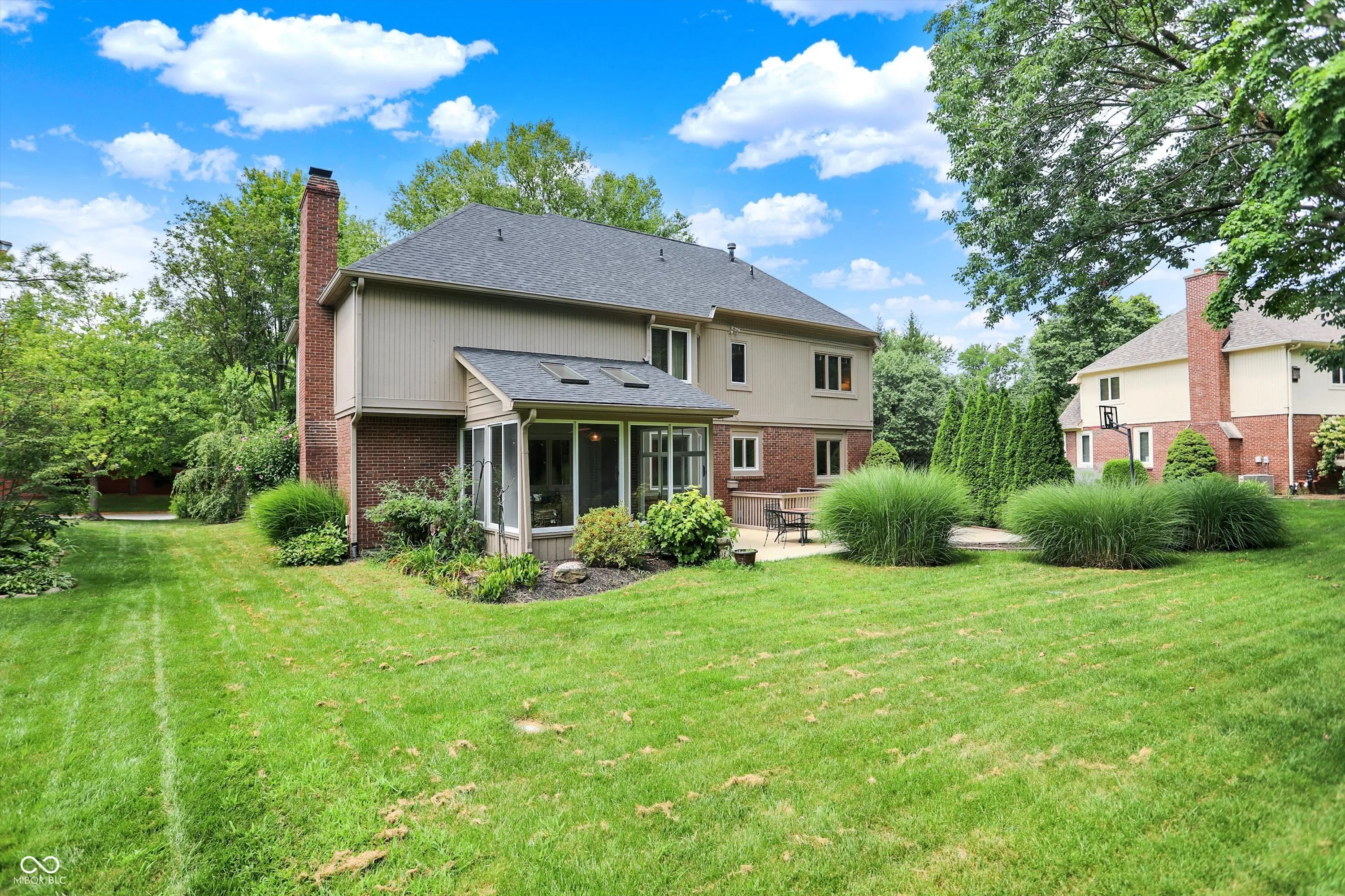 This stunning home features a dramatic two-story entry, flanked by a paneled office with a bay window and a formal dining room. The great room boasts fresh paint and a gorgeous fireplace that serves as the focal point. The gourmet kitchen offers premium appliances, beautiful counters, and striking cherry cabinets. Enjoy the outdoors with a screened porch/sunroom just steps away. Upstairs, the spacious primary suite includes a luxurious ensuite bath with a tiled shower and dual closets. Three additional bedrooms are generously sized, each with sun-drenched windows. The mature landscaping and trees create a private oasis on the back patio, making the backyard ideal for relaxation or entertaining. Numerous recent updates include: new LVP in basement bathroom; new carpet and paint in basement; new paint in great room; newly-painted garage door; new oven; new water heater; and new roof (2023). Nothing lacking, and absolutely move-in, life-, and entertanment-ready!