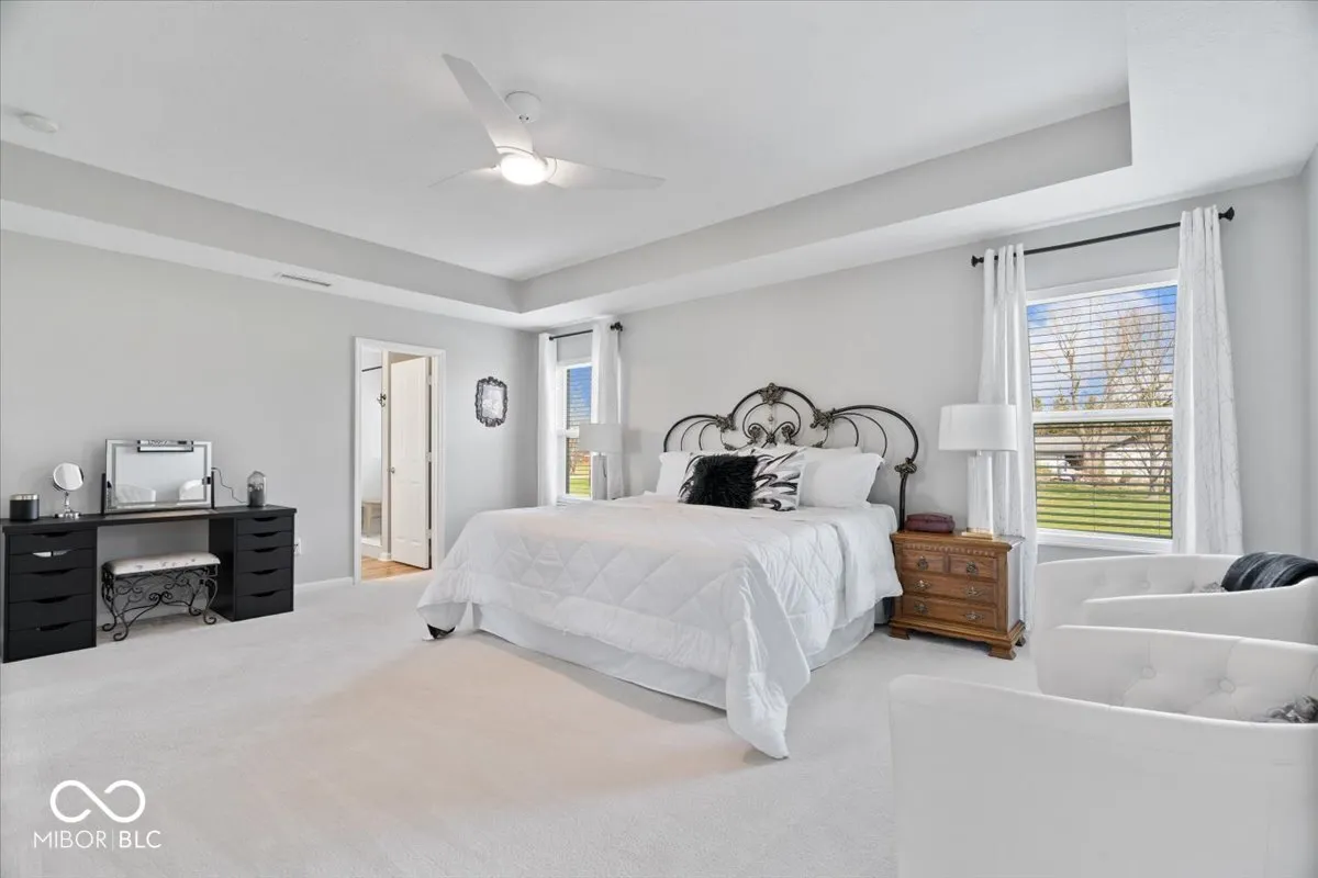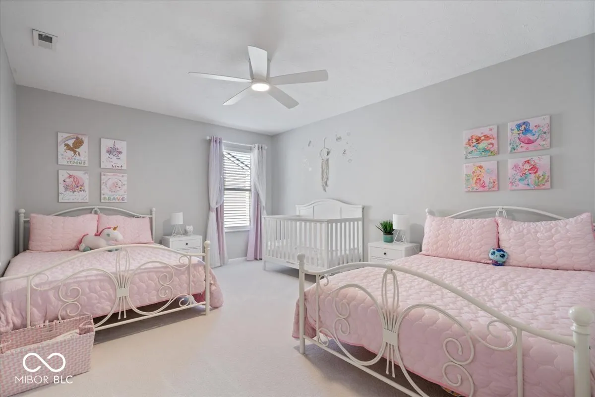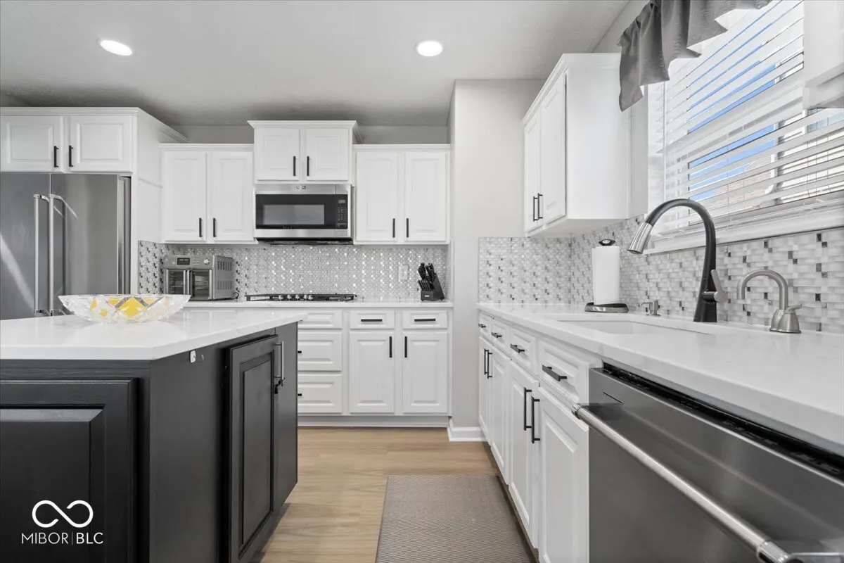 Beautifully updated & move-in ready, this spacious home in Noblesville Schools offers 5 generously-sized bedrooms, including a sought-after main-floor suite complete with a full bath and a zero-threshold shower – ideal for guests or a private retreat. Upstairs, you’ll find four additional bedrooms, all with walk-in closets providing ample storage, a spacious laundry room, plus a versatile loft area ideal for a second living space, home office, or play area. At the heart of the home is a fully renovated chef’s kitchen, featuring a gas cooktop, double ovens, deep fireclay sink, quartz countertops, resurfaced cabinetry, and a stylish backsplash. Whether you’re hosting a gathering or preparing a weeknight meal, this kitchen is designed to impress. Entertain effortlessly in this open-concept space, or step outside to your professionally landscaped backyard oasis. Enjoy evenings in your private, fenced backyard around the custom paver patio with steel edging, built-in gas fire pit, and gas line ready for grilling. The primary bathroom is a true showstopper, boasting a stunning oversized walk-in shower that adds a touch of luxury to your daily routine. The home has been thoughtfully upgraded with new Shaw flooring throughout, including luxury vinyl plank on the main level and loft, and upgraded carpet in the upper bedrooms. Additional highlights include a new irrigation system, water heater, water softener, and sump pump. The basement is already plumbed for a future bathroom and wet bar, offering the potential for even more living space. Additional highlights are fresh, neutral paint throughout, a 2.5 car garage for extra storage, and the large covered front porch. Too many updates to list-this home is truly move-in ready. Plus, enjoy peace of mind with a paid, transferable home warranty through August 15, 2027.