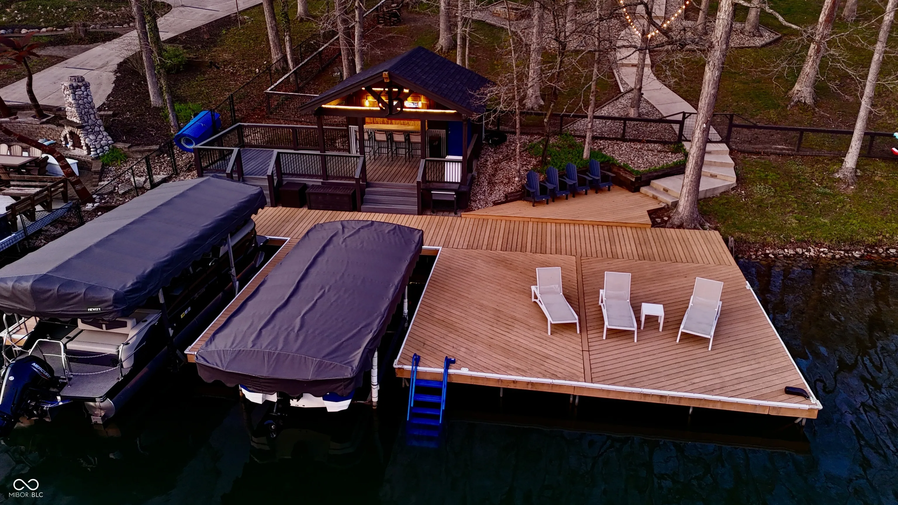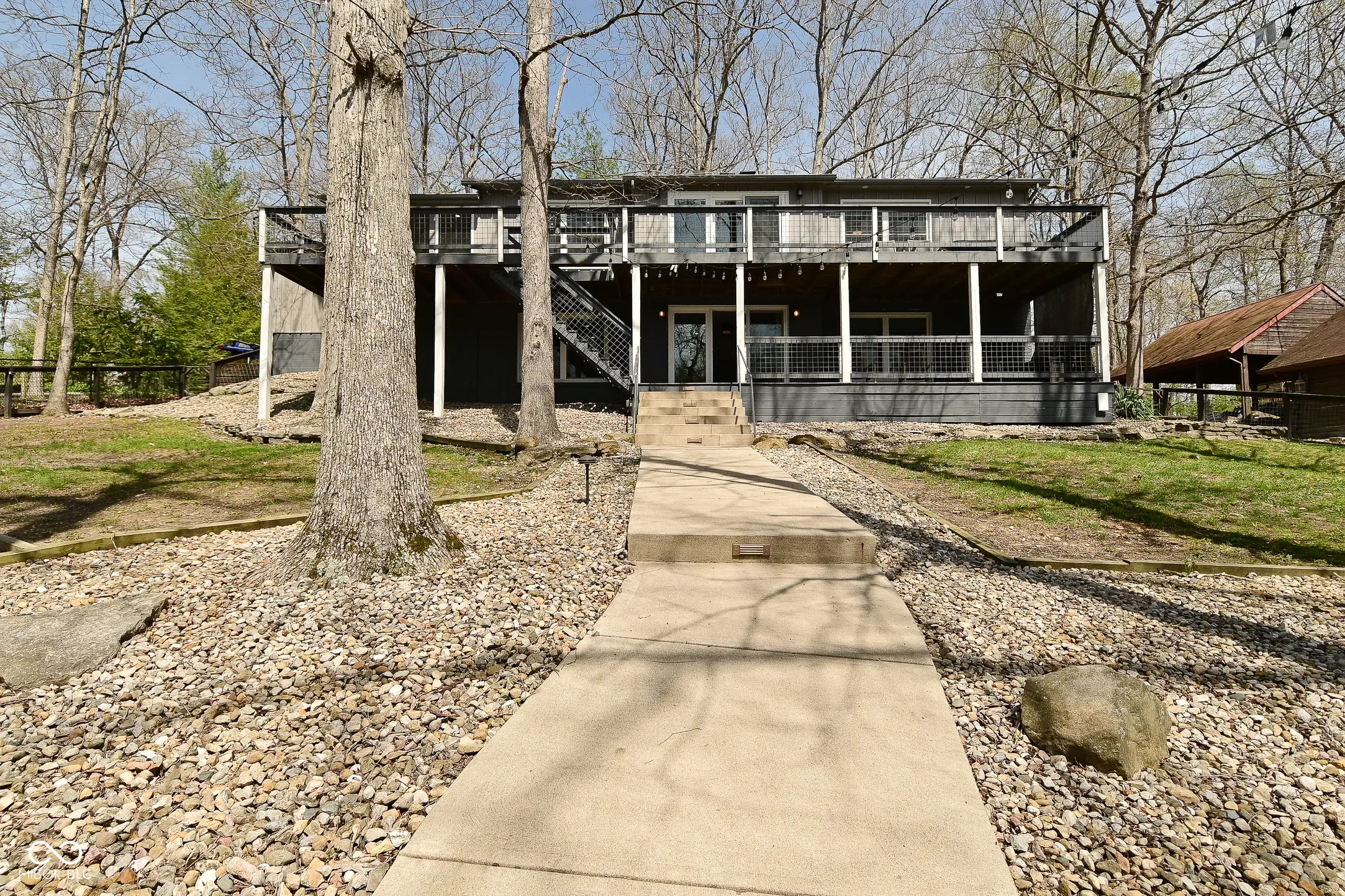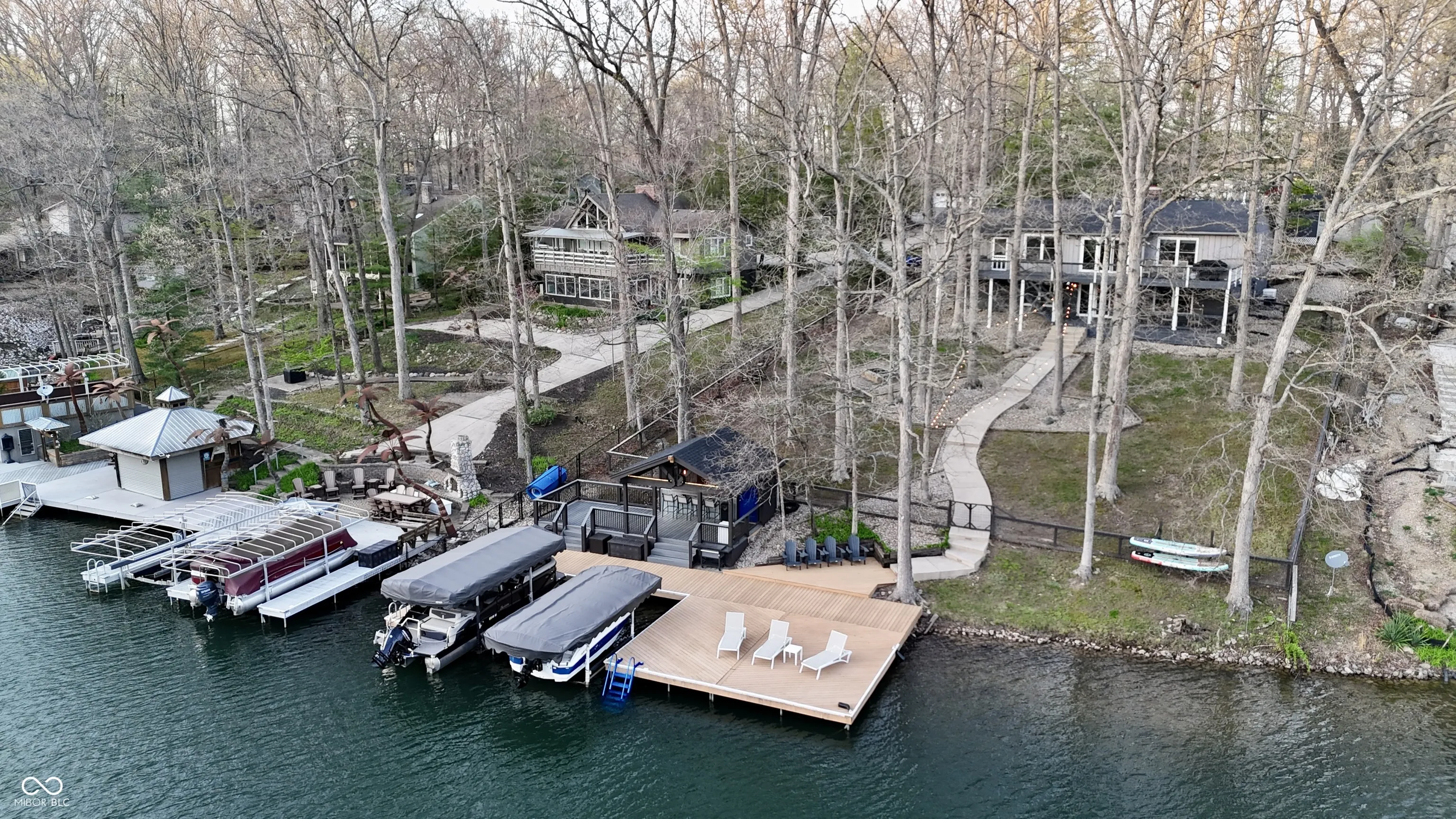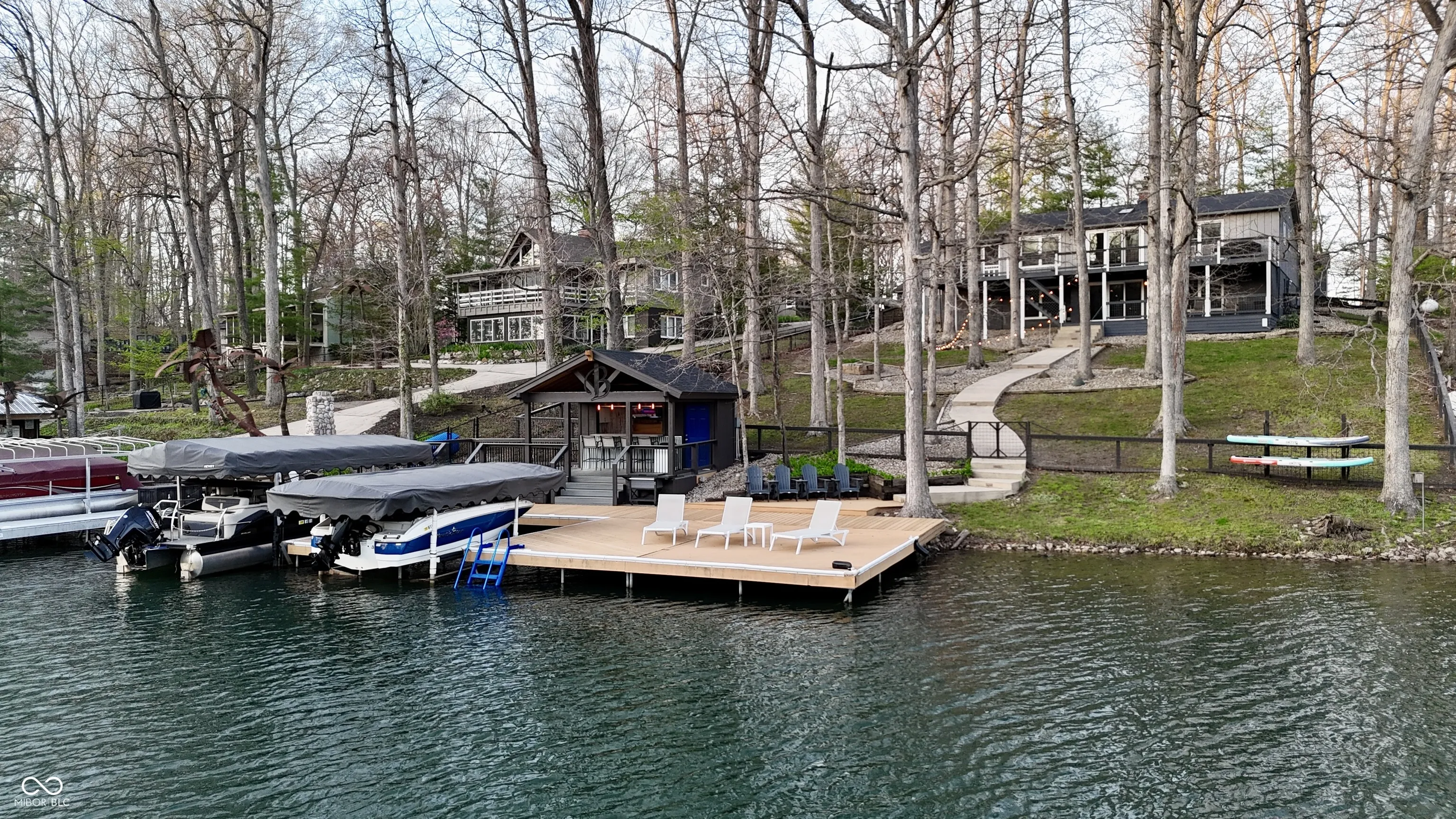 Impressive Oasis on Sweetwater!! This incredible lakefront home boasts 2 bedrooms, 3 full bathrooms (including two ensuite), two living areas, multiple decks, massive dock with two boat slips and dock bar!!! This home also features two bonus rooms / flex spaces that each have closets and egress windows. Home was fully updated in 2022, including new LVP flooring throughout, new countertops, cabinet doors and hardware in kitchen and wet bar, fresh paint, all new light fixtures and fans, new vanities in bathrooms and new tile shower in primary bedroom, just to name a few!! The main level of the home features 2 bedrooms and two full bathrooms, gorgeous living area with fireplace, skylight and vaulted ceiling, completely updated kitchen with multiple dining areas, not to mention INCREDIBLE views!!! The full finished basement has a flex space with attached bathroom, second living area with fireplace, huge wet bar with granite countertops and updated cabinetry, and a MASSIVE bonus room that would be a great for workout area, storage or even additional sleeping space. The outdoor space is truly what makes this home so special. The back of the house features multiple decks, a screened-in patio, large fenced lot with sloping concrete walkway, fire pit and huge dock with trex decking, two boat slips and dock bar!! A large circular paved drive, with parking pad, at the front of the house provides plenty of parking space. There is also a large front lawn with storage shed and second fire pit. This house is completed with a large two car garage. There is truly nothing left to desire with this incredible property!!