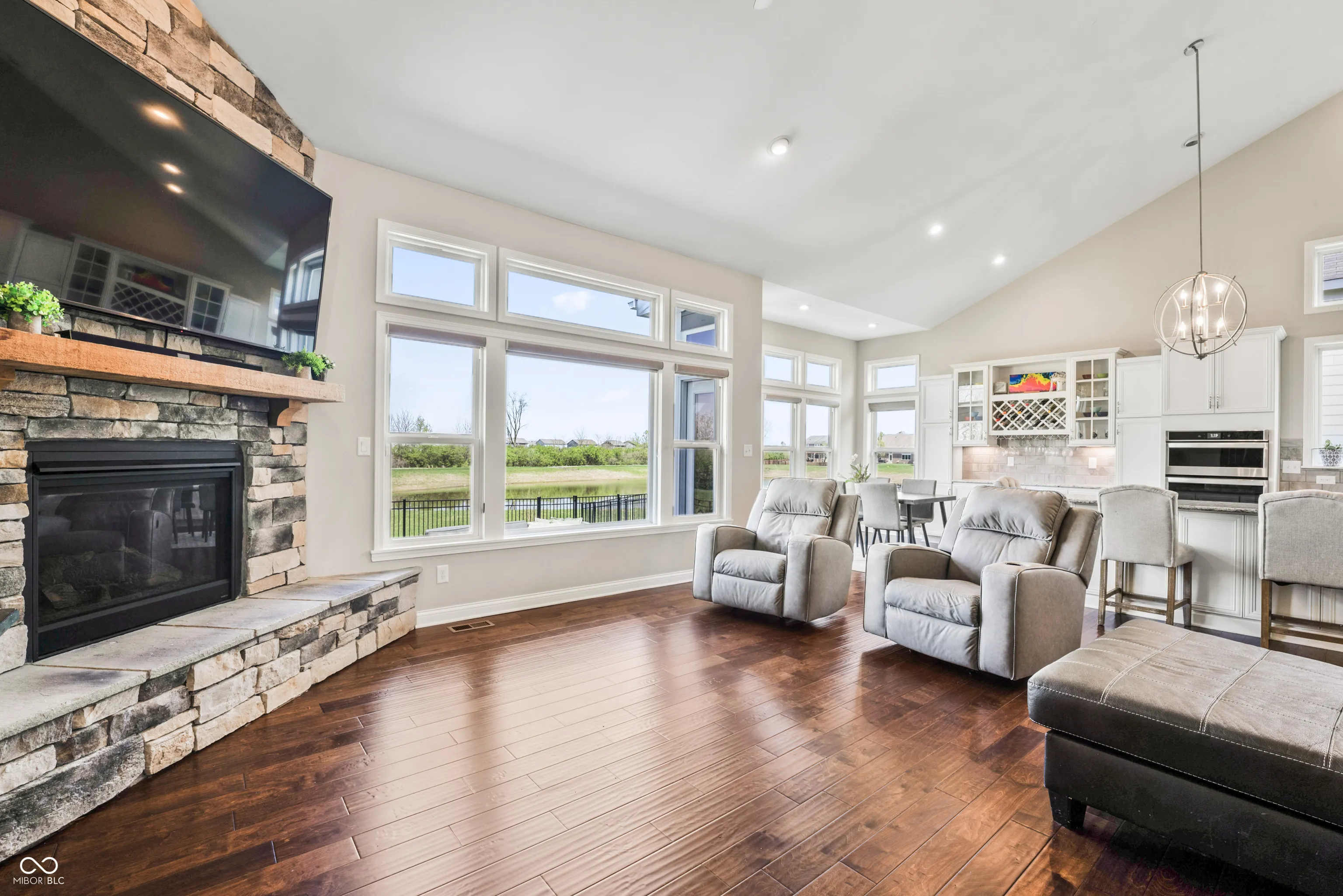 Discover this beautifully maintained home, perfectly situated on a pond lot with a fully fenced yard. You’ll enjoy soaring ceilings in the two-story great room filled with natural light, a convenient first-floor owner’s suite, and a finished basement complete with a dedicated workout room & it’s rough plumbed for a future bar! Enjoy the convenience of being just a short walk from the Hancock Wellness Center, offering amenities like a lap pool, massage therapy, basketball courts, sauna, steam rooms, and a variety of fitness classes. Plus, you’re only minutes away from the recreational activities at Geist Reservoir paired with all of local dining and shopping options. Located within the highly ranked Mt. Vernon Community School Corporation, this home is part of a district recognized for its academic excellence. Mt. Vernon High School is ranked 47th in Indiana and 15th in the Indianapolis metro area, reflecting its commitment to student success. This home comes fully equipped with all window treatments, washer and dryer, refrigerator, and deep freezer-making it truly move-in ready. Whether you’re sipping morning coffee on the patio overlooking the pond or enjoying a cozy movie night in the basement, this home offers the perfect setting for relaxation and entertainment.