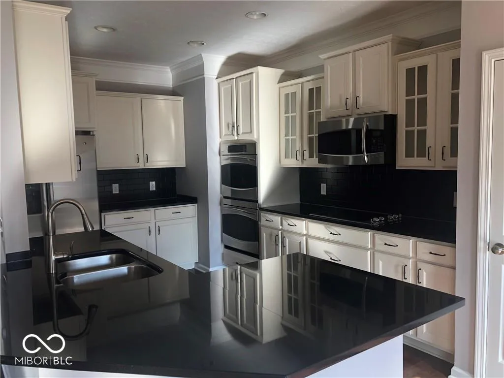 Immaculate Updated spacious townhome available in Village of West Clay June 1st 2025. Home features 3 bedrooms with 3 full baths and 2 car attached garage. Main level w/Living room with built in bookshelves accented with moldings throughout. Kitchen with updated cabinets SS appliances solid surface counters, tile backsplash overlooking the family area with cozy fireplace. Family room with separate dining area overlooking huge deck. Engineered laminate flooring on main level. Flex room downstairs w/ full bath. . Master bedroom with double sinks, separate shower and garden tub, walk in closet with updated custom shelves. 2 other decent size bedrooms upstairs. Neighborhood w/access to pools gym, playground, & award wining Carmel Clay schools