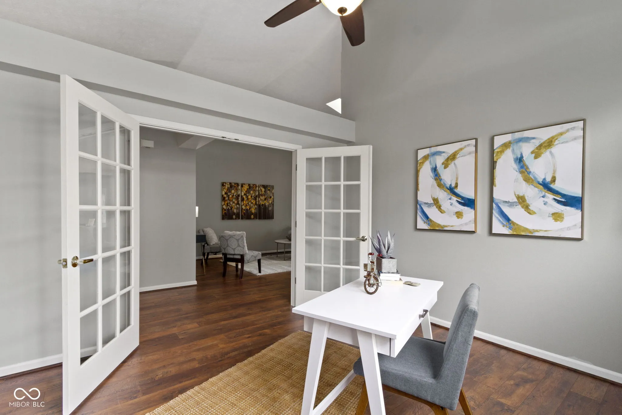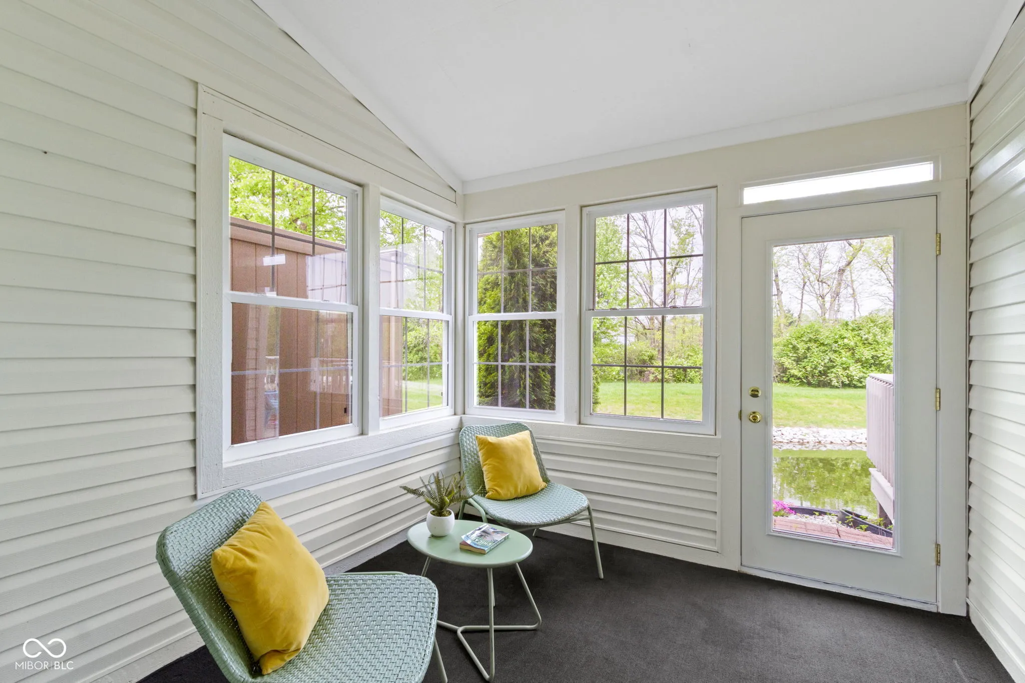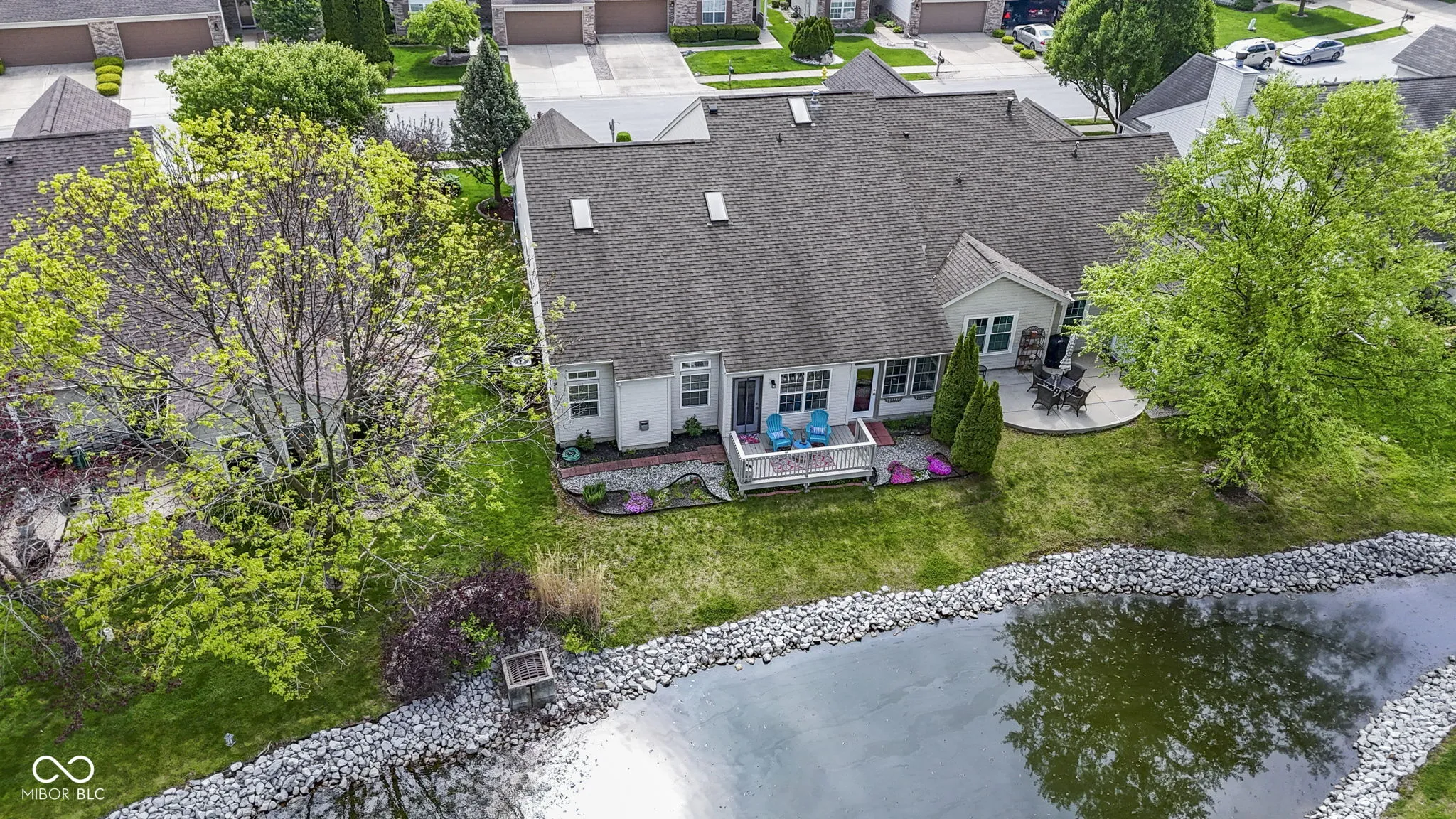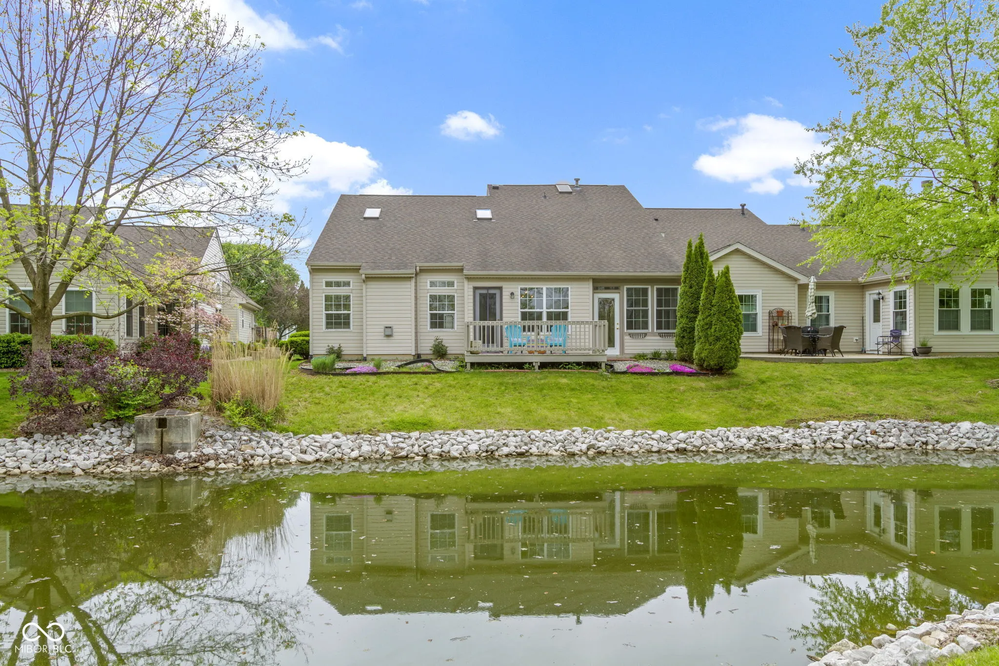 Beautiful move in ready ranch home on a quiet cul de sac in Pebblebrook neighborhood- a golf course community close to shopping, restaurants, Midland Trail, downtown Noblesville, downtown Westfield, Morse Reservoir and US 31* You’ll fall in love with the cathedral and vaulted ceilings in almost every room* Laminate hardwoods & tile flooring* Nice sized windows throughout for great natural light & pond view* With over 1700 sq. ft., you’ll love the spacious rooms and open layout living* The split floor plan offers 2 bedrooms plus an office/den with French doors* A hearth room with gas fireplace is a great sitting/gathering area off of the kitchen & dining plus offers large windows overlooking the pond* The dining room has access out to the deck & access to the 3 seasons room* Kitchen offers plenty of white cabinets & Corian counter top space for cooking & storage plus a cabinet pantry w/roll out shelving, vaulted ceiling & skylight for natural lighting* Primary bedroom suite boasts cathedral ceiling with skylight, laminate wood flooring, large walk in closet w/custom organization plus spacious bath with garden tub/shower* There’s private access to the 3 seasons room from the primary suite- great outdoor living to enjoy your morning coffee or nightcap with views of the water* The back of the home faces northwest so you can enjoy Summer sunsets from your deck or 3 seasons room* Low maintenance living allows you to have more time golfing, enjoying time with family/friends or your favorite hobbies while HOA takes care of your yard!