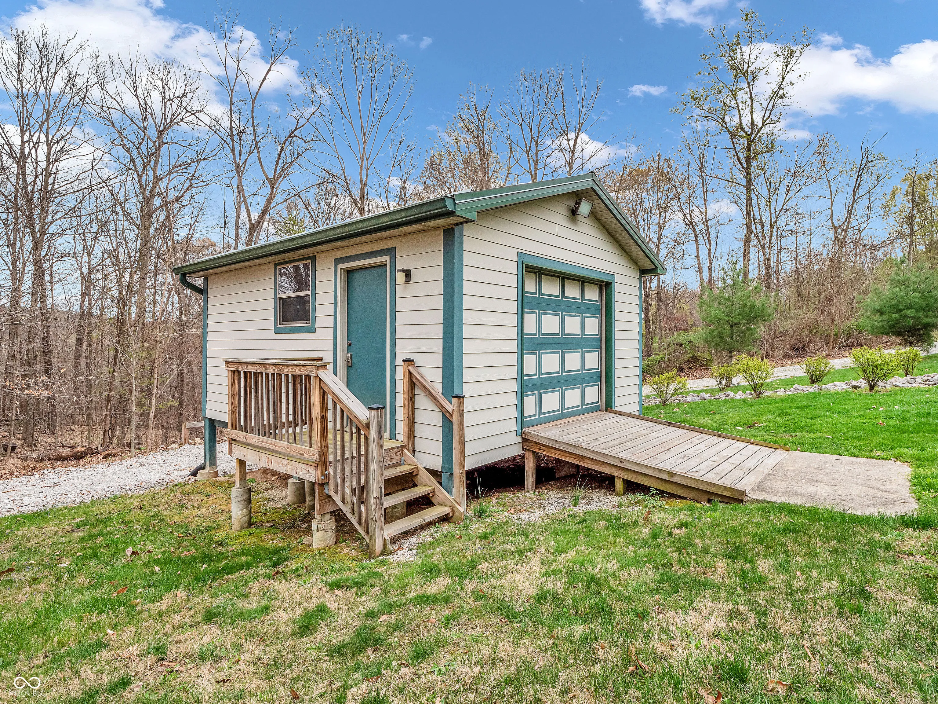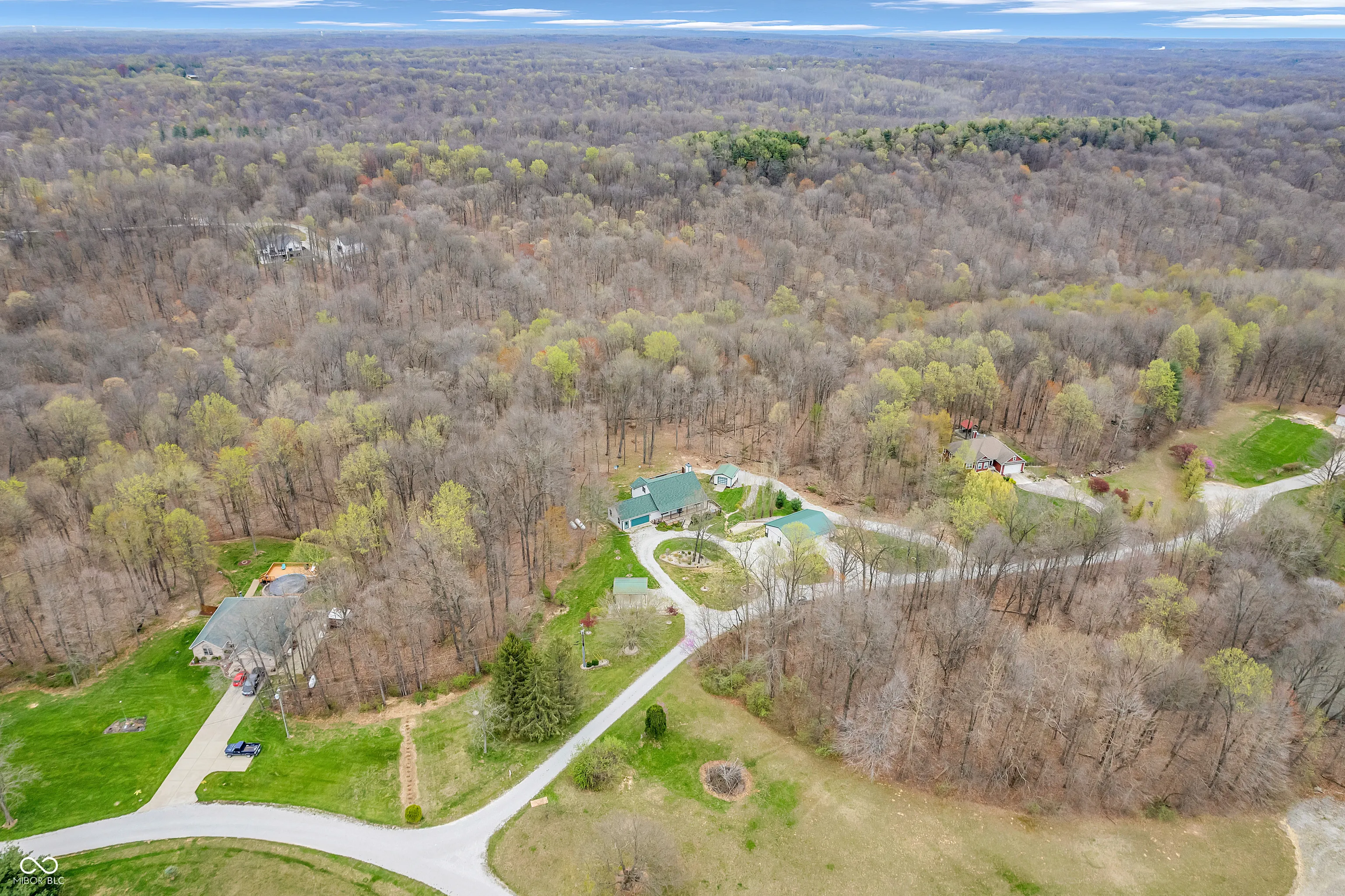 Enjoy the peaceful solitude of Mother nature in this custom home nestled in 6.5 acres with amazing views!! Walk in to nice entry leading to spacious Great Room with wood burning fireplace with vaulted ceiling and loads of windows allowing for light interior and hardwood flooring. Nice kitchen with breakfast bar and all appliances along with dining room open up to the great room with spectacular views of wooded seclusion. Note the large primary bedroom on main level featuring bay window, updated bath with shower stall and walk-in closet and tile flooring. The bedroom upstairs is also spacious with a large closet. Several rooms have cedar lined closets and you will find the home to be in move-in condition. Home boasts an oversized 2 car garage with freezer remaining along with a 39×32 quality outbuilding with 3 garage doors, electricity and soaring ceiling built in 2024 that would be great for workshop, storing large vehicles etc. Plus don’t miss the 16×16 shed and carport off circular drive as you enter the property. Roof was new in 2022 and home has a Generac generator. Relax in the evening on covered front porch along with a 19×8 screened porch in rear of home which leads to a 40×15 wood deck!!