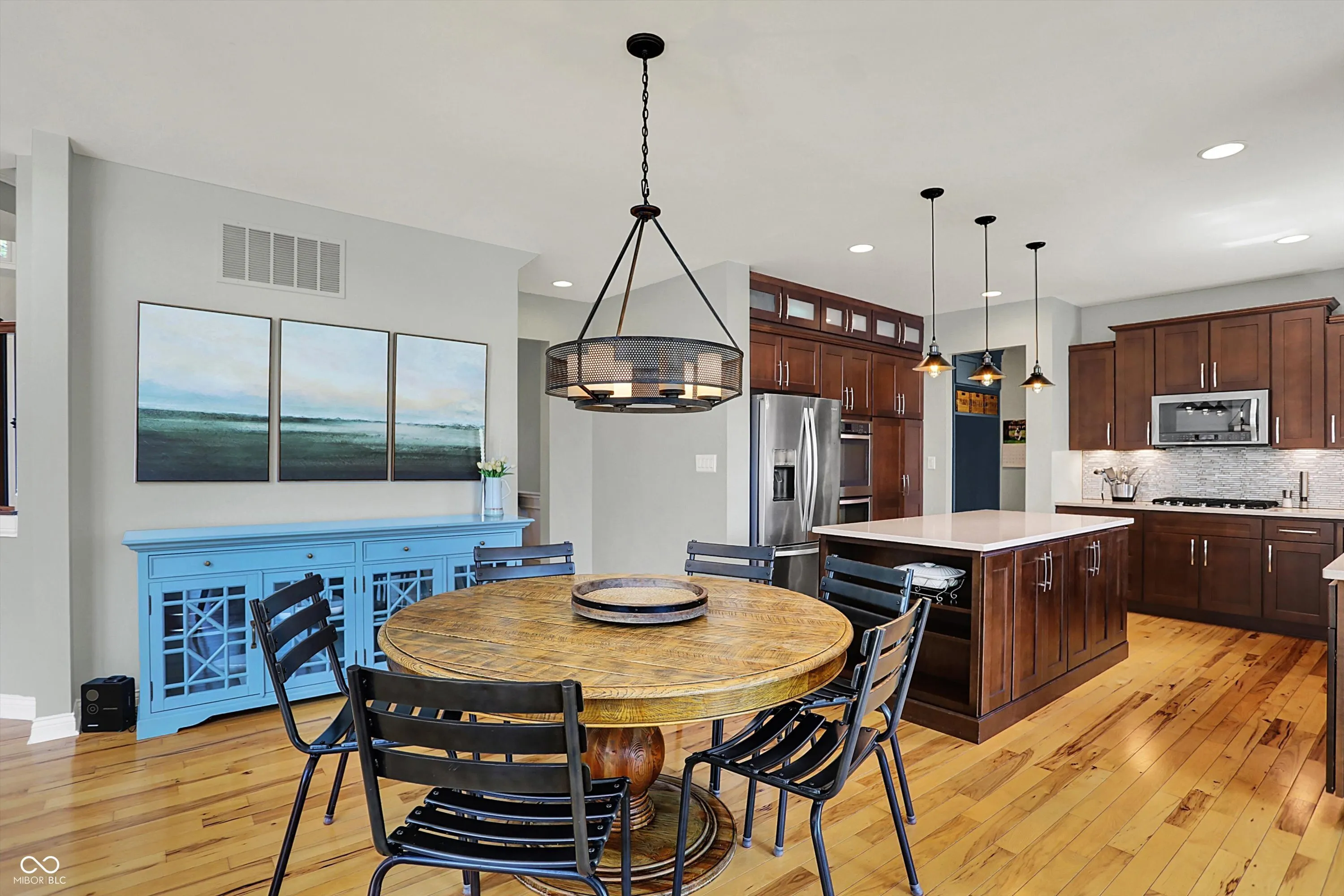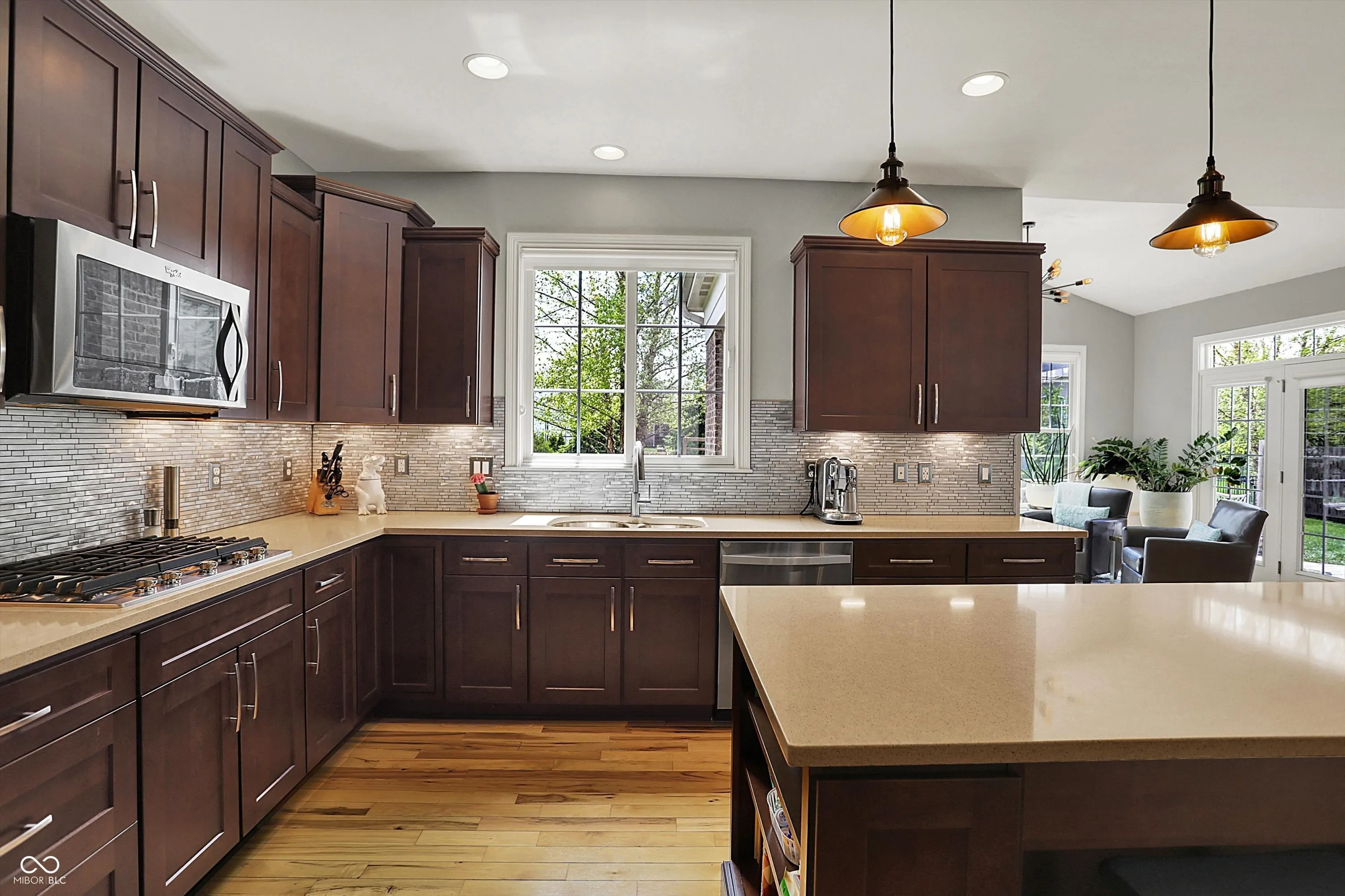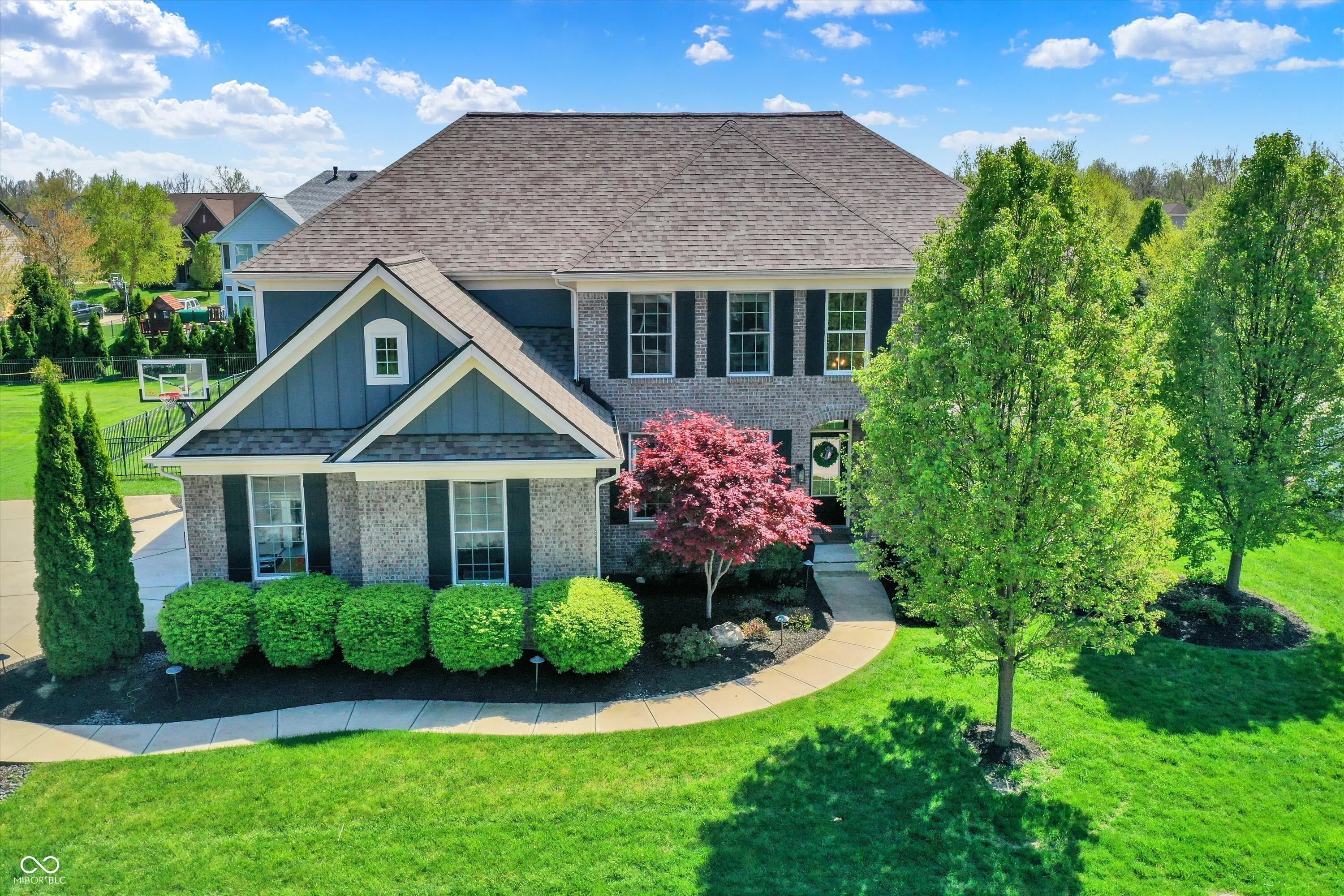 Sophisticated and inviting, this 4BR, 3.5BA French Manor-inspired home offers timeless design and upscale living in Zionsville’s premier Willows neighborhood. This residence offers a perfect balance of luxury, comfort, and craftsmanship. Step inside to rich hickory hardwoods, soaring ceilings, and an open, flowing floor plan flooded with natural light. The gourmet kitchen impresses with a large quartz island, stainless appliances, custom cabinetry, and tile backsplash-flowing into a dramatic two-story great room with fireplace and adjacent sunroom. Main level includes a private office, dining room, and hearth room. Upstairs, the spacious primary suite offers a newly remodeled spa-like bath with soaking tub, walk-in shower, dual vanities, and walk-in closet. Three additional bedrooms and full bath provide ideal flexibility. The finished basement includes a theater, wet bar, fitness space, family room, and full bath. Outdoors, enjoy a fenced yard with a stamped patio, fire pit, and irrigation system. A 3-car sideload garage completes the home. Located on a quiet cul-de-sac in The Willows-renowned for its peaceful, community-oriented atmosphere-residents enjoy access to a neighborhood pool, tennis courts, and walking trails, all just minutes from Zionsville’s Village shops and dining. This home is the complete luxury package-thoughtfully designed for everyday comfort and unforgettable entertaining.