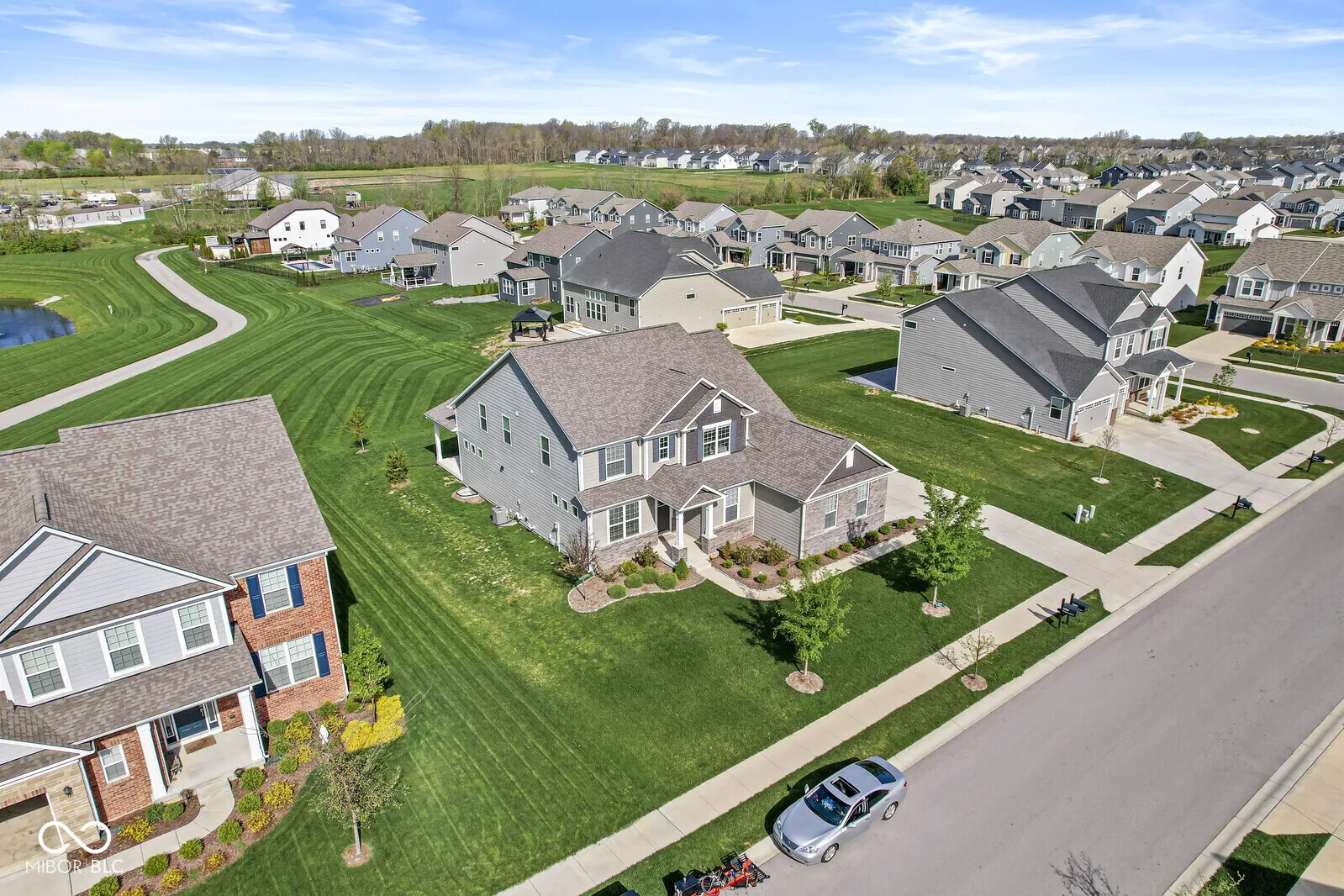 Welcome home to 12894 Corydon Dr. Exceptional estate home in Hunters Run featuring 4 bedrooms, 3.5 baths, oversized 3-car garage and multiple living areas to relax and entertain. Open layout with LVP flooring throughout main level. Large chef’s kitchen features gas cooktop, built-in oven and center island. Soaring ceilings in the gathering room with a wall of windows. Thoughtful design includes a pocket office with cabinetry, mudroom and versatile flex/formal dining room near the entry. Half flight of stairs down leads to an oversized game room-perfect for gatherings or play. Primary suite is half flight of stairs up offering a quiet retreat from the additonal 3 bedrooms. Beds 2 and 3 share a Jack-and-Jill bath with bedroom 4 ensuite. Spacious basement for all your storage needs with an egress window and rough-in for future bath. Covered porch and expansive patio are west-facing- ideal for soaking in sunset views. Private .32 acre lot backs up to a pond. Great community amenities included a pool, tennis and playground. Enjoy easy access to shopping, dining, Cyntheanne Park, Nickel Plate Trail, Ruoff Music Center and more.