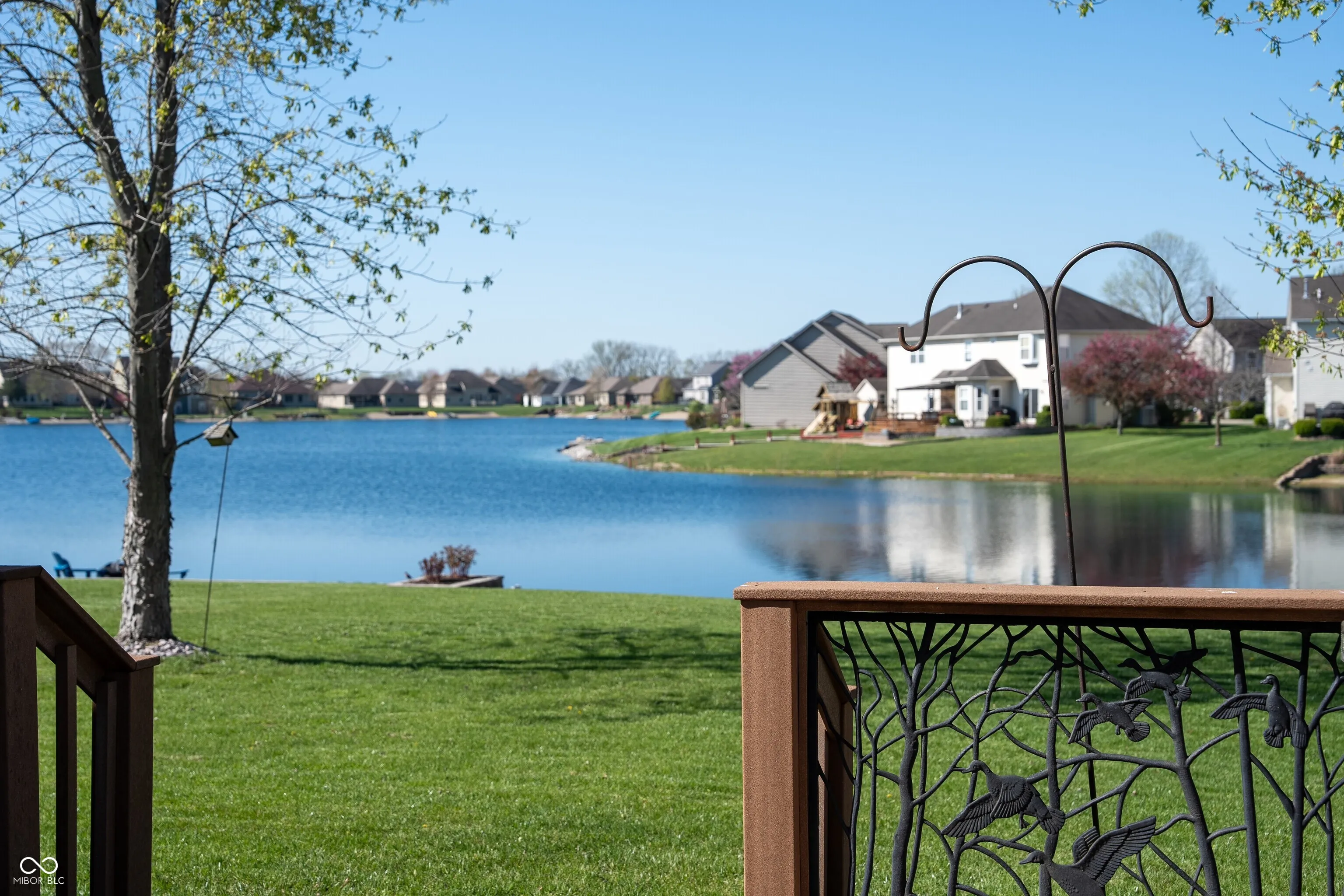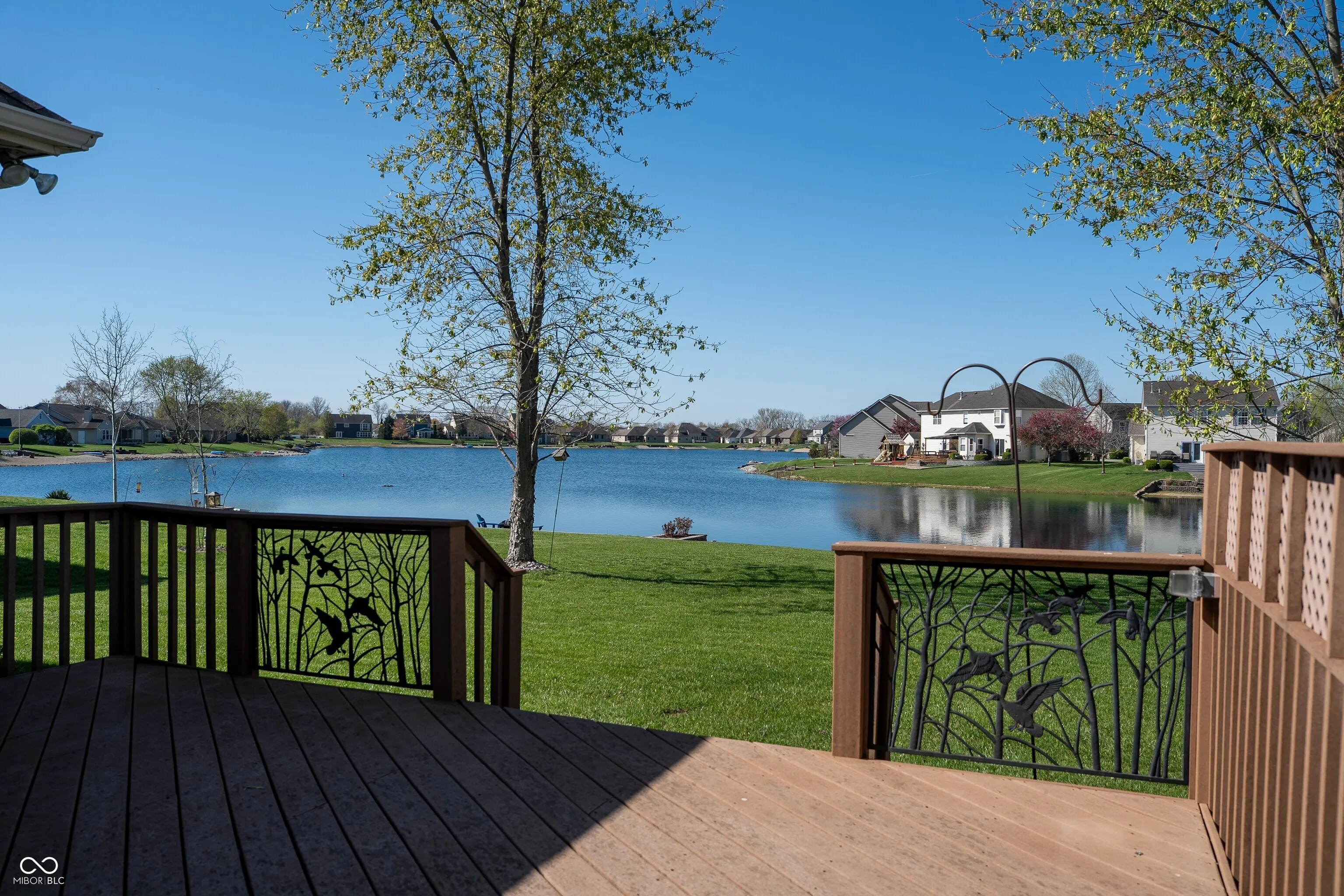 You’ll enjoy this ranch home with one of the best views of Princeton Park Lake *Inviting front porch *Great room features tray ceiling, gas log fireplace with raised hearth and an abundance of natural light *Kitchen offers quality cabinets with crown molding, “eased-edge” countertops, appliances and sunny breakfast area with built-in corner entertainment center *Formal Dining Room *Large master bedroom suite with tray ceiling, walk-in closet, private patio door to deck and attached full bath with double sink vanity, whirlpool tub & separate shower *Quality features include Centralux whole house vacuum system, Carrier 90% high efficiency furnace, energy-efficient “tilt-in” Thermopane windows (many new), water softener, irrigation system, & 6 panel doors with lever handles. 14×17 deck to relax and enjoy morning coffee or evening cookouts *Easy access to Columbus & I-65. *Swimming, fishing, & kayaking are only steps from your back door.