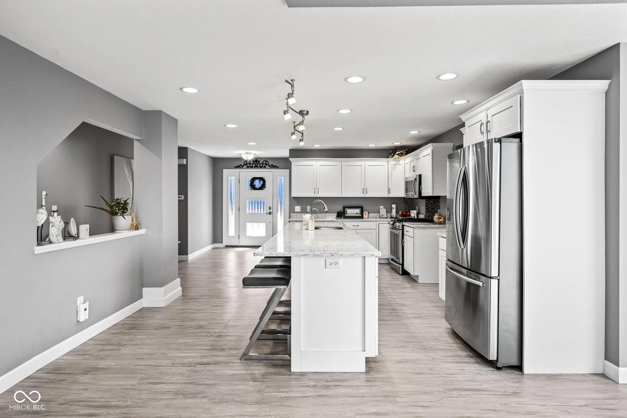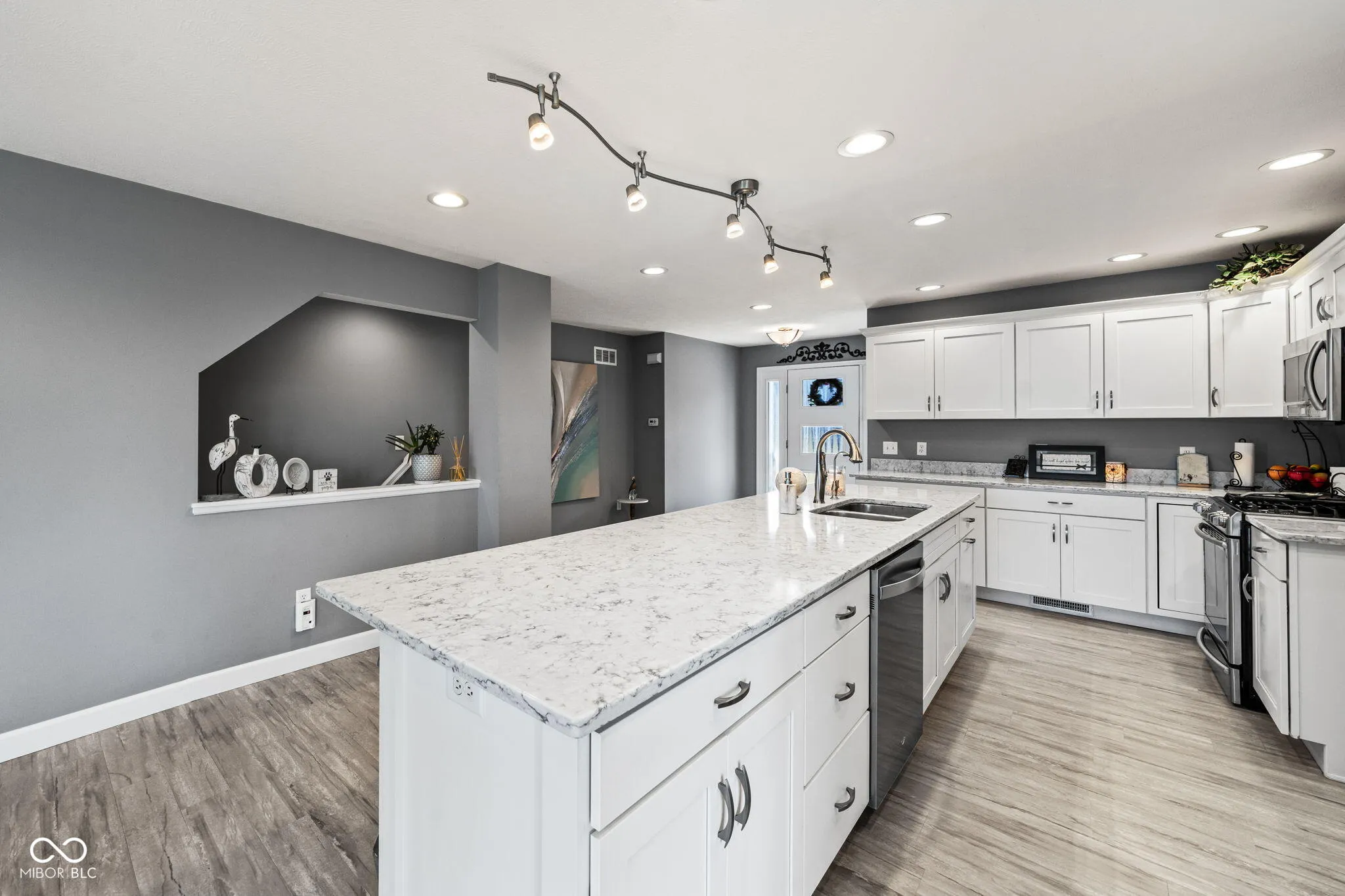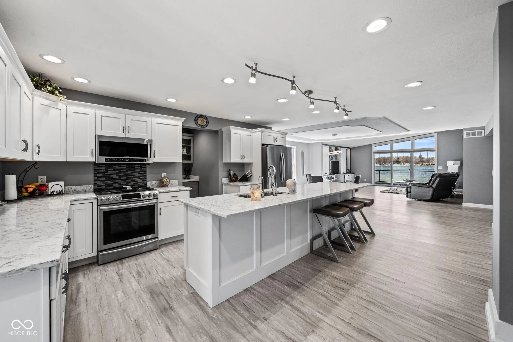 Simonton Lake front home with stunning views from every room, sunsets, “sandy” bottom and best location on the “main” lake. Offering 4 bedrooms, 3 full baths and 1 half bath. This 3 level walkout home has 3,750 sq/ft with most of the home being a Totally New Build- completion in October 2016. Simonton Lake is a all sports lake with 2 restaurants. Close to toll road and convenient to popular shopping. The main level has an open concept kitchen, quartz countertops and a pantry. The island is an impressive 11.5ft. The main level has a master suite with a full bath. Another bedroom with great view. The cathedral living room area and window views are stunning. Also add a half bath and laundry room. Floors are much more grey than pictures show. The upper level is all a private 2nd master suite. Bedroom, Full bath and office. The lower level walkout gives you another full kitchen, full bath, bedroom/living room and laundry room. Great for rental or entertaining guests. Features: *Custom Blinds *54ft Lake frontage *Black chain link fence *Osmosis filtration system *Vinyl siding and Limestone *2 Furnaces/air conditioners *Sea wall in excellent condition *2 Car garage with 6 parking spaces *PVC deck with all glass sides for open views