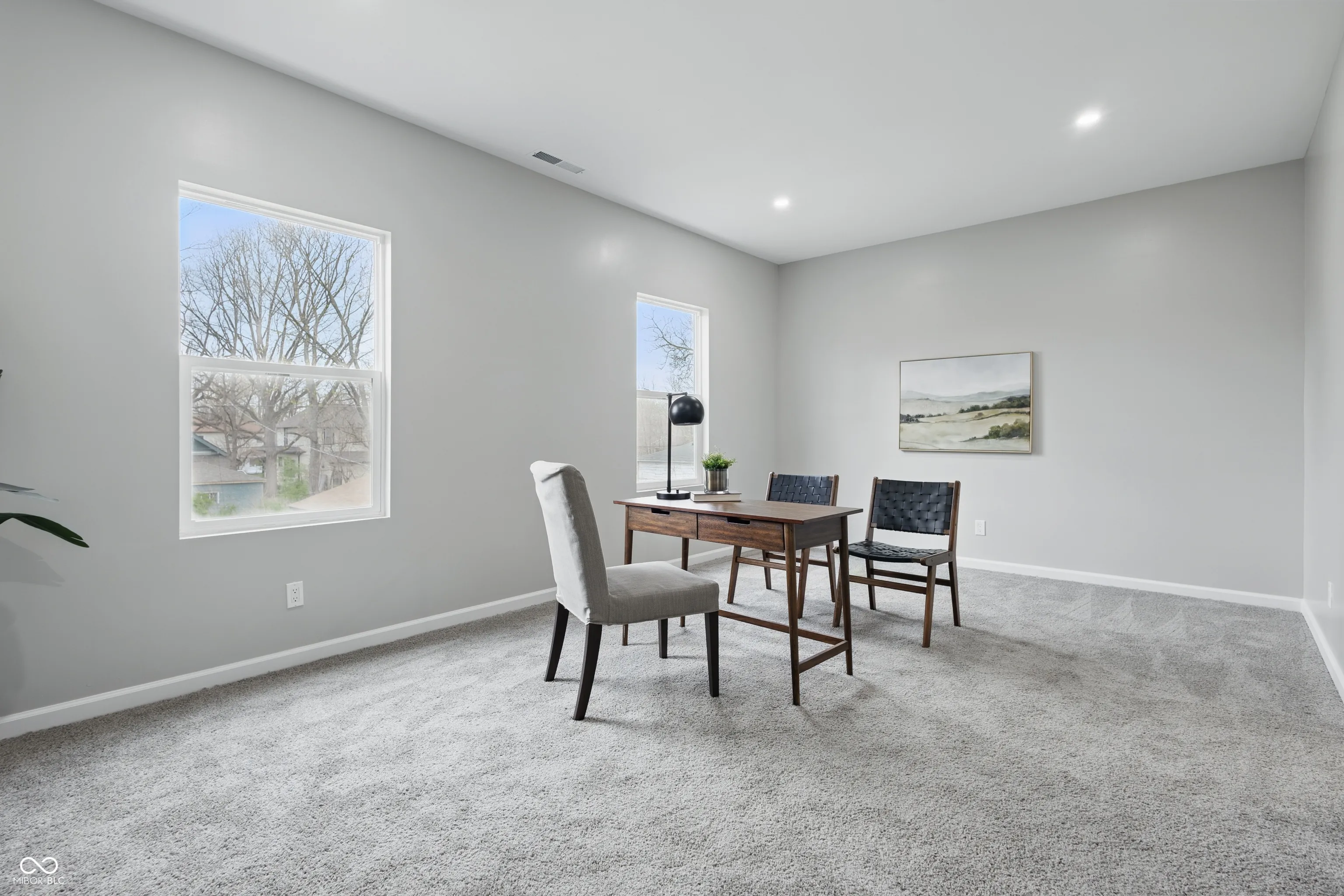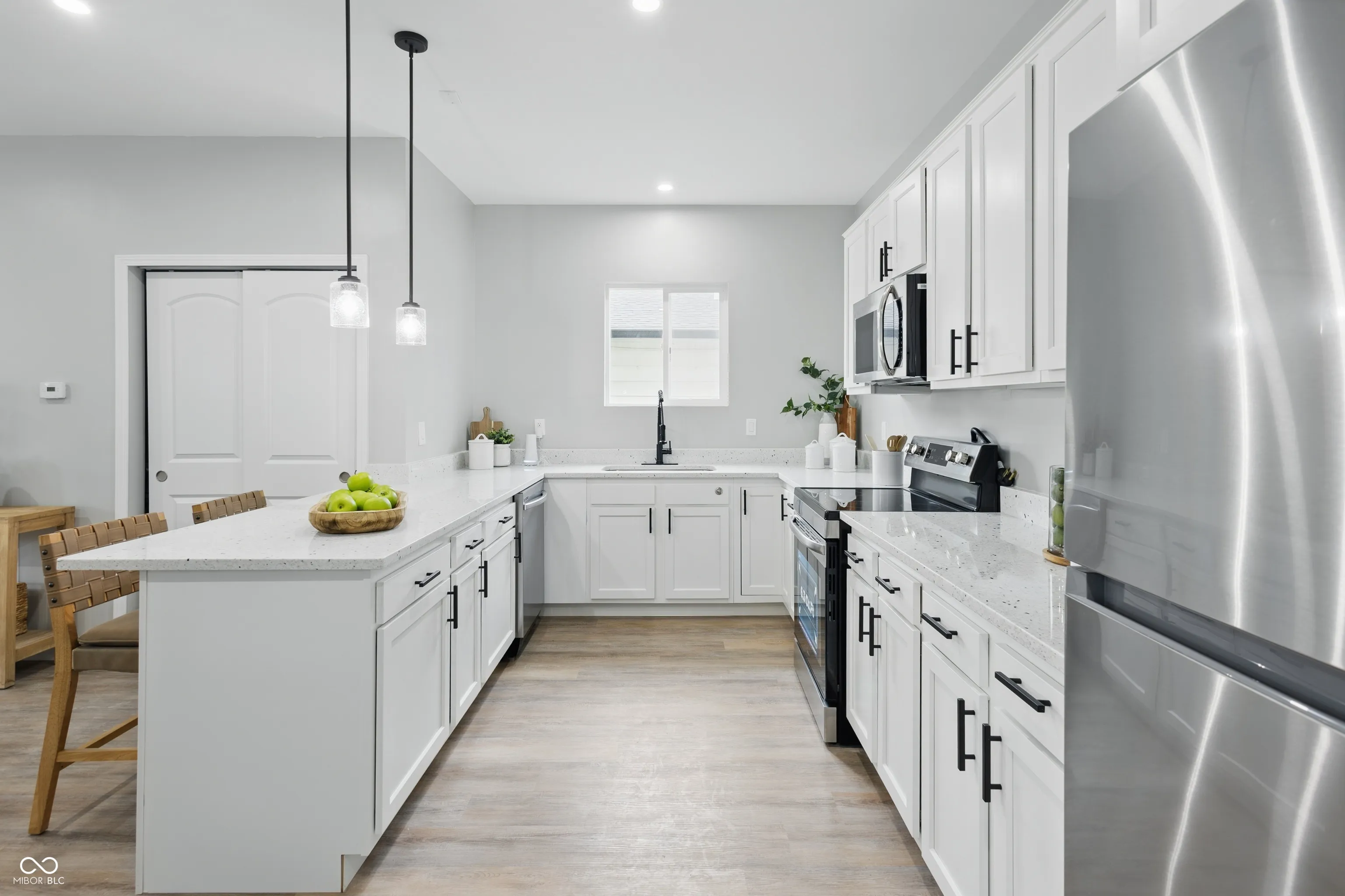 Beautiful Brand New 3 bed/2.5 bath Shotgun Style Home near Downtown Indy. Home is wonderfully staged to highlight the craftsmanship of the home. Setup with all the new appliances included, this home features an open Living Room/Kitchen concept that includes Quartz counter tops, bar top seating and pendant lighting in the kitchen. Main level Primary Bedroom with ensuite bathroom featuring double vanity and large walk-in shower. 1/2 bath also on 1st floor. 2 large bedrooms share a jack-n-jill bathroom and a large loft upstairs. Laundry is also upstairs. Home will be completed with fenced-in yard.
