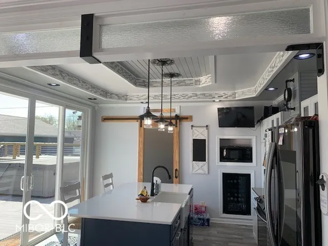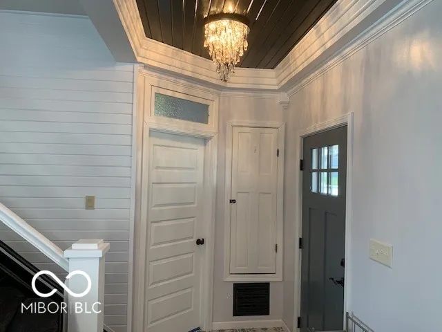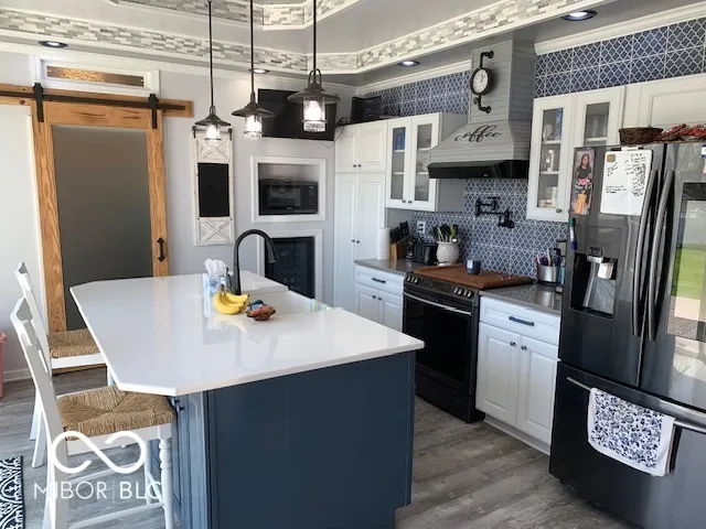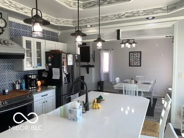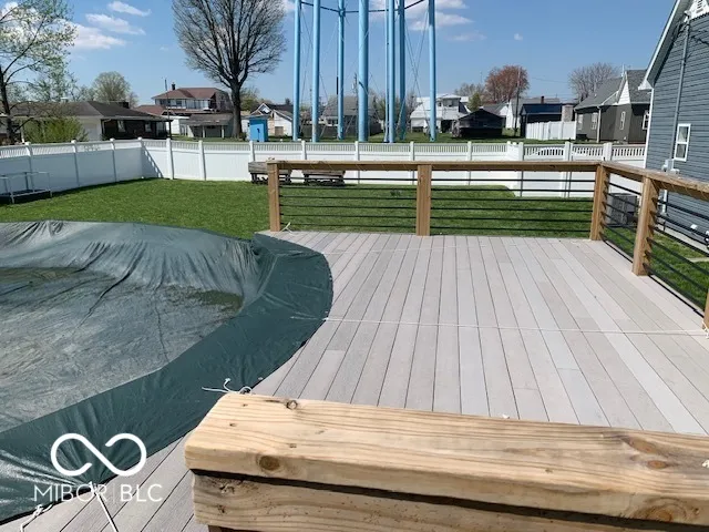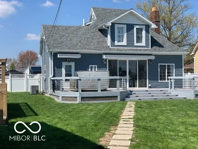Gorgeous home you just have to see. All custom and completely remodeled inside and out in 2021. This home has something special for every member of the family. When you pull up to this home take a minute and look at the custom work that was done. There was not an inch of this home that wasn’t touched and customized. Starting with the front porch it is 10×26 composite and custom built railings. As you enter the home you will see beautiful trey ceilings throughout the main level with open concept kitchen and dining area. Beautiful trey ceiling with accent tile. My favorite is the huge 8 x 12 sliding glass doors looking out onto the huge 16×38 composite deck and back yard from the kitchen. The Kitchen island is 4×7 white Quartz countertop and built in farm sink and dishwasher w/ lots of storage. All the cabinets have soft close doors. Built in wine cooler and all newer appliances stay. The Laundry and half bath is off the kitchen. All waterproof LVP flooring throughout the main level. Primary bedroom on the main level with full bath. The primary bath has double sinks, tub/shower and step in primary closet. The primary bath also has a door stepping out onto the huge deck and your 5/6 person hot tub. The upstairs has 2 bedrooms and each bedroom has a loft and custom built ins. One is being used as an office currently. There is also a full bath upstairs with tub and shower. There is a laundry chute from the upstairs to the laundry room. This home backyard is a double city lot that comes with a fully fenced 6 ft. Vinyl fence and two gates one double 8 ft and one single 4 ft gate. There is a 12×13 cement slab used for grilling out just off the deck. You will also love the new 27′ round above ground pool and 14×21 composite deck and custom railings. Huge 35×40 garage with 3 door and will fit 8 mid size cars. Has its own 200 amp service separate from the homes 200 amp service. The workbenches and cabinets stay. The home also features a partial basement with storage shelves.