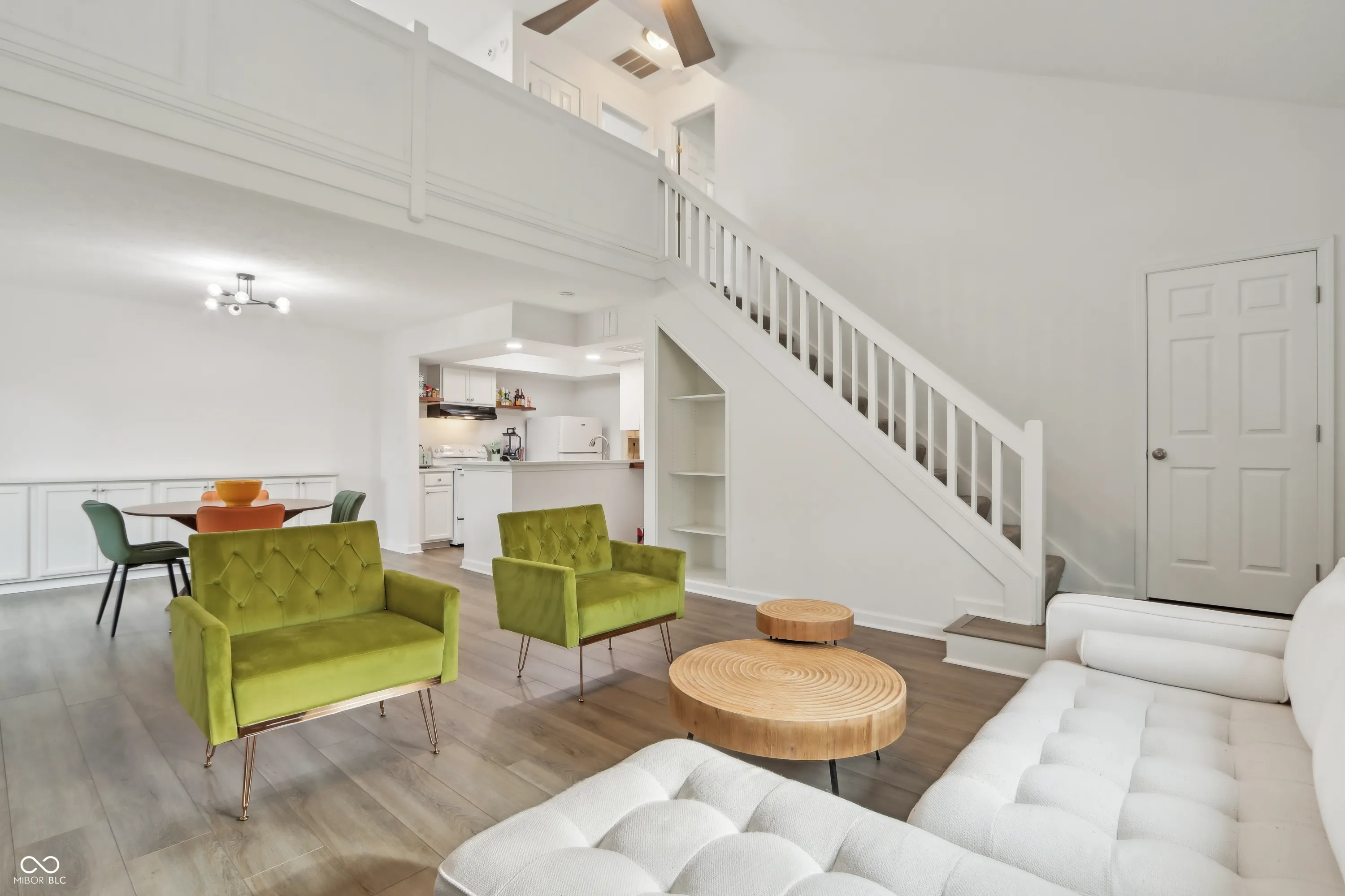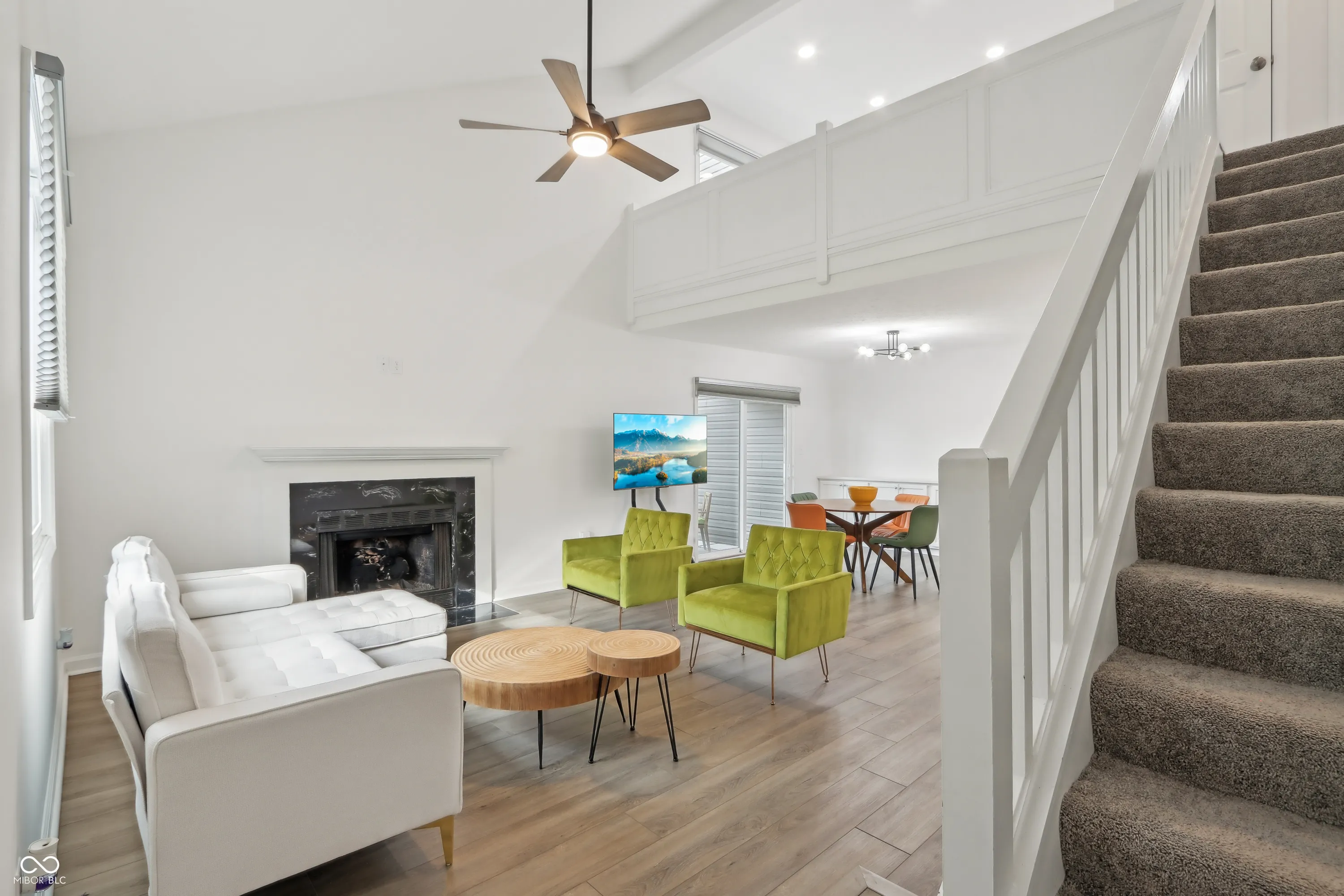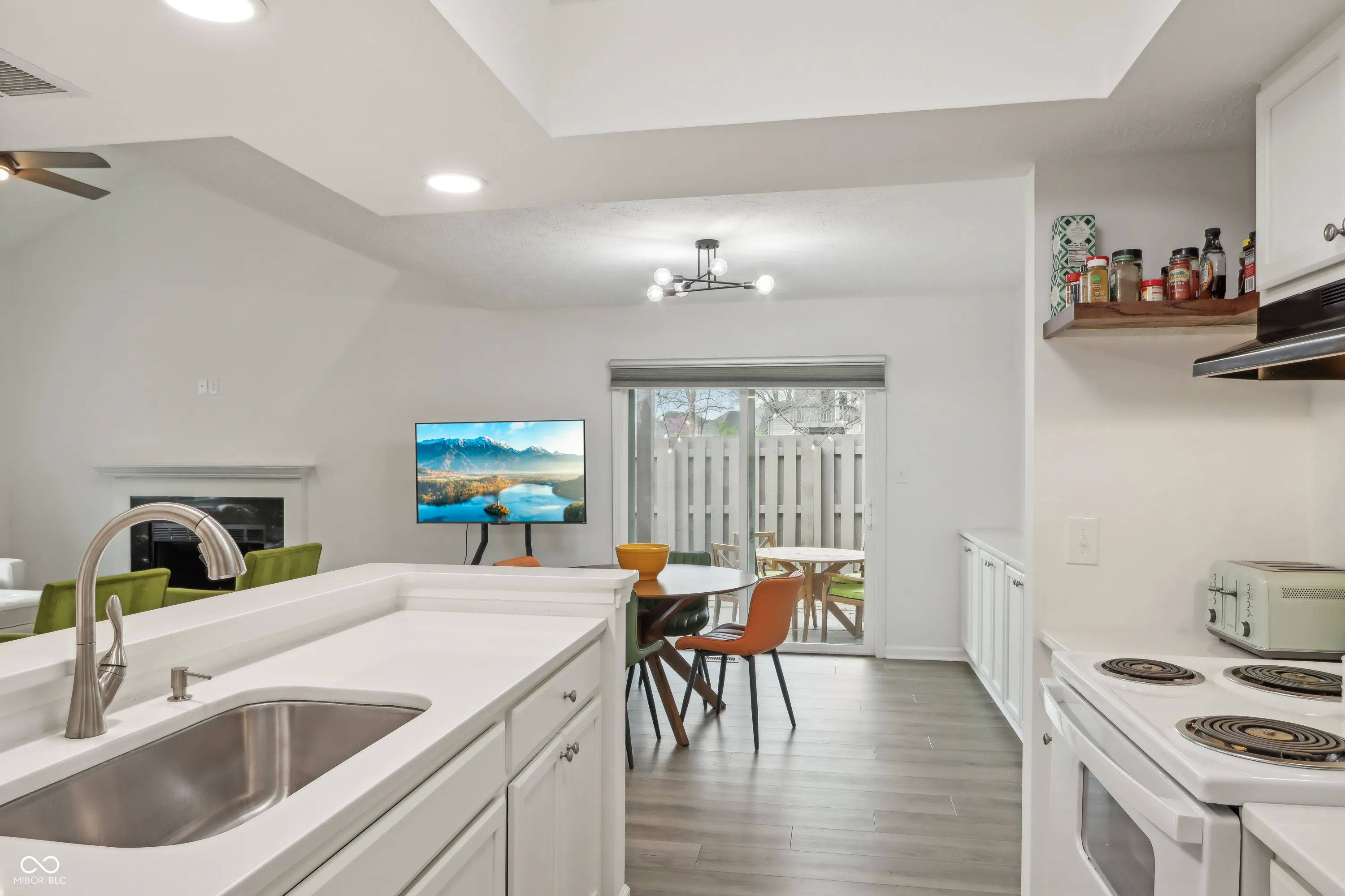 This exquisite 1-bedroom, 2-bathroom condo in Conner Creek, Fishers, offers modern elegance in 1,143 square feet of living space. Recently remodeled, it showcases vaulted ceilings, contemporary lighting, and a fully updated kitchen with brand-new features. Built ins and nooks create great use of space complete with a built-in bar creating a perfect spot for gatherings. Outside on the main floor a private paver patio invites you to unwind. Enjoy flexible living in the loft, which can easily become a second bedroom. Private slider access to upstairs outdoor deck. A beautiful custom-tiled shower enhances the main bathroom. Located as an end unit near the community pool and close to downtown Fishers, this home is designed for comfort and convenience. The walkability to downtown Fishers completes this perfect move in ready gem. All special assessments paid in full for this unit!