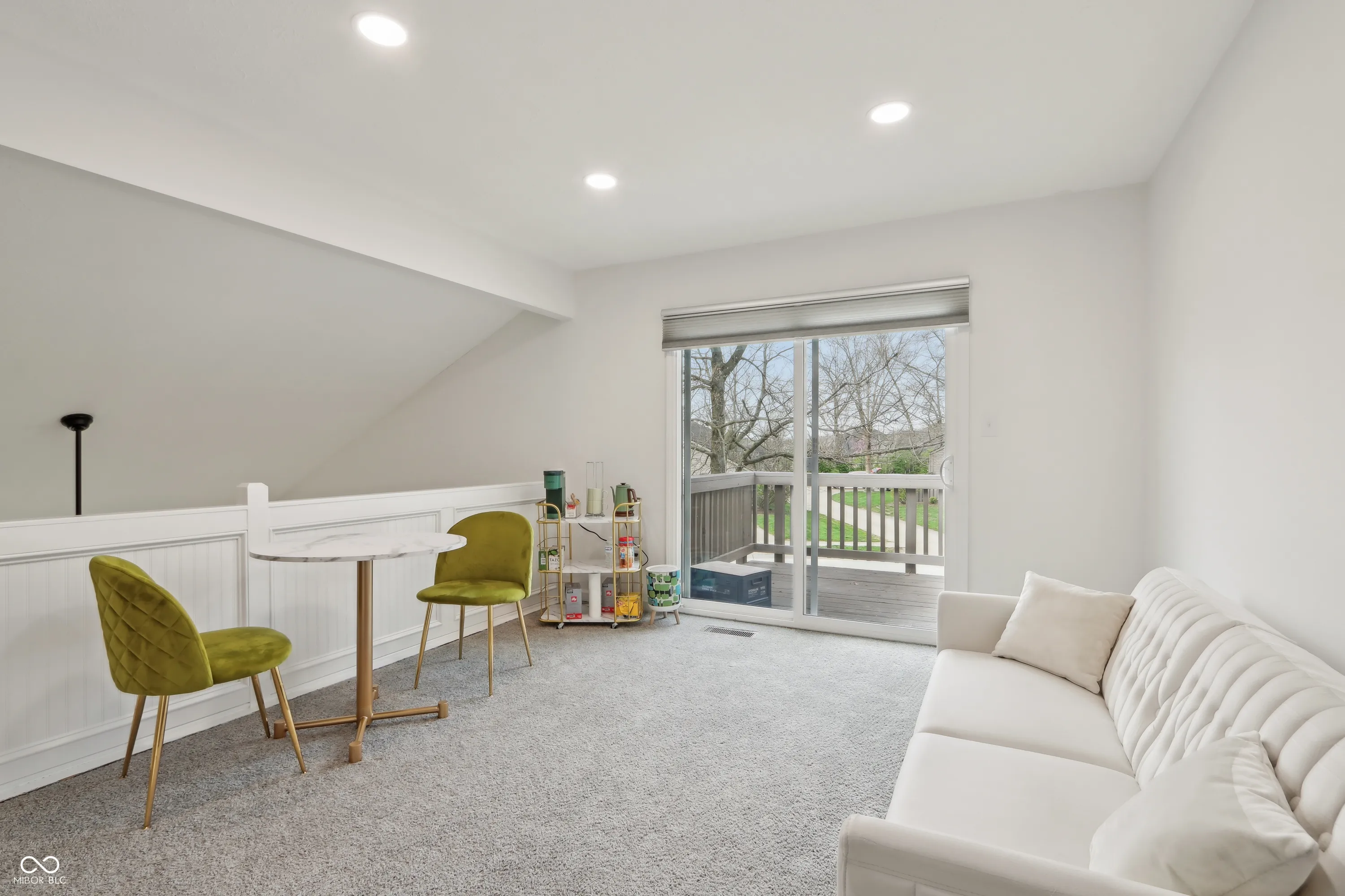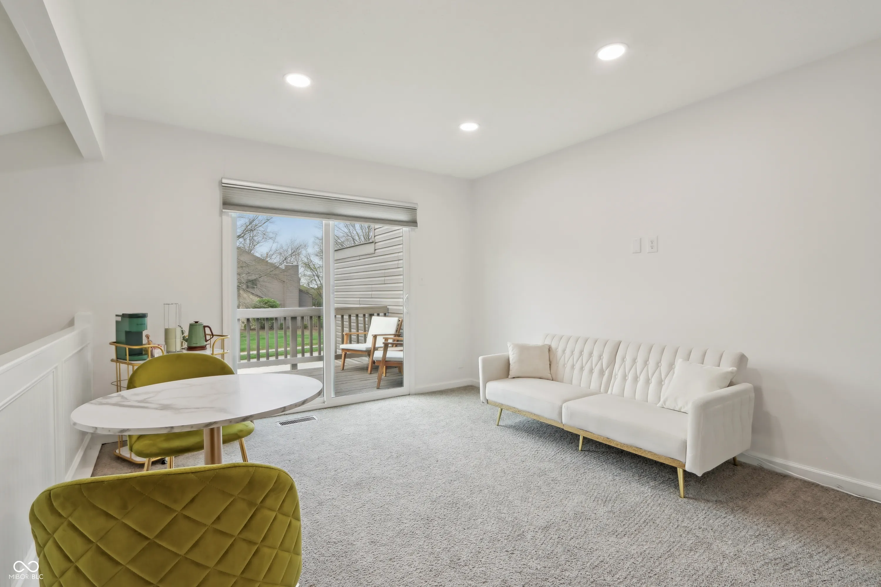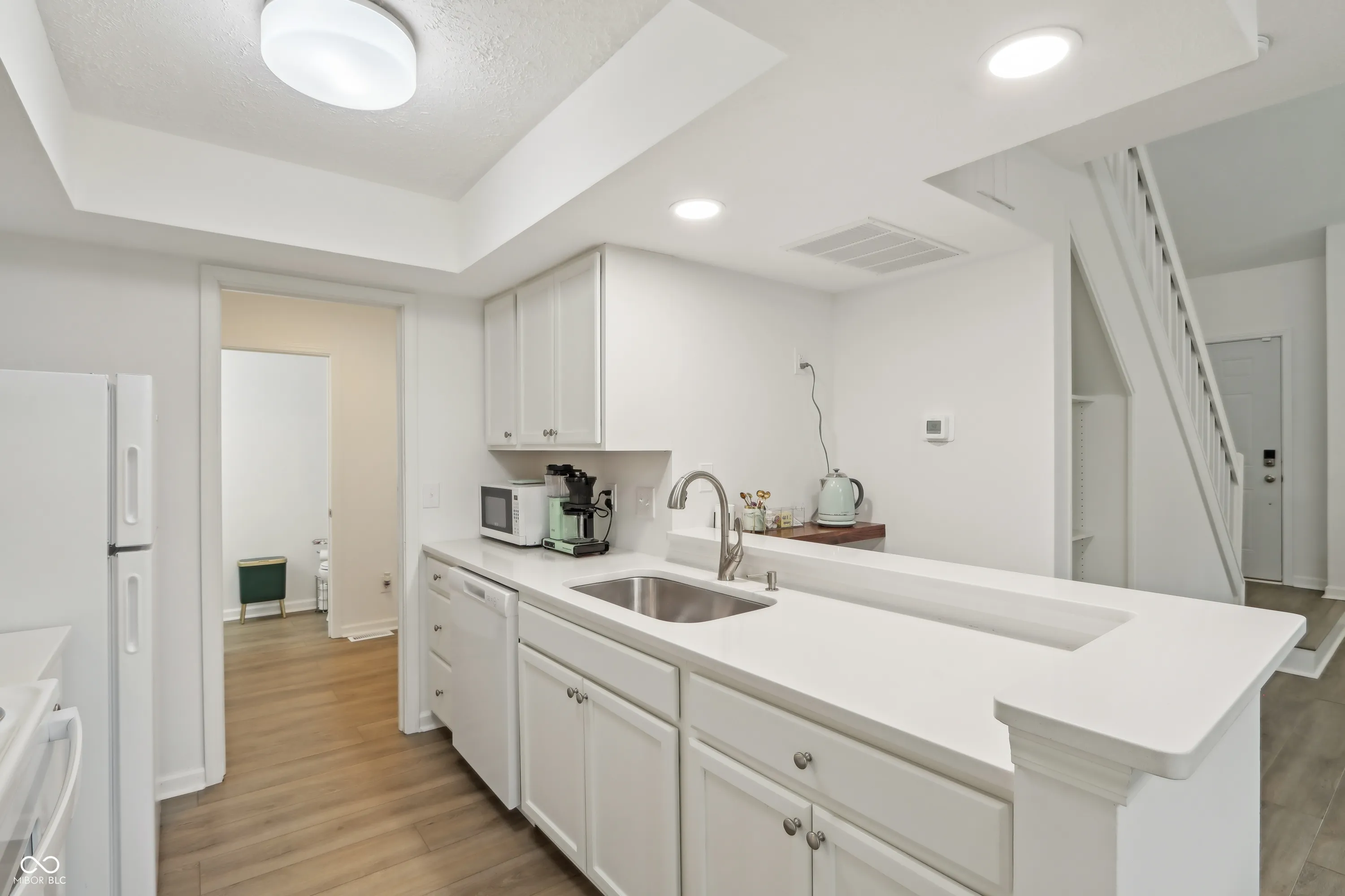 This exquisite 1-bedroom, 2-bathroom condo in Conner Creek, Fishers, offers modern elegance in 1,143 square feet of living space. Recently remodeled, it showcases vaulted ceilings, contemporary lighting, and a fully updated kitchen with brand-new features. Built ins and nooks create great use of space complete with a built-in bar creating a perfect spot for gatherings. Outside on the main floor a private paver patio invites you to unwind. Enjoy flexible living in the loft, which can easily become a second bedroom. Private slider access to upstairs outdoor deck. A beautiful custom-tiled shower enhances the main bathroom. Located as an end unit near the community pool and close to downtown Fishers, this home is designed for comfort and convenience. The walkability to downtown Fishers completes this perfect move in ready gem. All special assessments paid in full for this unit!