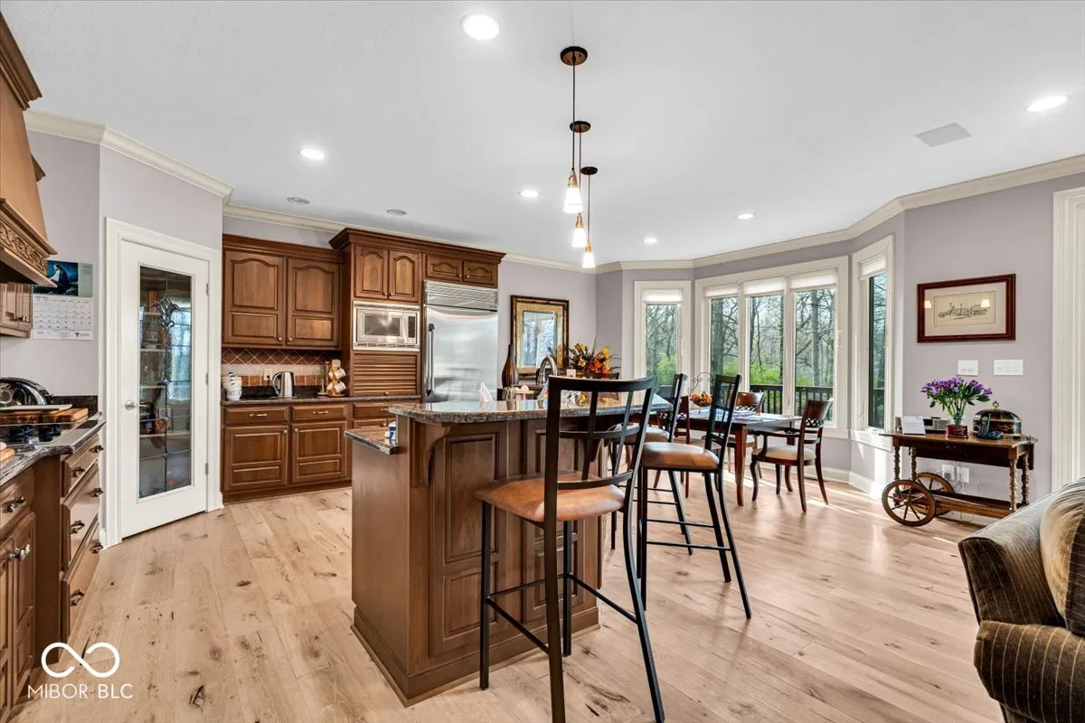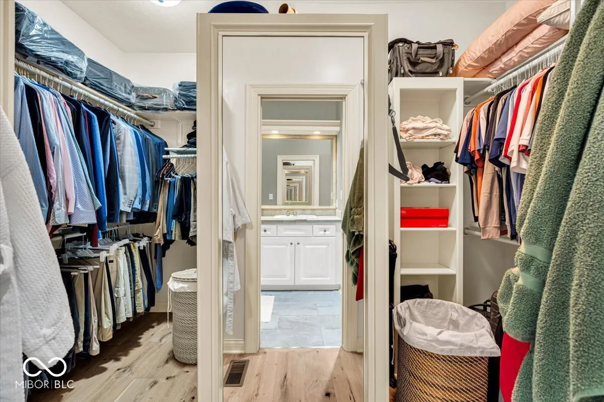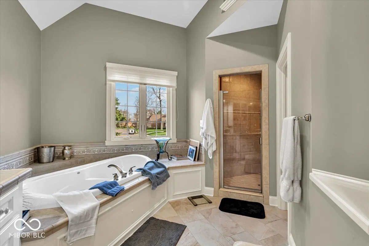 Full nest? Empty nest? Somewhere in-between? Homes this well built and cared for in what could be argued the perfect location simply don’t come around very often. This 4 bedroom, 3.5 bath home located in the Brighton Woods neighborhood in Carmel truly has it all. As you enter the home, the 16ft high ceilings and stunning views of the wooded back yard immediately grab your attention. A separate dining room (rare these days) adds a formal touch to this magnificent home. The spacious main floor primary bedroom offers the perfect oasis – the bathroom features dual sinks, a separate shower and oversized garden tub, plus a walk-in closet that speaks to the most discerning fashionista! The kitchen is a must see – featuring dual ovens, dual sinks, built-in refrigerator, a walk-in pantry and TONS of custom-made cabinetry. Seating for 4 + along the kitchen island provides the perfect spot to observe the chef at work. Just off the kitchen is a breakfast area – an ideal spot to enjoy morning coffee and wonderful views out back. Upstairs features a large loft/landing area – perfect place to settle down with a good book or your favorite podcast. Two oversized guest bedrooms provide family & guests alike with their own space. The Jack/Jill bathroom features dual sinks, a water closet and a walk-in shower. Do NOT miss the unfinished attic space off the north guest bedroom – lots of space to add another bedroom!. The basement features a large seating area (23×17) – plenty of space to install a theater room. A bar area features a full sized fridge, sink and tons of cabinet space. Seating for 6+ around the bar is the perfect setting for a card game and good conversation. NOTE – the bonus room (that could easily be a 4th bedroom) is adjacent to a full bath. The oversized (29×12) custom wood deck sets the stage for evening sunsets! Literally steps from Founders Park and all the green space you could ever want!!