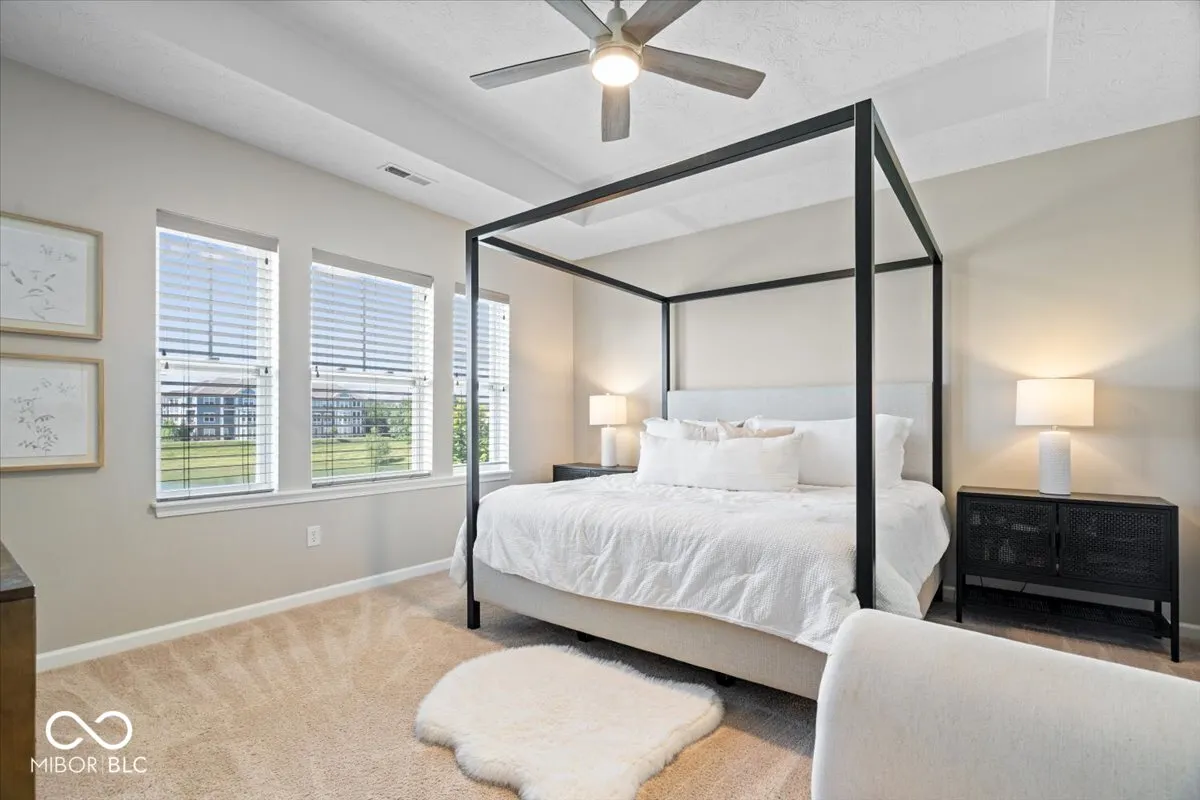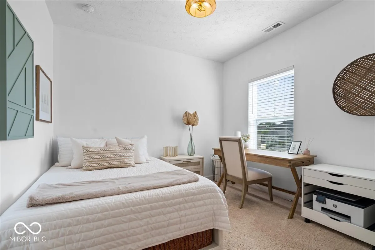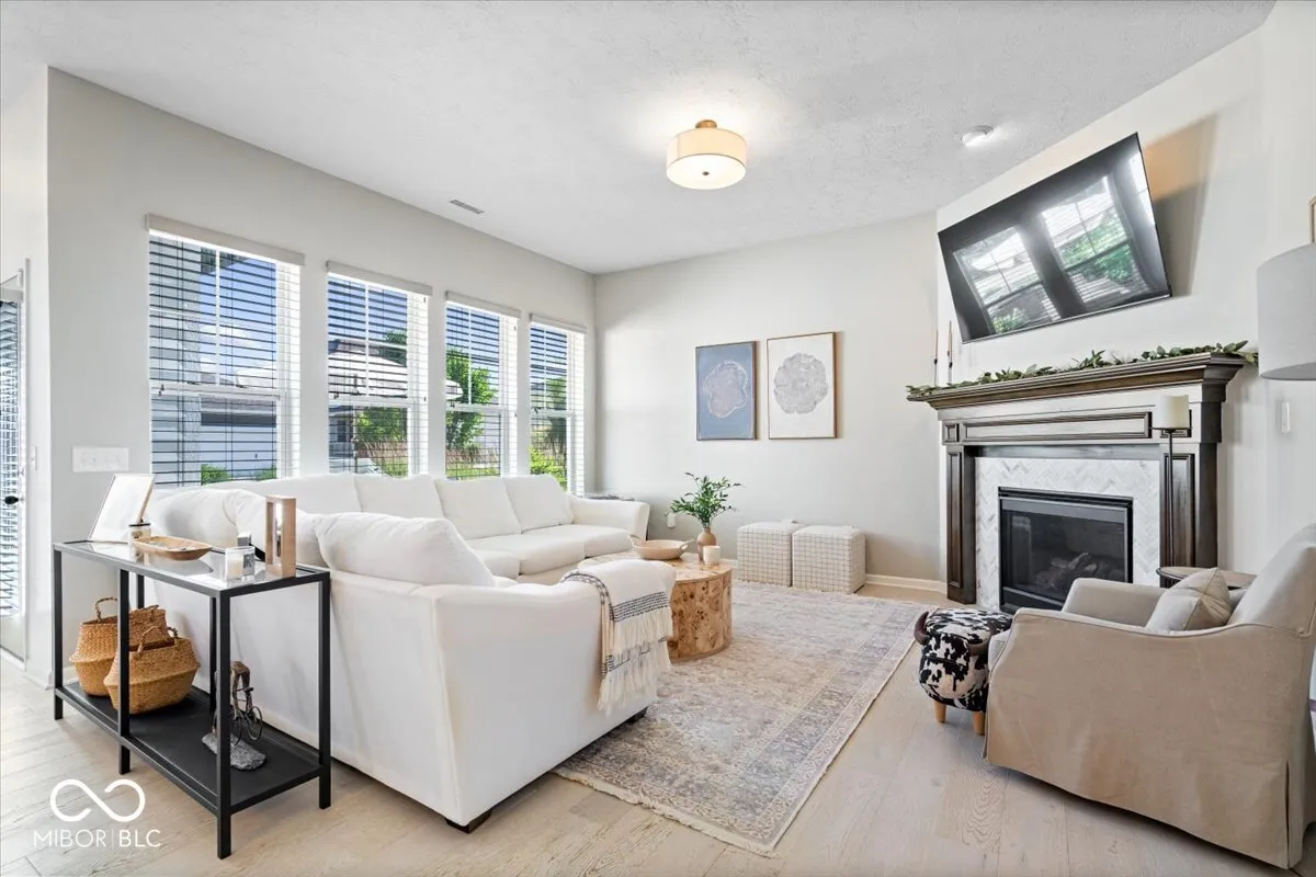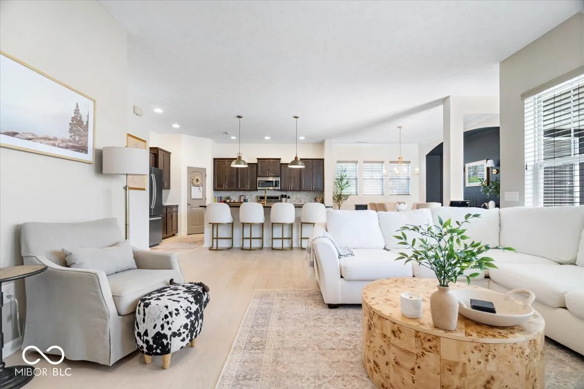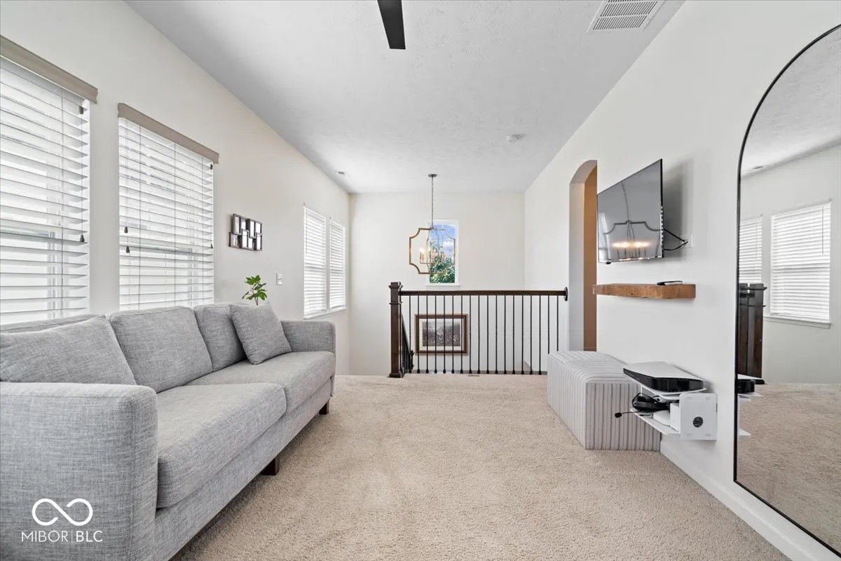 Nestled perfectly between the vibrant downtown areas of Westfield and Carmel, this exquisitely updated home in the sought-after community of Harmony offers over 2,500 sq ft of elegant living space. The main floor features a wide entryway, soaring 10-foot ceilings, a spacious living room (could be converted to an office), leading to an open-concept kitchen with a massive center island, perfect for hosting and entertaining. Adjacent to the family room is a large dining area. Upstairs, the luxurious primary suite provides a serene retreat with multiple walk-in closets and a spacious primary bath, complete with a water closet, huge shower, and separate soaking tub, comfort height dual vanities. On the other side of the huge loft area are two roomy secondary bedrooms and a full bath, and the upstairs laundry complete the upper level. Exterior offers deep recessed front porch, back paved patio, and dog run fence conveniently located off of garage service door. Residents of Harmony enjoy an array of top-notch amenities, including a 24-hour fitness center, three inviting pools, courts for tennis, pickleball, and basketball, two playgrounds, a dog park, a soccer field, a community garden, and scenic walking trails, making this home an exceptional place to live.