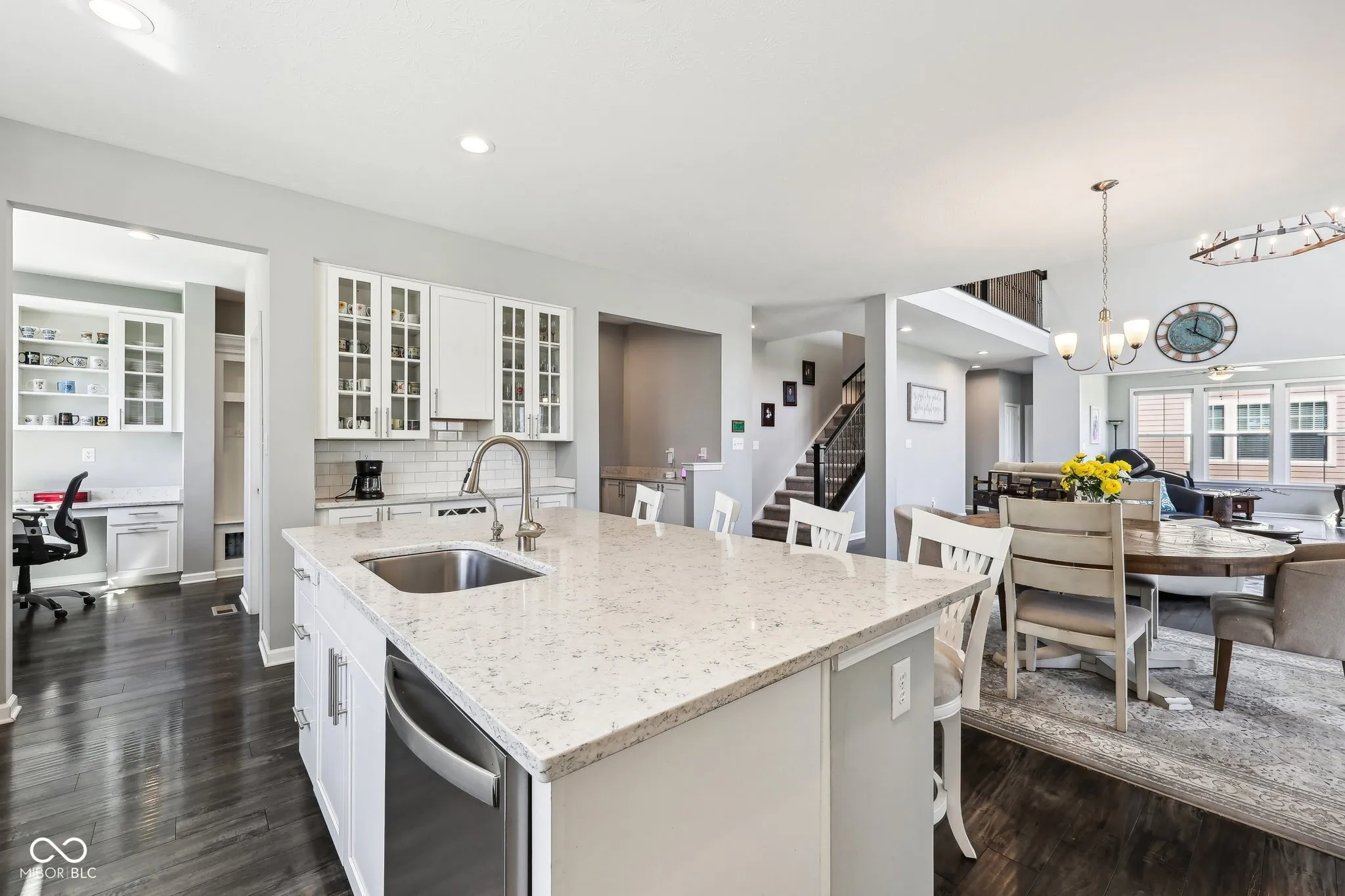 Welcome to the epitome of style and function. This exceptional home is thoughtfully designed with both comfort and sophistication in mind featuring beautifully engineered hardwood floors, a calming view that soothes the soul and a seamless connection to nature. Upon entering you will see your dining room, large enough for the best of family meals and memories, a main floor bedroom suite for In-laws quarters or to use as a home office. Drawing you in further is a grand 2 story great room with beautiful natural light shining through the large wall of windows & a gas fireplace. The open floor plan connects your kitchen, breakfast room and wonderful sun room that is just off the great room. Along with oodles of space for elevated daily living and entertaining you have 6 bedrooms, an ensuite on the main level, 4 upstairs and one in the basement. Your spacious Primary Bedroom has a large walk in closet, double sinks and large tiled walk in shower. The laundry room is conveniently upstairs as well. Lets expound on your outdoor living options-wonder from your kitchen to your screened in porch, or light a fire on the professionally designed patio or its raining-oh, sit under your covered porch area. Your finished basement is a WALK-OUT opening to the beautiful patio, extending your basement to the outdoors! The neighborhood has a pool, playground and walking trails. Your home invites you to relax in every season, enjoy cozy winter nights by the fireplace or unwind in the sunroom bathed in natural light, when the weather warms, step into your screened import or spacious outdoor living area that makes you feel as though you nestled in the heart of the woods this home is more than just a place to live, It’s a lifestyle.