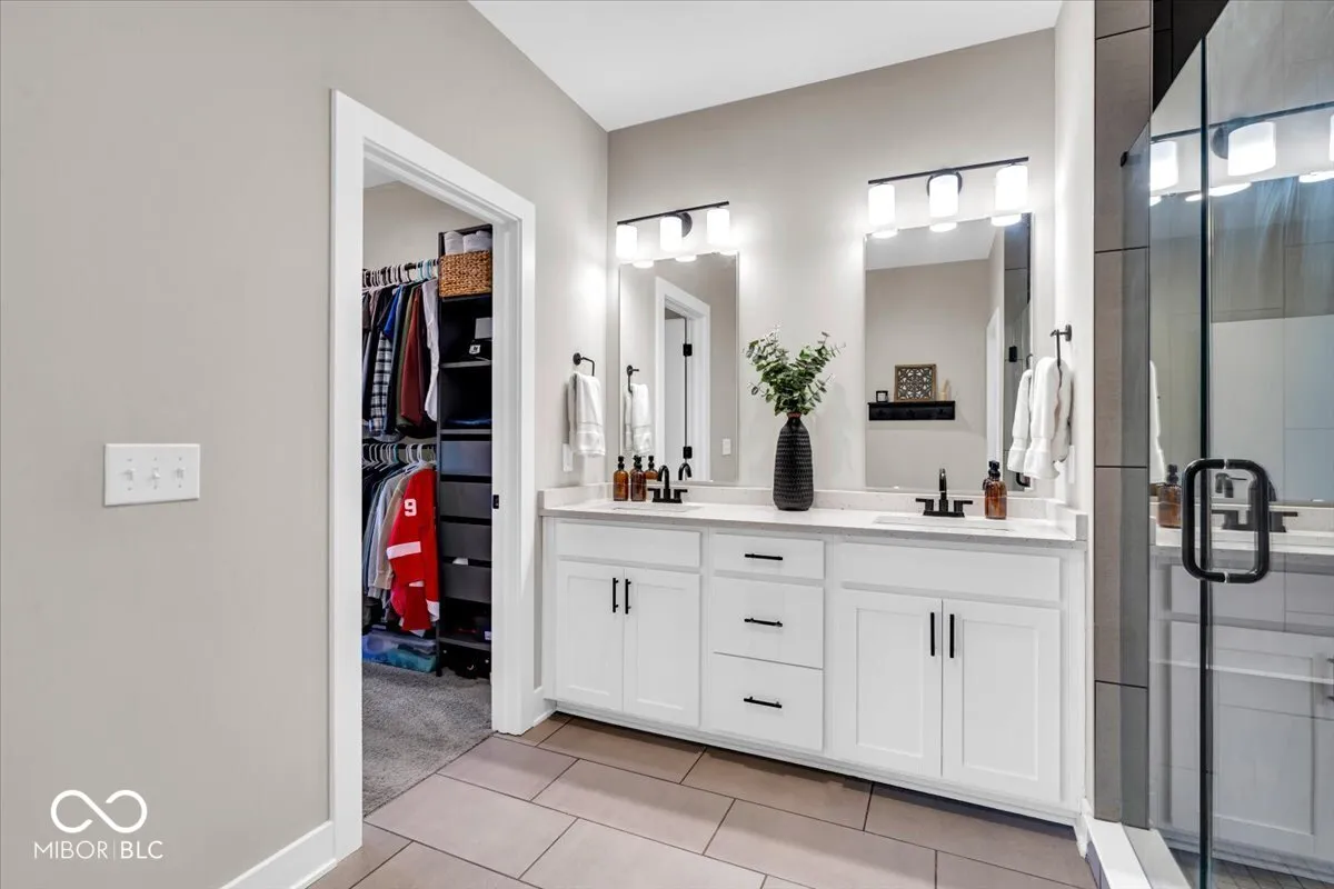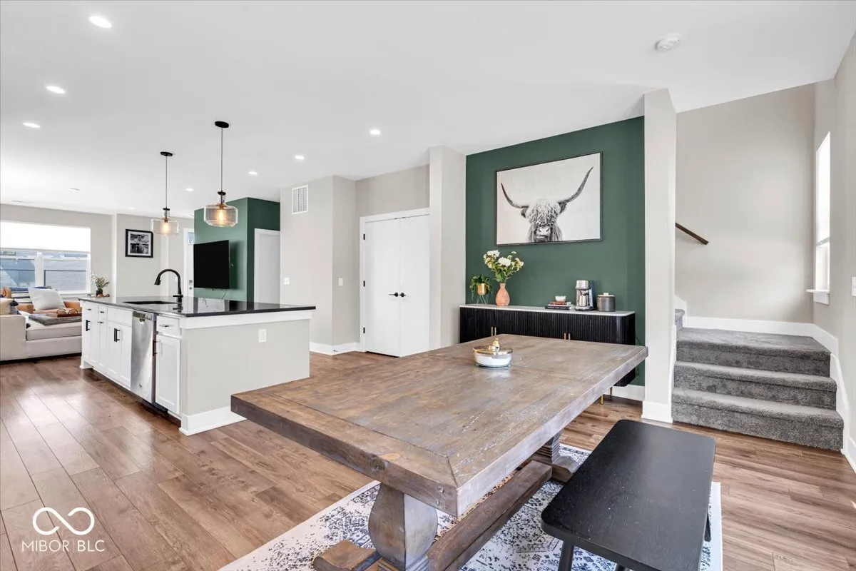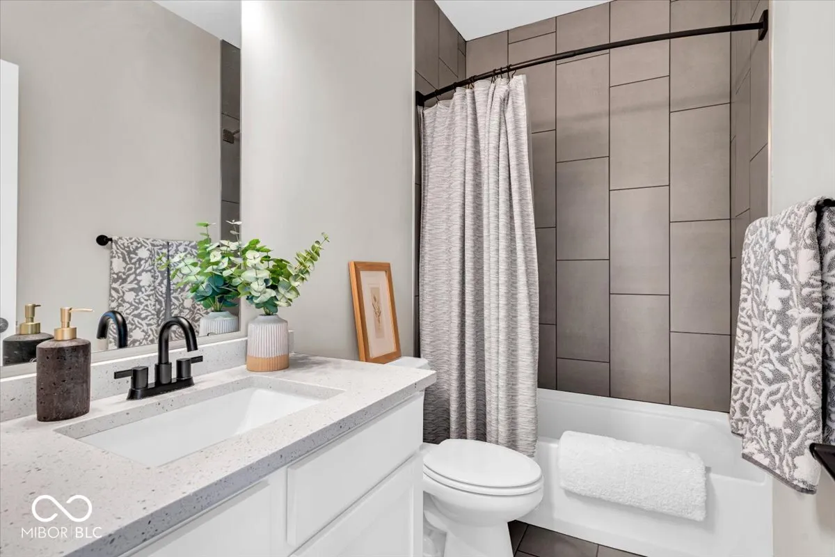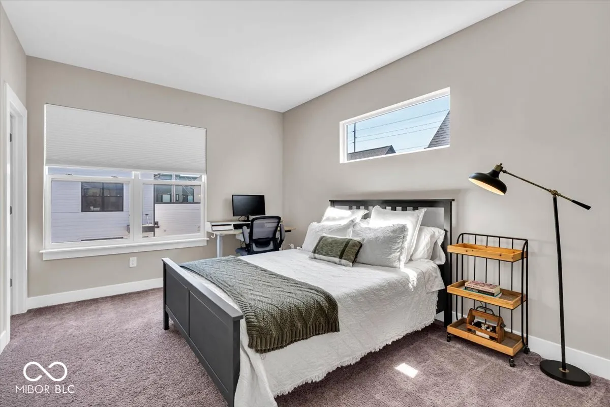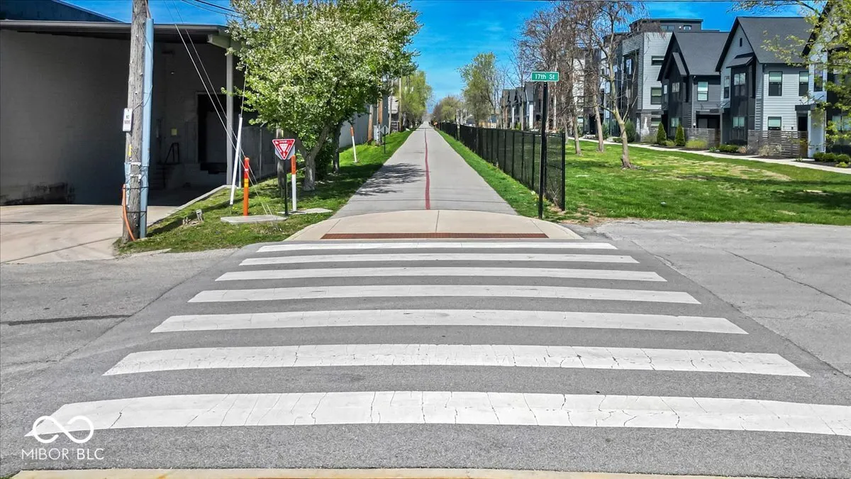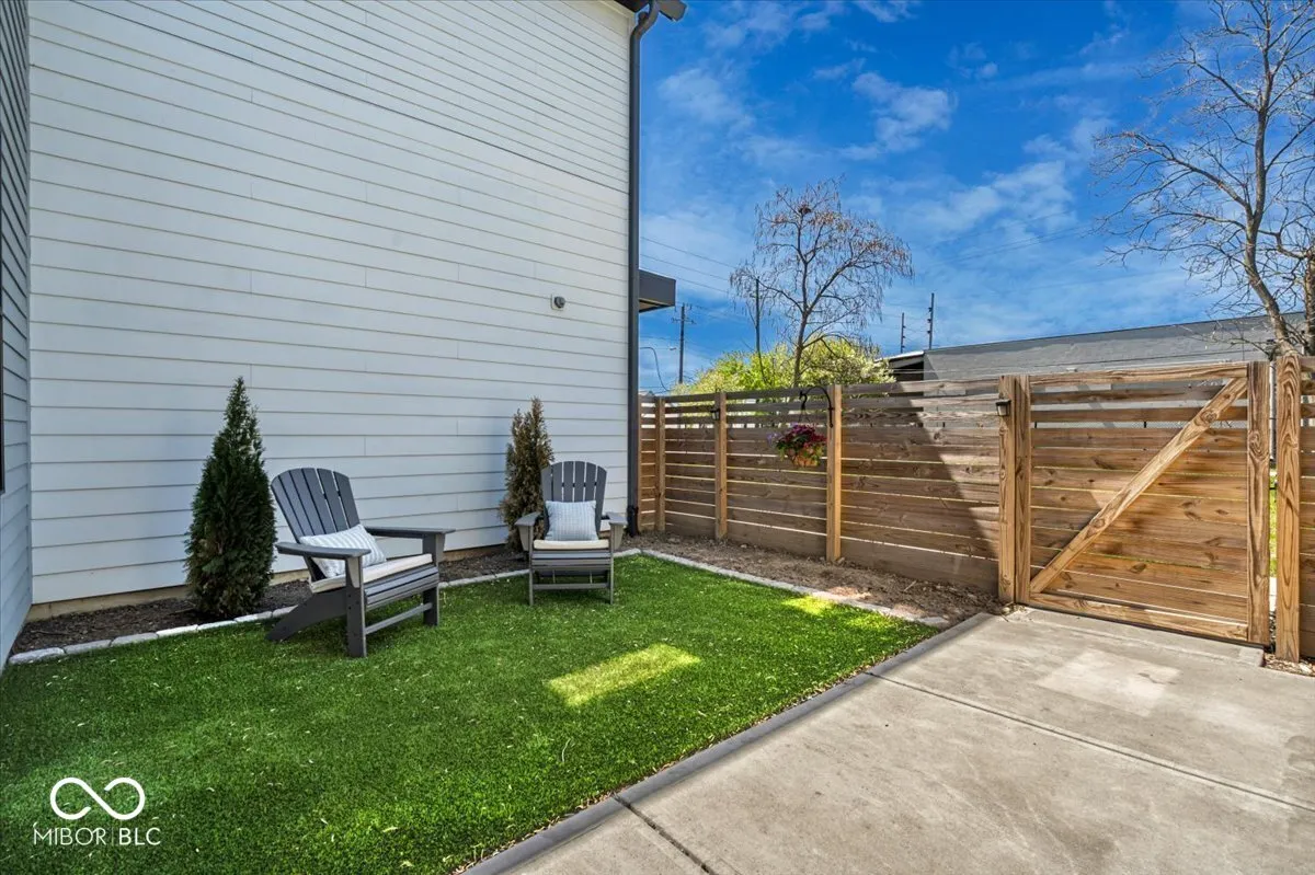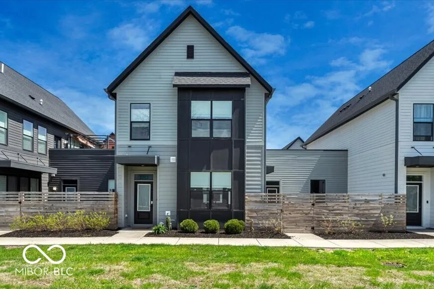 A Monon Trail lover’s dream! Modern yet cozy 2-Level Townhome with Rooftop Deck, Private Courtyard, and a view of the Trail from your Front Door. Open and inviting floor plan features a gourmet Eat-In Kitchen with expansive 4+ seat/10 foot Center Island. Matching stainless appliances including Gas Range with 30in Hood vented to the exterior. Dovetailed, soft close cabinets provide tons of storage, and are topped by two-tone Artic White and Soapstone Metropolis Quartz counters. Elegant glass tile backsplash. Overflow storage in the spacious step-in Pantry. Dining Area could showcase your favorite chandelier! Adjacent niche for a Dining hutch, Coffee Station, or Entertainer’s Bar. Bright Living Area includes enormous windows with Duette Window Shades (can open bottom up or top down for light and privacy). Glass sliding door leads to a fenced Courtyard with low-maintenance grass turf for pets and play! Generous Primary Suite includes blackout Window Shades and ensuite Bath with oversized, fully tiled Walk-In shower, including bench seat, corner storage shelves, dual shower heads with handheld set. Comfort Height dual sink vanity, private Water Closet, and custom trimmed Walk-In Closet complete the spa-like Bath. Second spacious bedroom has walk-in closet and adjacent Bath with tiled surround tub/shower. Upstairs Laundry Room has storage shelving and ultra-convenient Utility Sink. Open second level Landing leads to 21’x12′ Rooftop Deck for morning coffee and evening relaxation. Rear Load, Finished Garage has attached storage shelving and service door to Back Yard. No stairs from the Garage to the Kitchen! The only common walls are between garages for maximum sound protection. Tech package includes Eero Pro Mesh Router System, WIFI Deadbolt/Smart Lock, Nest Thermostat and Video Doorbell, and MyQ Smart Garage Door Opener. From your Front Door to the Monon in less than 30 seconds! Minutes from The Alchemist, Tinker Street, and Provider Cafe. Move In Ready!