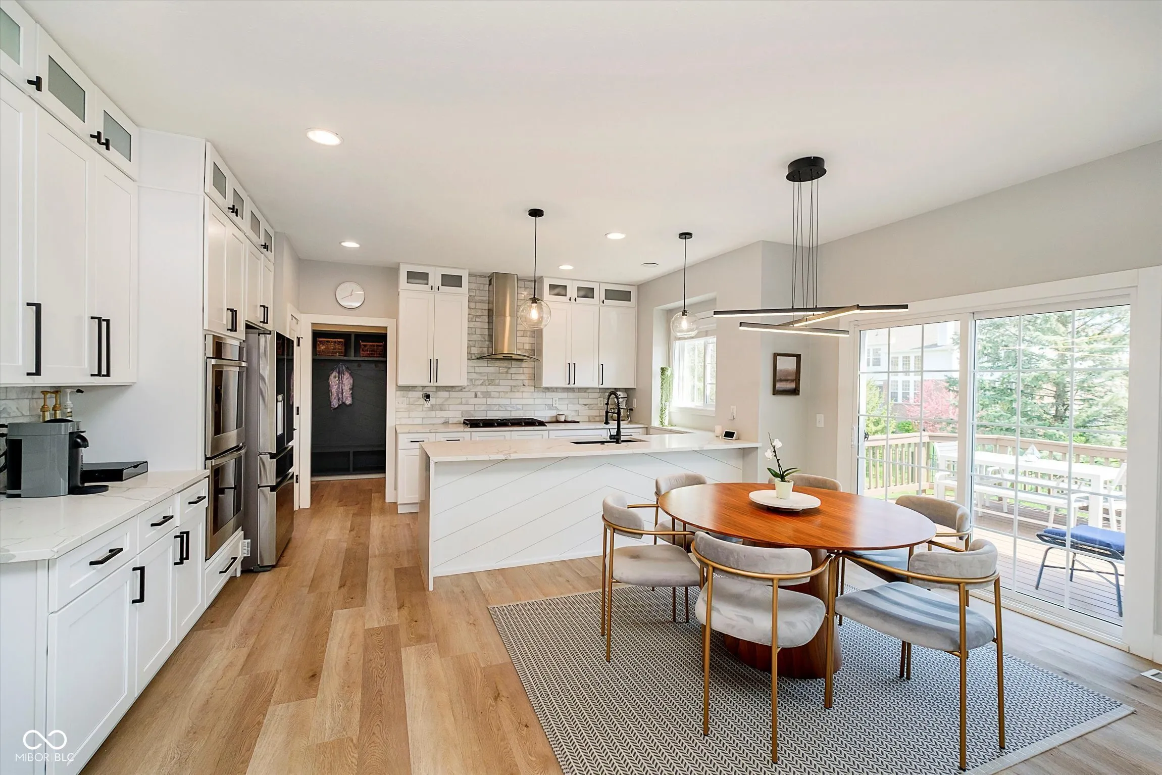 Lovely Carmel executive home in desirable Cherry Creek! Beautifully remodeled modern kitchen and nook opens to light, bright, great room with fireplace and high ceilings! Full bedroom and bathroom on main level plus private den with French doors provides plenty of guest and work space. Formal dining room off of kitchen makes entertaining a breeze for those special occasions. Second staircase provides great access directly from second level to kitchen and nook. Entire main level remodeled with new flooring, contemporary stair rails, kitchen, mudroom, and new AC unit installed in 2021 and new roof put on in 2024. The fully finished basement includes a full bathroom, kitchenette, theatre room and second seating area with plenty of additional room for a pool table or any other fun! Upstairs, your grand primary bedroom is truly a retreat with large bathroom and 2 walk in closets. Three spacious bedrooms and second bathroom round out the second level. Enjoy relaxing out on your back deck, shaded from the hot afternoon sun, or head down the street for a dip in the community pool, a tennis match, or game of basketball just a short walk away. Just turn the key and welcome home!
