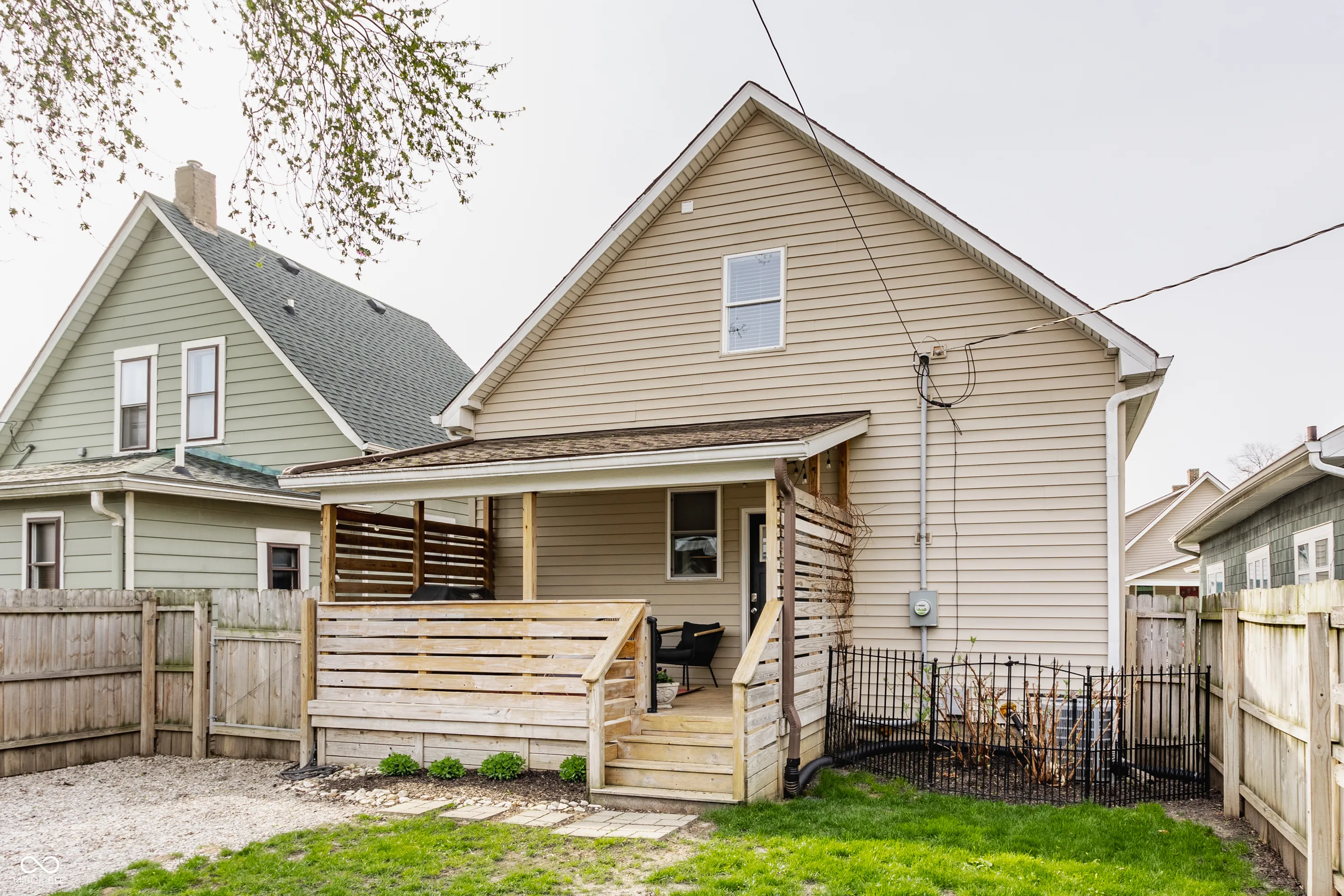 Welcome home to this sophisticated Bates-Hendricks charmer! Completely remodeled inside and out in 2017, this 4 bedroom, 2.5 bath beauty offers the perfect blend of modern updates and timeless character. Major updates in 2017 include a new roof, HVAC, water heater, electrical, plumbing, windows and flooring. Step inside to an open, light-filled floor plan with a main-level owner’s suite and a flexible second bedroom-ideal for guests or a home office. The versatile gourmet kitchen is outfitted with SS appliances, granite countertops, pantry and a large center island-perfect for entertaining. Upstairs, you’ll find a spacious 3rd bedroom and intimate 4th bedroom, a full bath, and a convenient laundry room. Enjoy outdoor living in the fully fenced backyard with a covered deck, plus a detached one-car garage and extra parking via the alley as well as on street parking for guests. All this within walking distance to local shops, restaurants, and Eli Lilly, with quick access to Fountain Square, downtown Indy, and major interstates.