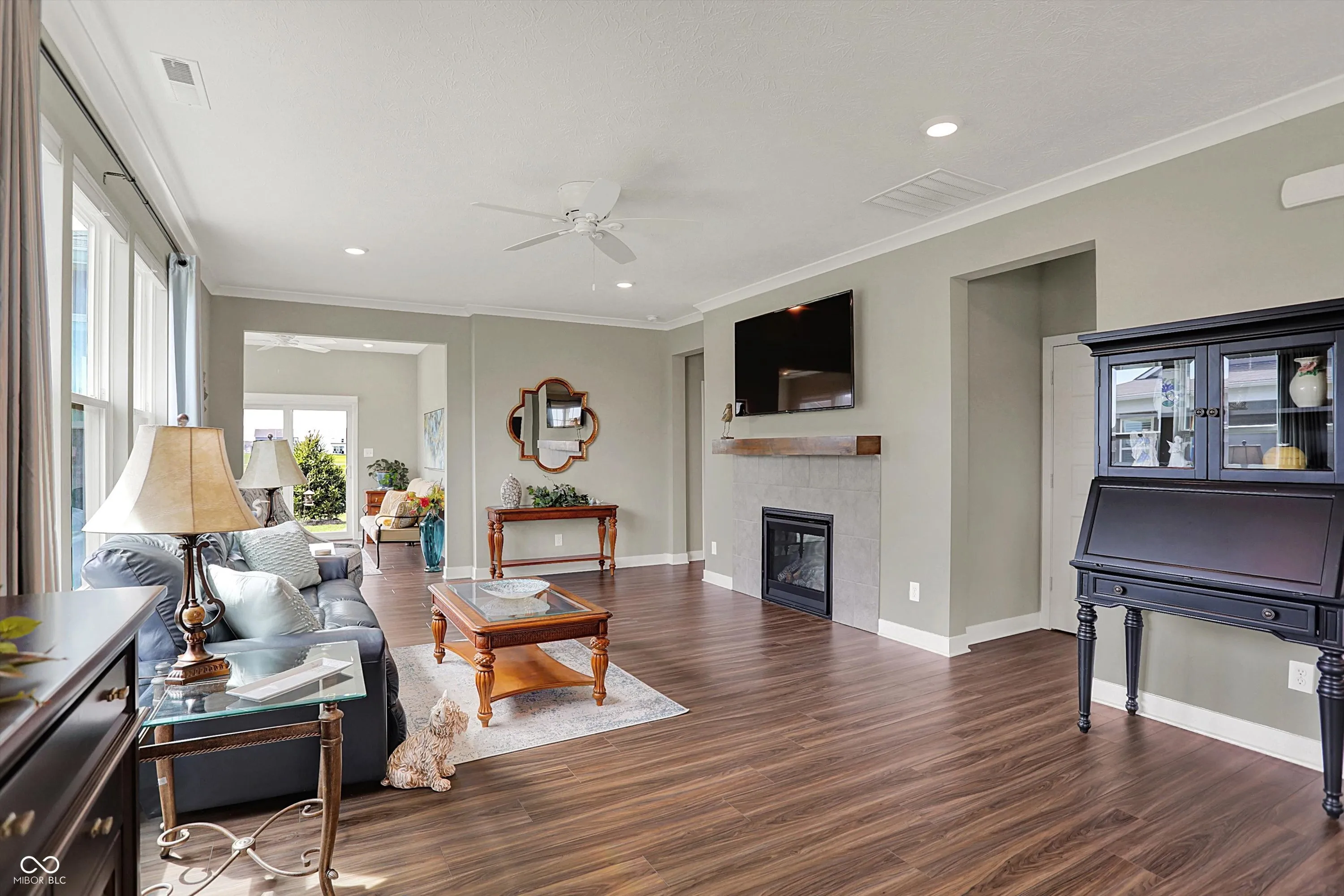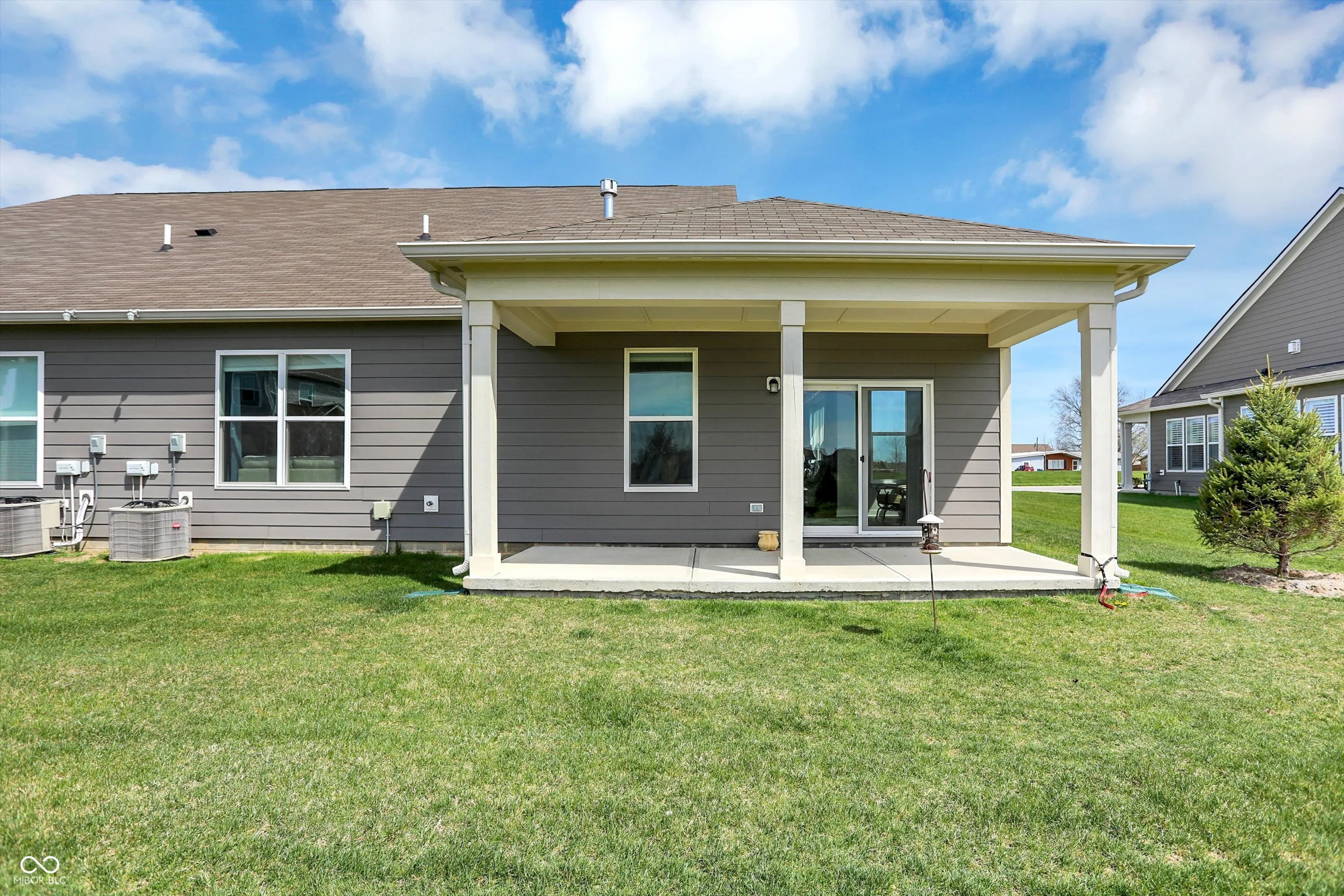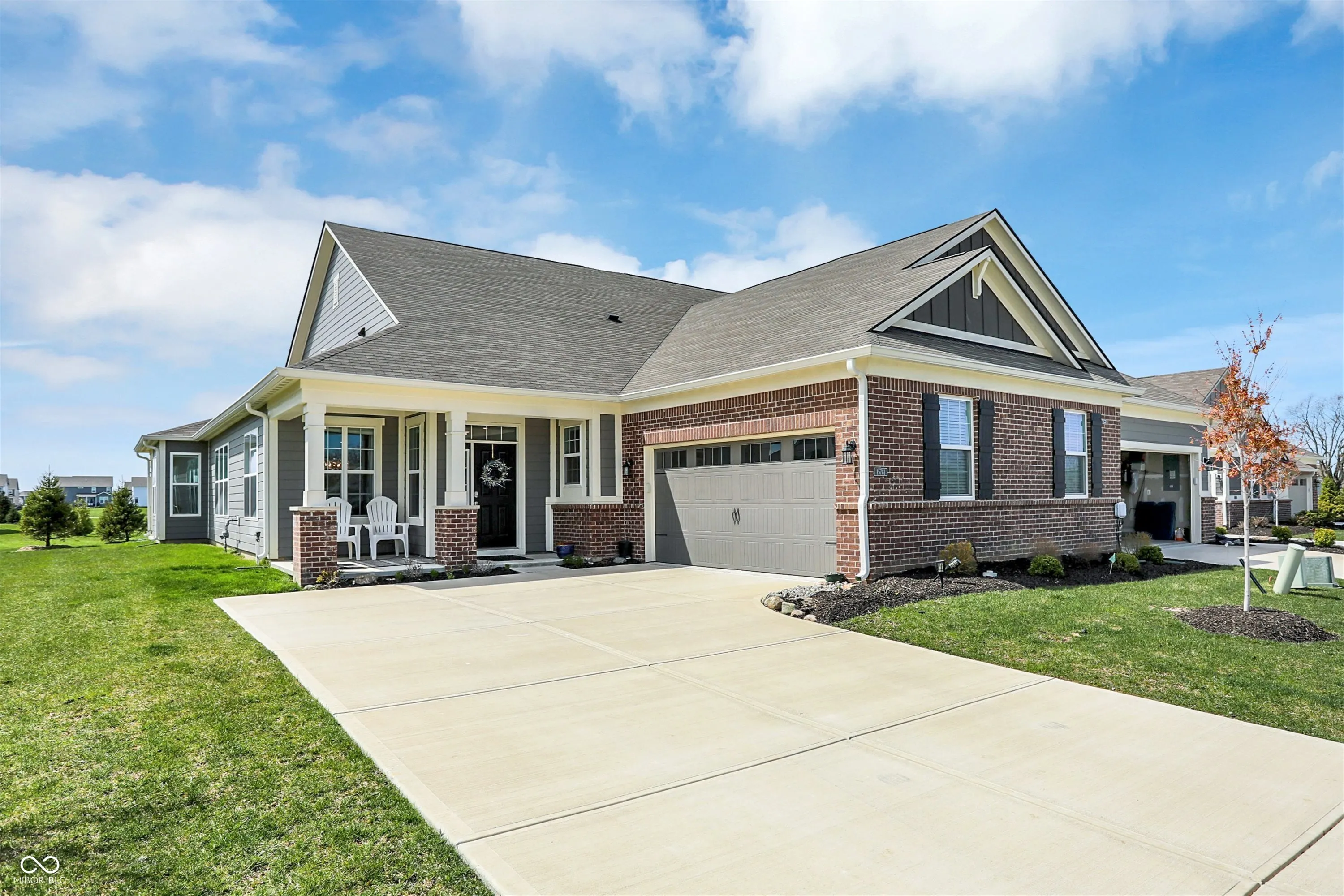 Step into this beautiful, low-maintenance home featuring an open floor plan that creates a spacious and inviting atmosphere from the moment you walk through the covered front porch. The seamless flow connects a dedicated dining area with a gourmet kitchen that boasts stainless steel appliances, a large island, and abundant cabinet space-perfect for cooking and entertaining. Adjacent to the kitchen, you’ll find a convenient walk-in pantry and a versatile planning center, ideal for a home office or homework nook. The cozy family room centers around a stylish tile fireplace, creating a warm and welcoming space. Enjoy year-round sunlight in the bright and airy sunroom, which opens to a covered back patio surrounded by newly planted trees-your own private outdoor retreat. The owner’s suite is a true sanctuary, complete with tray ceiling detail, double vanity, tiled walk-in shower, and an expansive walk-in closet that connects directly to the laundry room, featuring a utility sink for added convenience. A finished two-car garage completes this thoughtfully designed home that combines comfort, style, and functionality. HOA takes care of your lawn and snow removal and you are moments away from shopping centers.