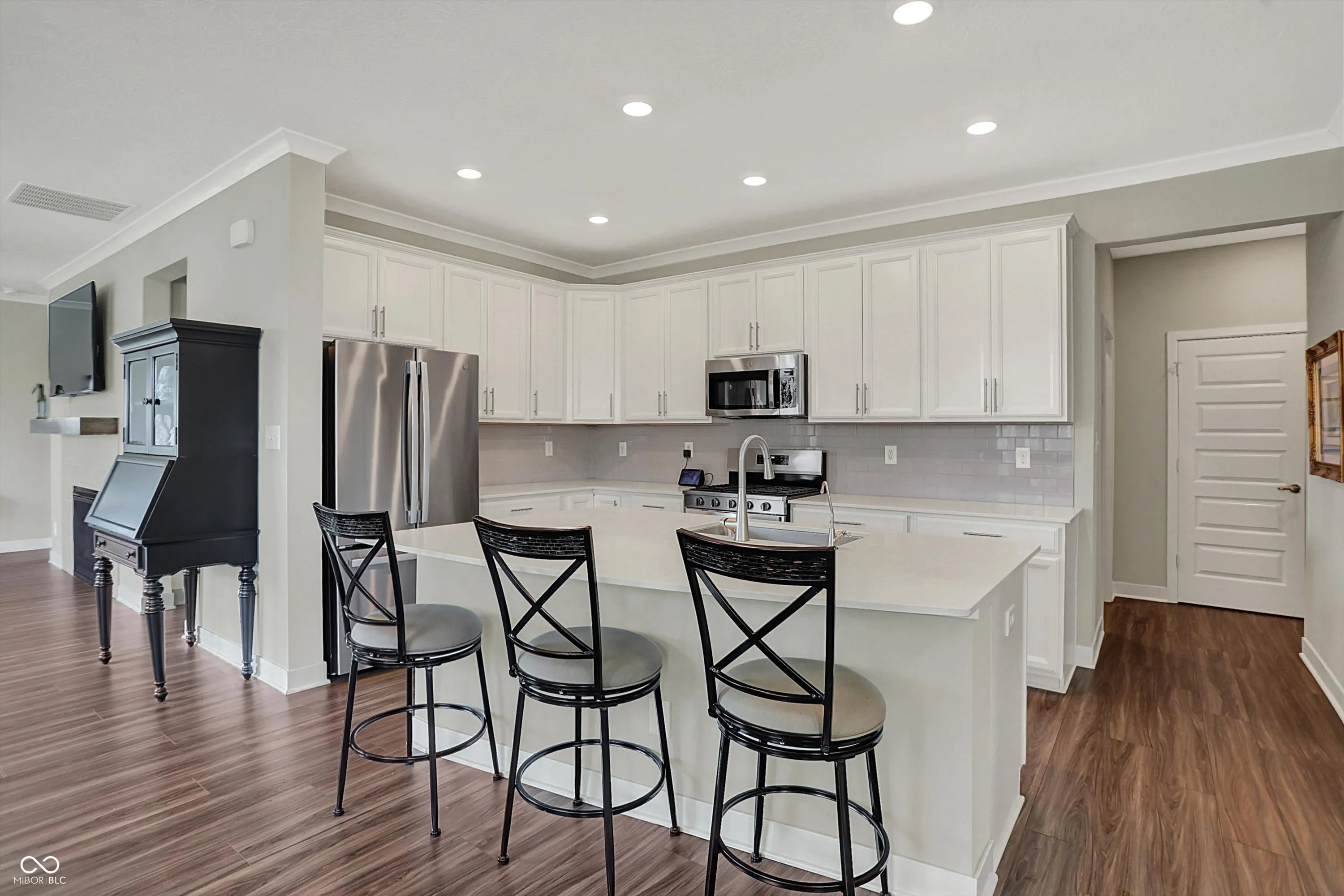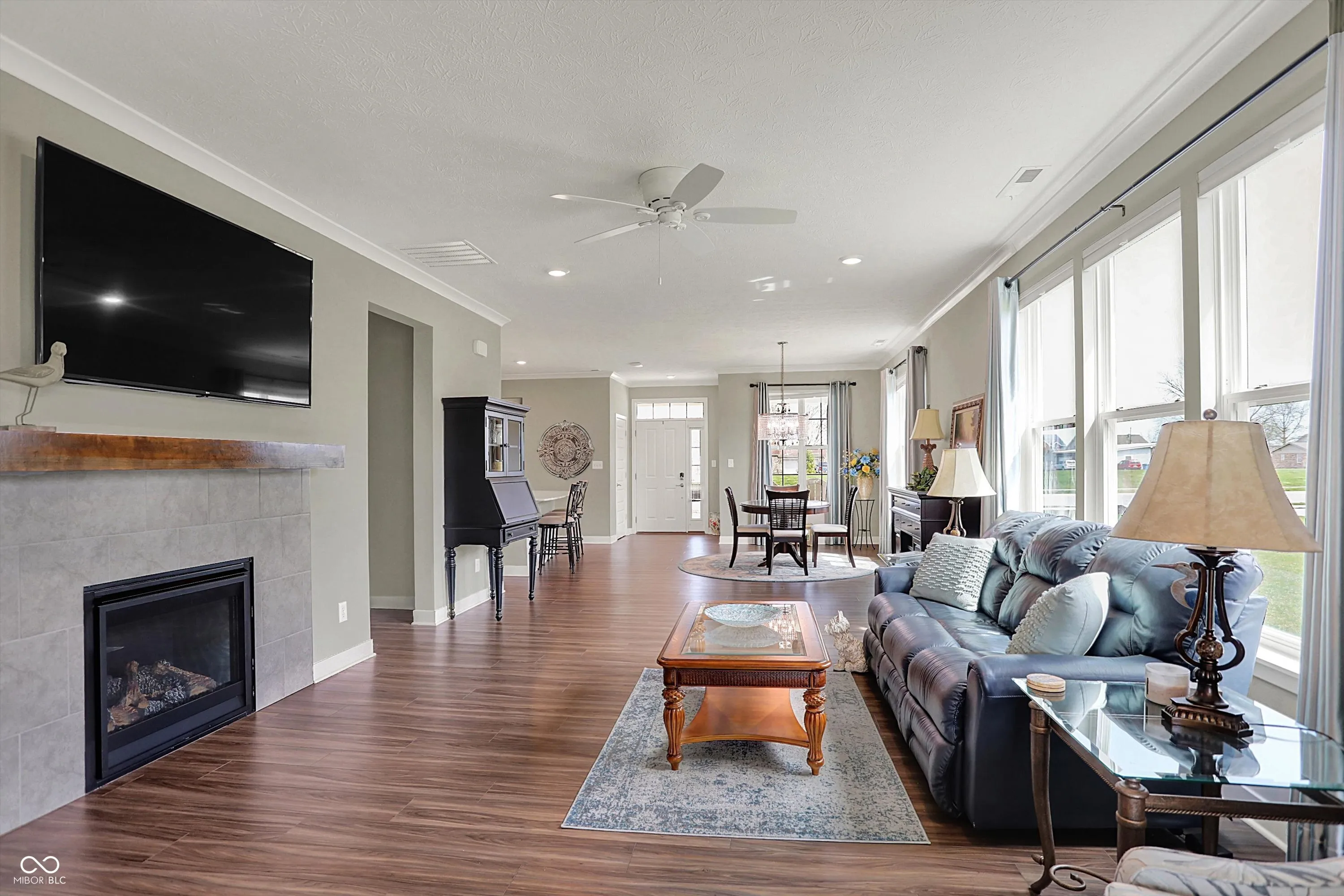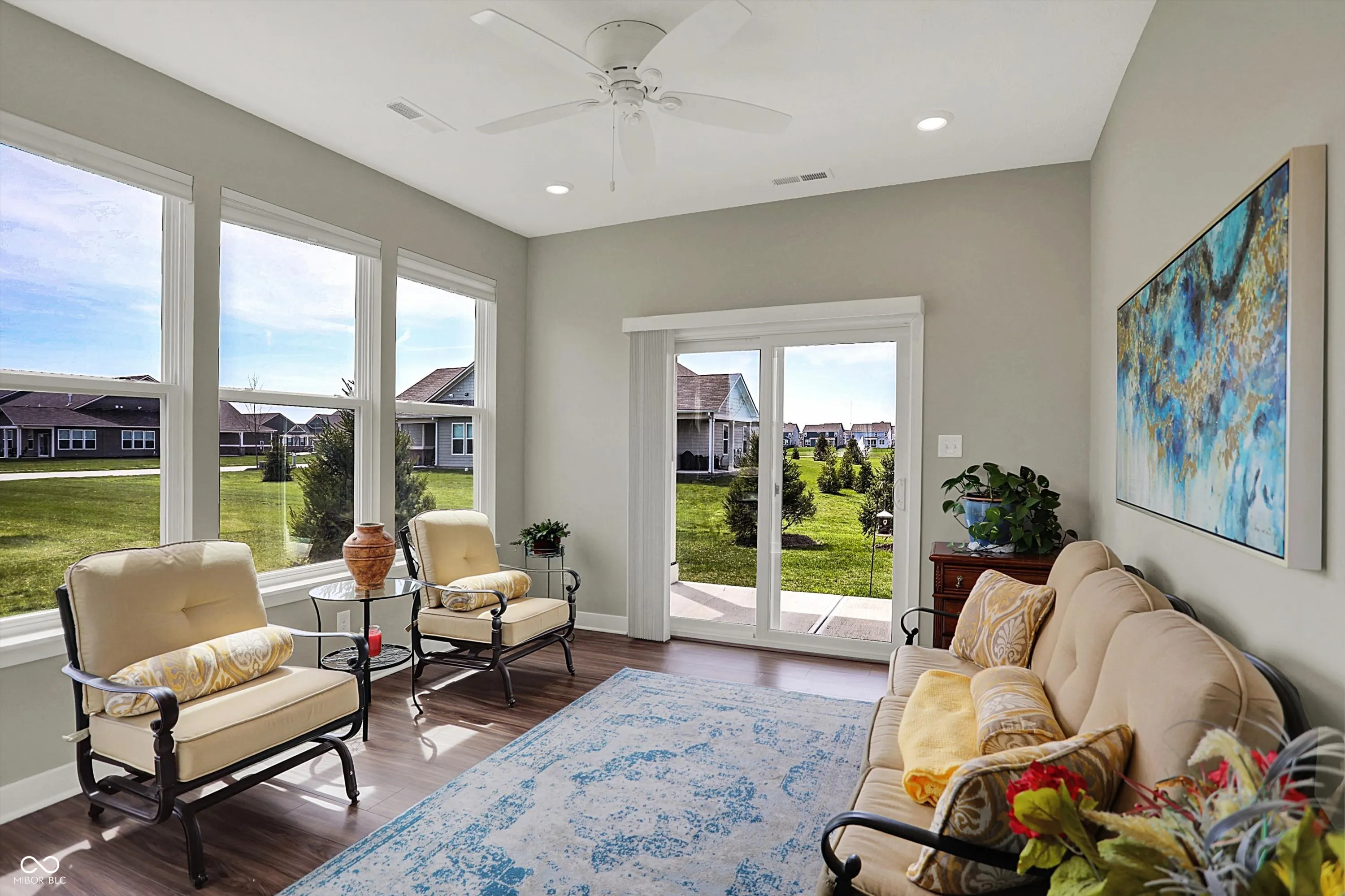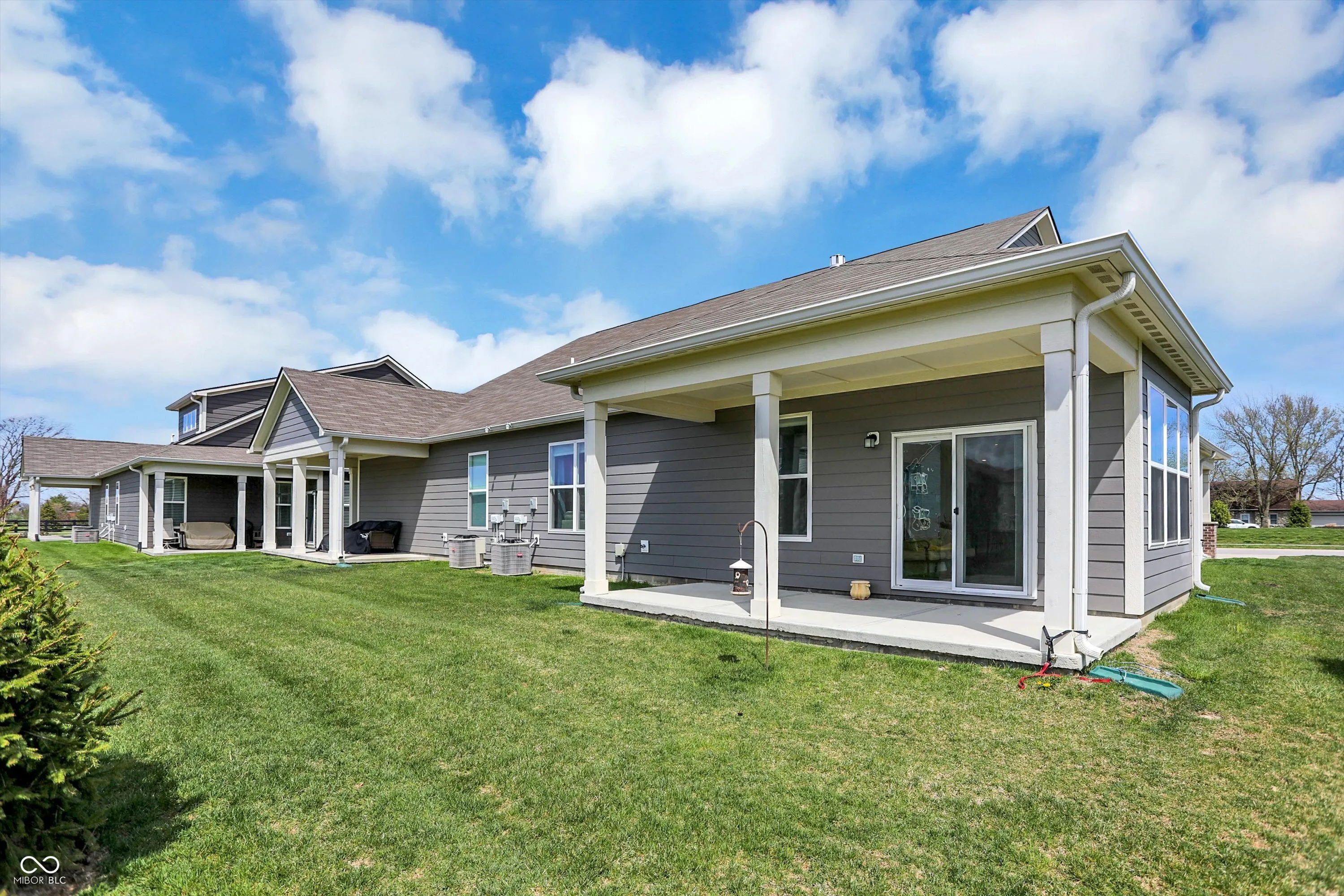 Step into this beautiful, low-maintenance home featuring an open floor plan that creates a spacious and inviting atmosphere from the moment you walk through the covered front porch. The seamless flow connects a dedicated dining area with a gourmet kitchen that boasts stainless steel appliances, a large island, and abundant cabinet space-perfect for cooking and entertaining. Adjacent to the kitchen, you’ll find a convenient walk-in pantry and a versatile planning center, ideal for a home office or homework nook. The cozy family room centers around a stylish tile fireplace, creating a warm and welcoming space. Enjoy year-round sunlight in the bright and airy sunroom, which opens to a covered back patio surrounded by newly planted trees-your own private outdoor retreat. The owner’s suite is a true sanctuary, complete with tray ceiling detail, double vanity, tiled walk-in shower, and an expansive walk-in closet that connects directly to the laundry room, featuring a utility sink for added convenience. A finished two-car garage completes this thoughtfully designed home that combines comfort, style, and functionality. HOA takes care of your lawn and snow removal and you are moments away from shopping centers.