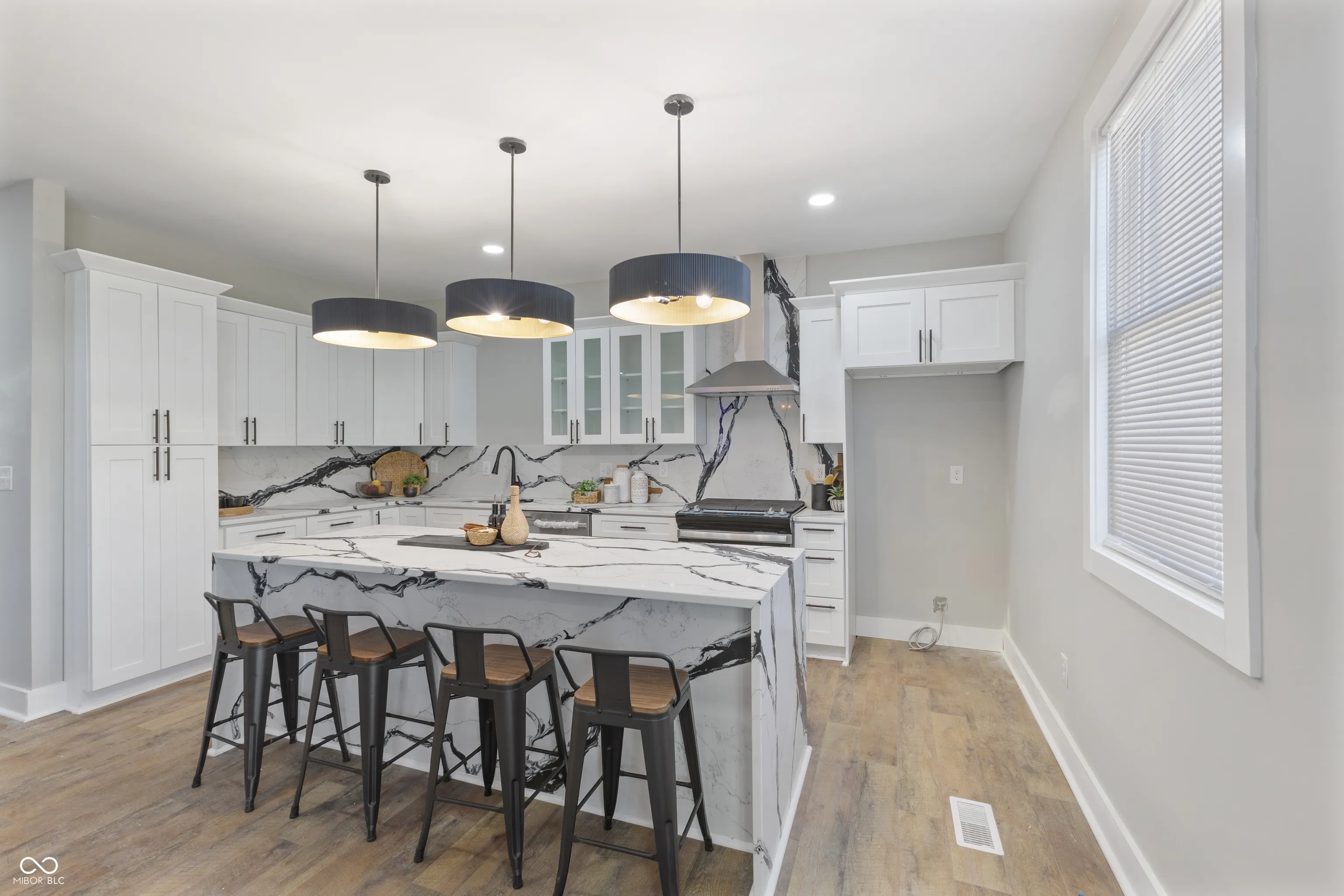 Stunning new rehab construction by Lucy Construction, nestled in the vibrant Reagan Park neighborhood. This property features 5 spacious bedrooms and 3.5 bathrooms, meticulously designed to offer both comfort and style. The home boasts a thoughtful layout with high-end finishes throughout, including rich hardwood floors, custom marble tile, quartz countertops and stylish fixtures. The main level features an inviting open-concept living area with fireplace that seamlessly blends with a modern kitchen, perfect for both everyday living and entertaining. A Family Room AND Separate Living area also on main level, perfect for family gatherings. A private office space completes the main Level. The second level offers a Massive Primary BR En-Suite with WIC. 3 Additional BRs and Oversized Loft complete the second level. The gigantic basement offers a Large BR and Full Bath. Also 2 Bonus Rooms perfect for a home gym or movie theatre. Each bedroom is generously sized, providing ample space and privacy, while the bathrooms are equipped with contemporary amenities for your convenience. The property includes a two-car detached garage with additional off-street parking, offering practicality and ease of access. The fenced-in backyard is a private oasis, ideal for relaxing or hosting gatherings with family and friends. Location is key, and this home is perfectly situated close to an array of local attractions. Enjoy the convenience of nearby Mass Ave, Bottleworks, Downtown’s restaurants, shopping and nightlife. Nearby is Fredrick Douglas Park w/Beautiful Paths & Trails, perfect for the active lifestyle! This home seamlessly combines modern luxury with a prime location, making it the perfect choice for your next move. Don’t miss the opportunity to experience all that this exceptional property has to offer!