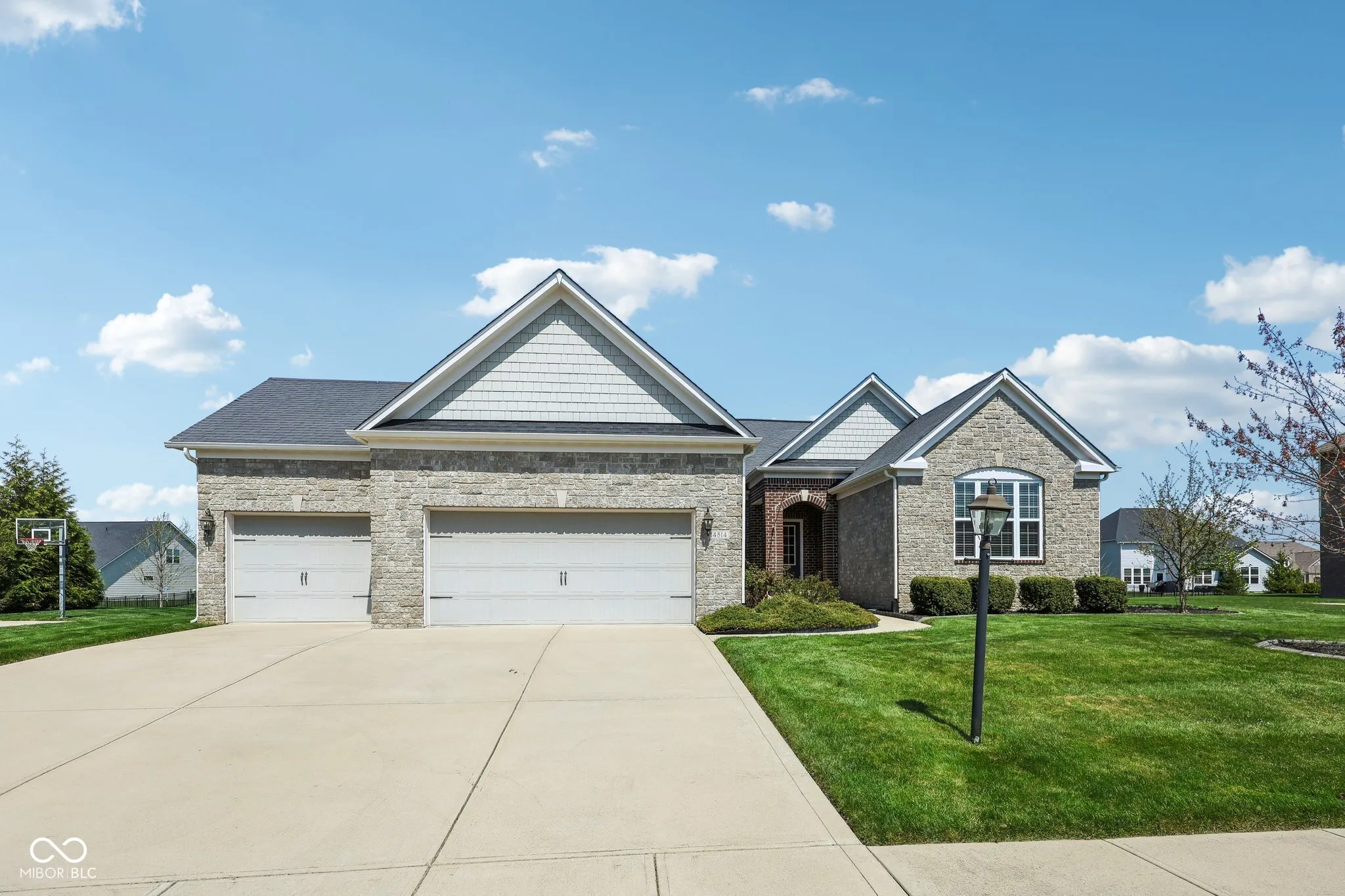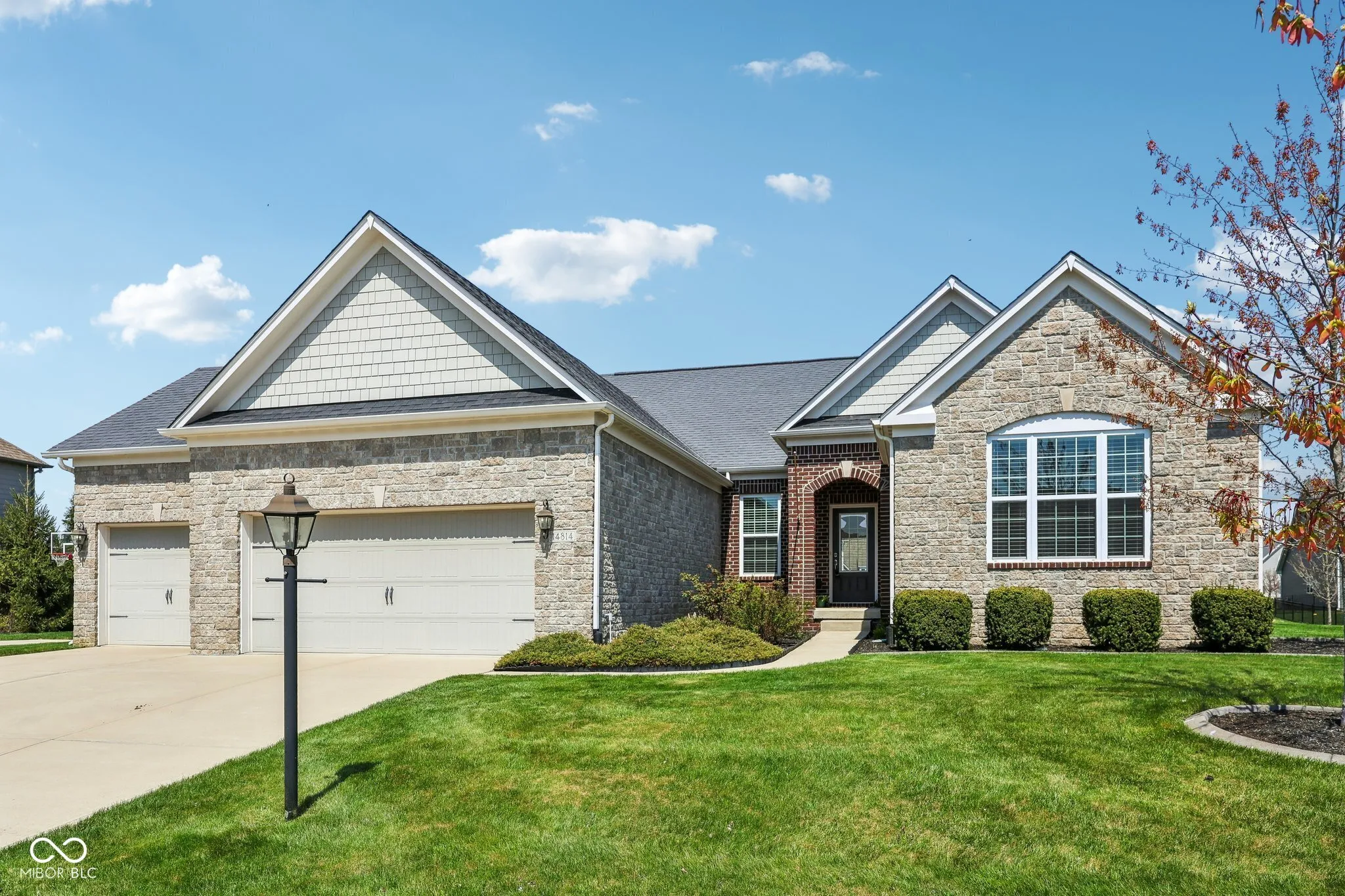 Fabulous Fishers impressive 2429 sq foot ranch with finished basement located in desirable Belmont Place. Three bedrooms plus office. Office could flex to formal living or dining room. Open flowing floor plan with 11 foot ceilings bathed in natural sunlight. Chef’s dream kitchen with stainless appliances are ready for entertaining with cooktop, double oven, large granite countertops and double pantry. Split floor plan has two bedrooms with jack and jill bathroom at one end. Primary suite on the other end of great room for your own personal retreat. Trayed ceiling, double vanity, separate shower plus garden soak tub, water closet, and spacious custom closet. Take the open staircase to HUGE finished family room 33×31 with egress window. Workshop and utility room would make a great spot for workout or craft room. Three car garage. Finshed basement plumbed for bath and bar sink. Covered patio for cookouts is ready for summer entertaining and family gatherings. Move in ready with possession at closing. Come SEE!