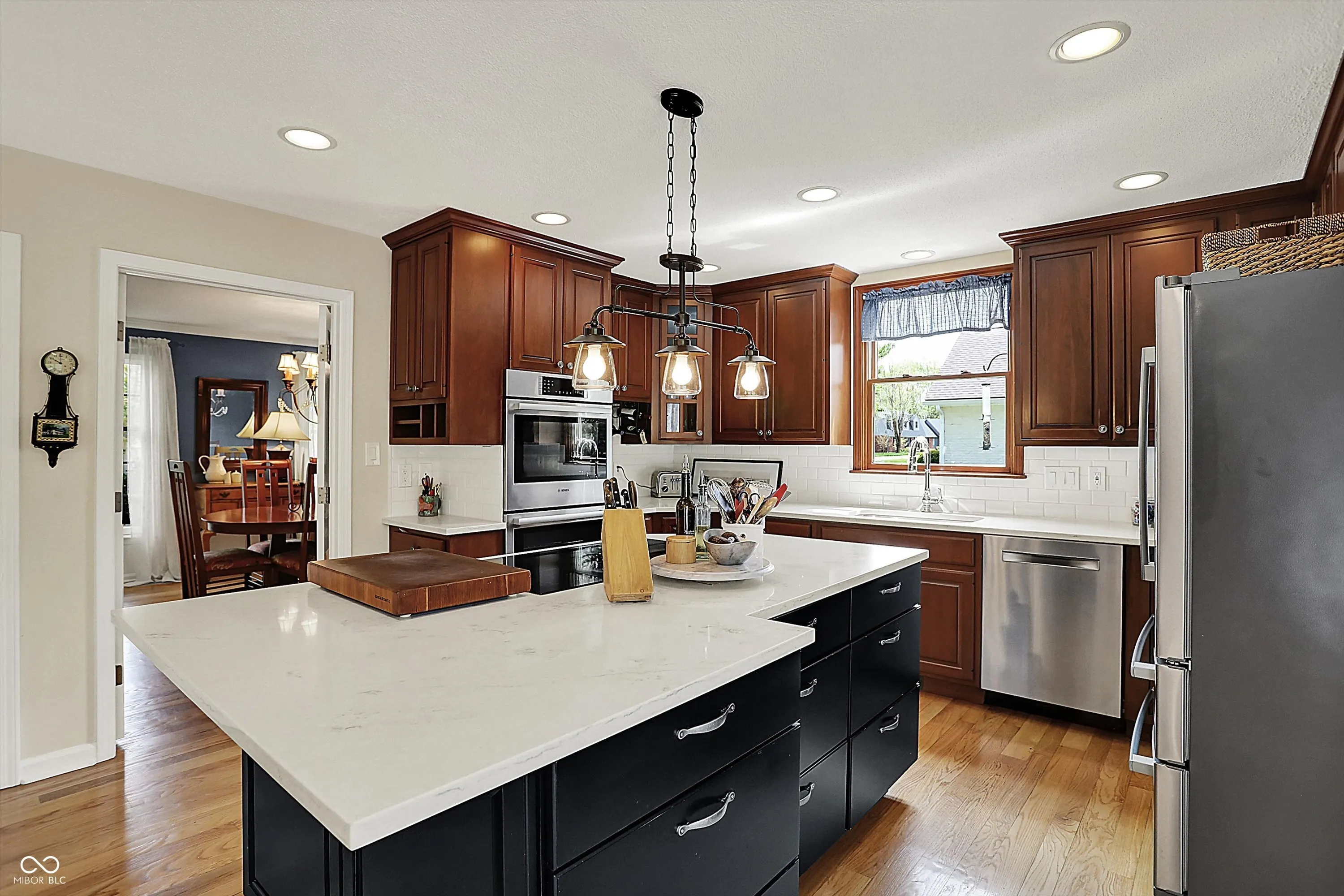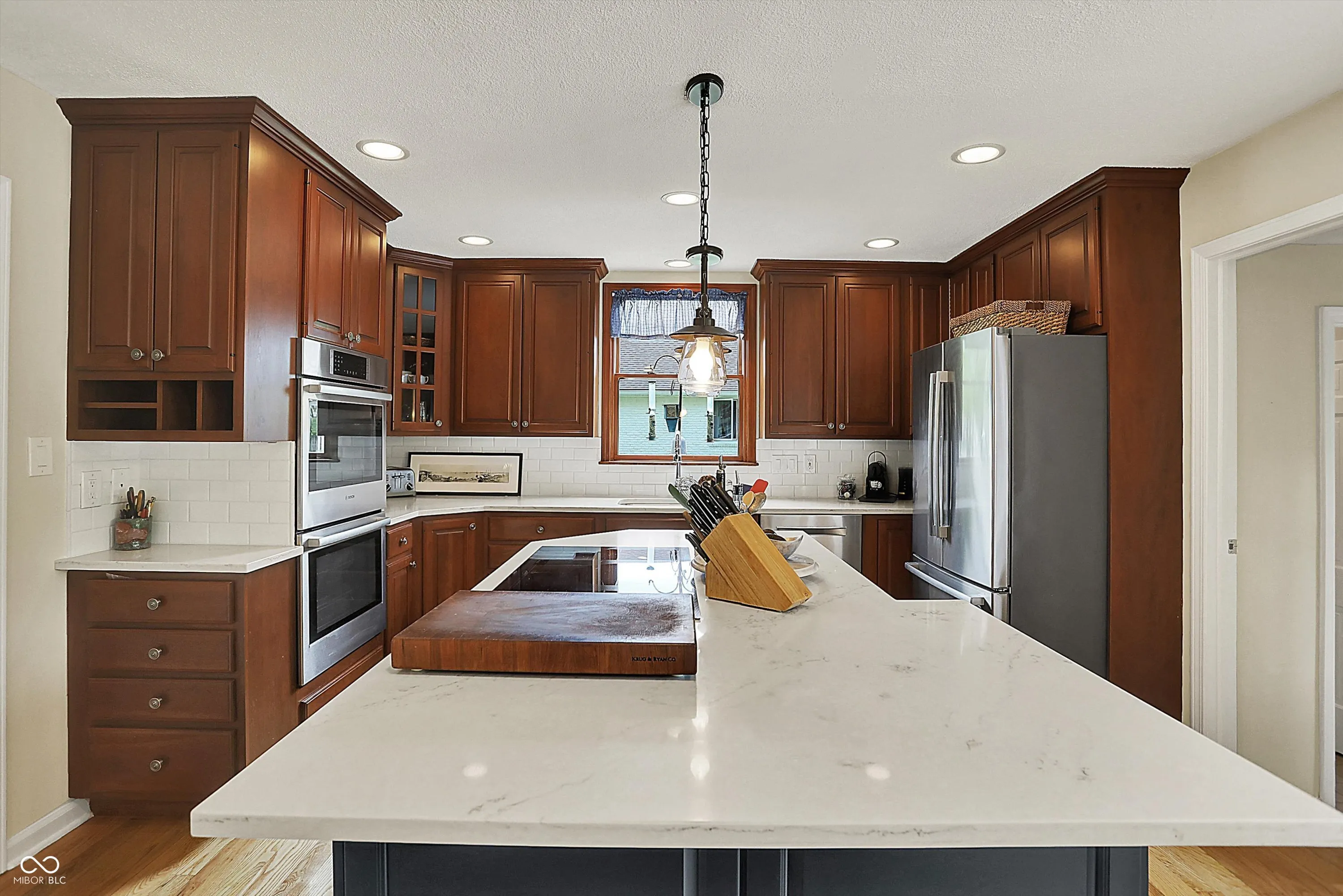 Tucked away on a quiet cul-de-sac on almost half an acre of wooded serenity, this beautifully- updated 4-bedroom, 2.5-bath Colonial offers the perfect blend of privacy, charm, and modern sophistication. -In addition, it’s in one of Zionsville’s most sought-after neighborhoods! Inside, you’ll find a thoughtfully designed layout with abundant natural light, and space for both relaxation and entertaining. The completely renovated kitchen is a chef’s dream, boasting a large granite island, induction cooktop, built-in double ovens, Bosch appliances, and tons of storage. The open floor plan flows seamlessly into the breakfast and family rooms, with built-in bookshelves and cozy fireplace. Sun-drenched windows overlook the panoramic views of the stunning backyard. It’s truly a masterclass of nature’s beauty. Formal living (currently used as an office) and dining rooms offer elegant touches, while the finished basement with a wet bar adds the perfect space for recreation or a home theater. Upstairs, the serene primary suite includes a fully remodeled spa-like bath and appointed walk-in closet. The outdoor living does not disappoint…step onto your large multi-tiered deck, overlooking a fire pit, raised bed garden, all surrounded by a vibrant wooded oasis, overlooking a private ravine with a gentle creek flowing through the property. Enjoy birds — Cardinals, Blue Jays, Finches, and more — filling the air with song. Walkable to all three Zionsville schools, the Big-4 Rail Trail, and just a short stroll to the Village. Take advantage of everything Zionsville has to offer while enjoying the serenity and beauty of living in this phenomenal home.