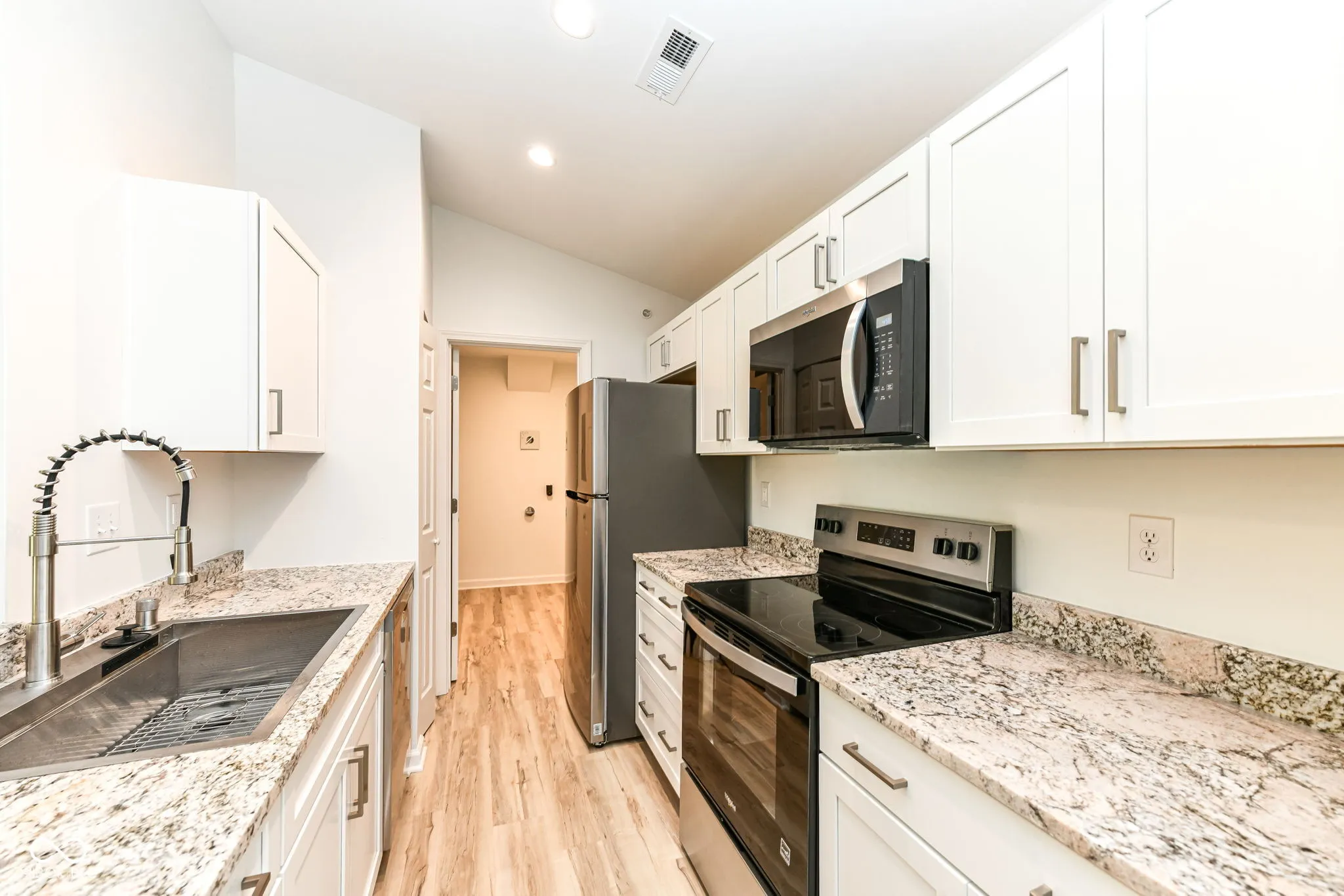 Just completed! The new units at Timber Creek are the least expensive new construction listed in Carmel for the last 5+ Years!! This highly desirable 3rd floor unit is a 2025 build with 2 bedroom/2 bathrooms, cathedral ceilings, fireplace, garage and a beautiful pond view. This home was just completed this month. Some of the features include white painted cabinets with granite counters throughout. Walk-in tiled shower w/glass door in primary bedroom, shower/tub combo in guest bathroom, large walk in closets in both bedrooms and light luxury vinyl plank flooring throughout. Appliances include stainless-steel refrigerator, s/s microwave, s/s electric stove, s/s dishwasher. Everything is warrantied. This community features a community pool, clubhouse with small gym, has very low monthly HOA fees and is located near the Monon and only a bike ride away from Midtown, the Palladium and the Arts district. This unit comes with a builder’s warranty, and everything in the unit is new and warranted (including the HVAC, water heater, windows and all appliances). Unlike the older units in both the Timber Creek and Lennox Trace communities–these new units ARE NOT PLUMBED with problematic polybutylene plumbing but are plumbed with new, much more desirable pex lines. They additionally feature a fire sprinkler/suppression system in all units.