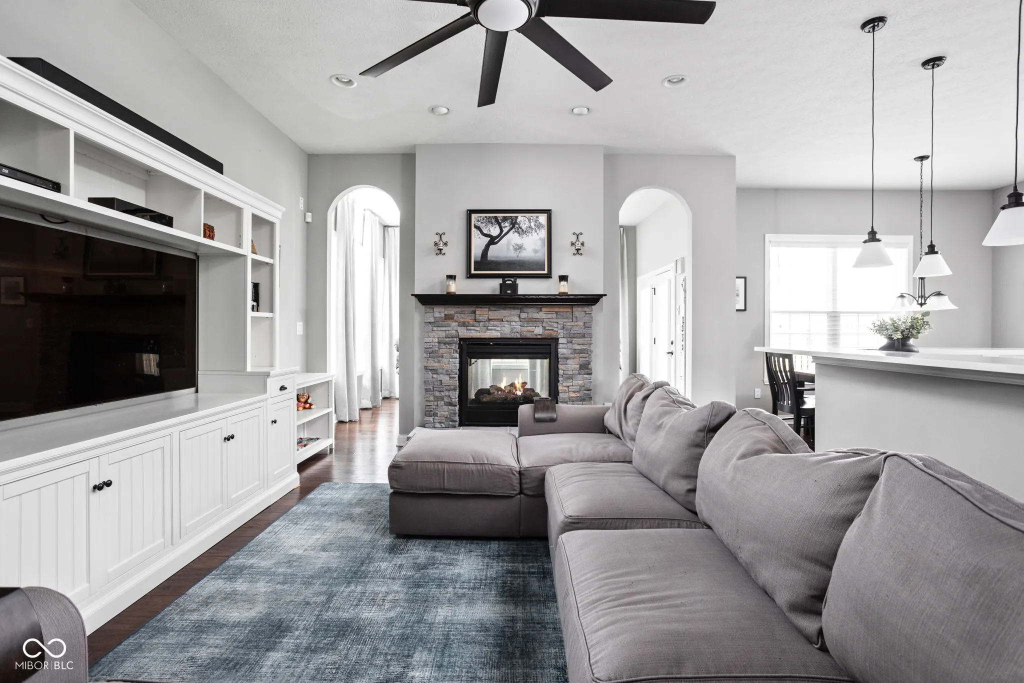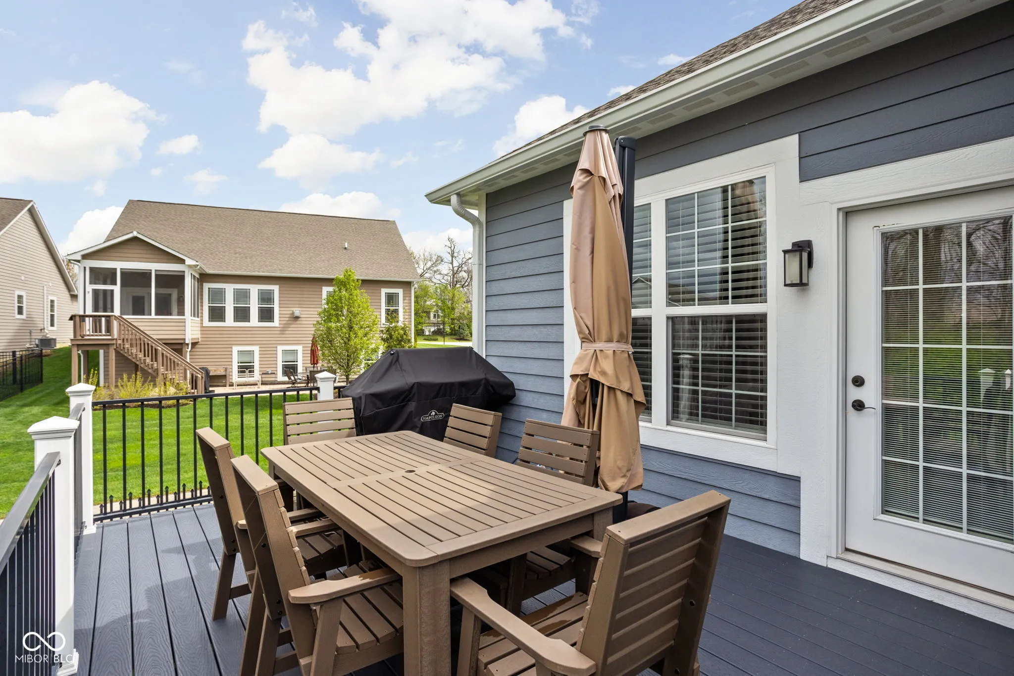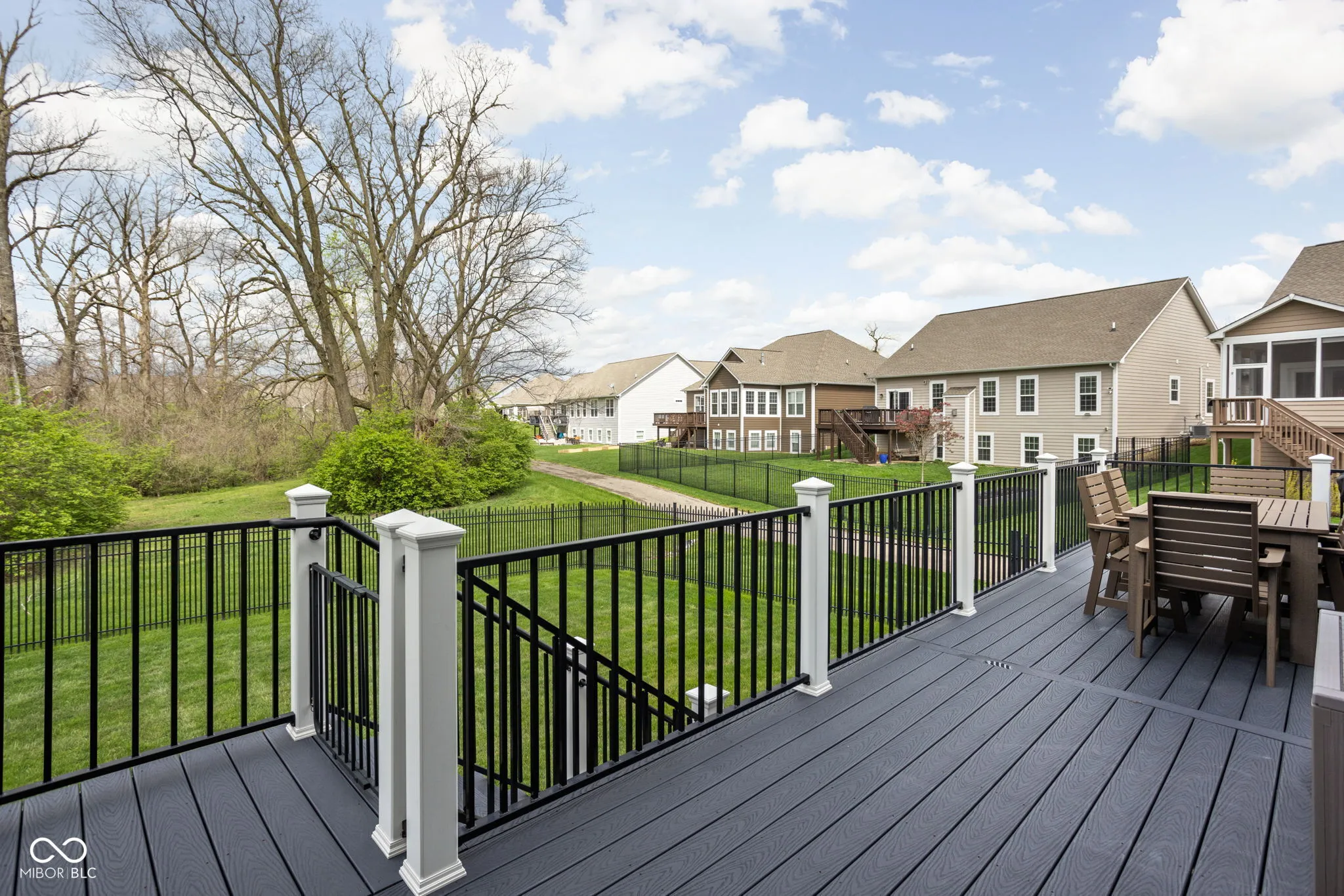 Welcome to this stunning 4-bedroom, 3-bath ranch-style home in Woods at Traders Point. Built in 2016 with only one owner, this former model home offers high-end finishes and thoughtful enhancements throughout. The main level features an open-concept layout with soaring ceilings and spacious living areas. The double-sided fireplace creates a cozy focal point, perfectly framed by tree-lined views through the floor-to-ceiling windows provided in the sun room. The gourmet kitchen features quartz countertops, upgraded cabinetry and modern appliances, which seamlessly flows into additional living spaces. The private primary suite offers a serene retreat with custom walk-in shower and generous closet space. The impressive finished basement is thoughtfully designed for both comfort and entertainment, featuring a full second kitchen, expansive daylight windows, and a spacious open layout perfect for hosting gatherings. A private fourth bedroom and full bath make it an exceptional experience for guests or multi-generational living. Step outside to the fully fenced backyard with all-weather decking, upgraded landscaping, an irrigation system, and direct access to a scenic neighborhood walking path. This home truly has it all – style, space, and functionality in one perfect package. Excellent neighborhood community in convenient location. A must see!