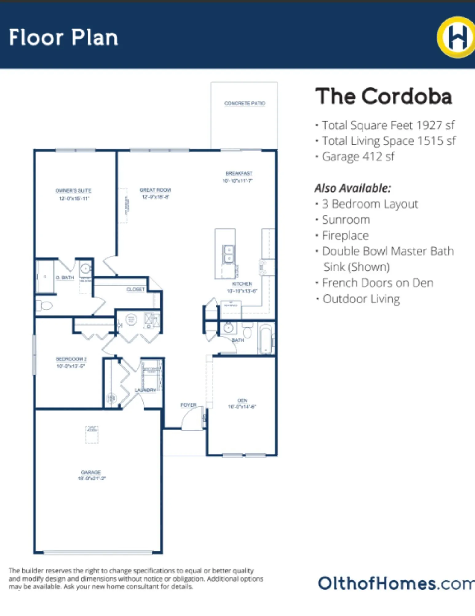 Olthof Homes presents the Cordoba. Step into comfort and style with this beautifully designed 1615 sf paired villa featuring an open-concept layout perfect for entertaining and everyday living. This spacious 3-bedroom, 2-bathroom home offers a seamless flow from the living room to the kitchen and dining areas, enhanced by abundant natural light. Enjoy year-round relaxation in the bright and airy sunroom, and unwind in your private backyard – ideal for peaceful evenings. Spacious layout combines comfort and style in a low-maintenance setting. Upgrades in the home: Maple Painted Iceberg Cabinets with Quartz Countertops, Attached 2 Car Garage, Sunroom, 3rd Bedroom, Spacious Primary Bathroom with walk-in closet. Home is incorporated by City of Westfield, address in Sheridan.