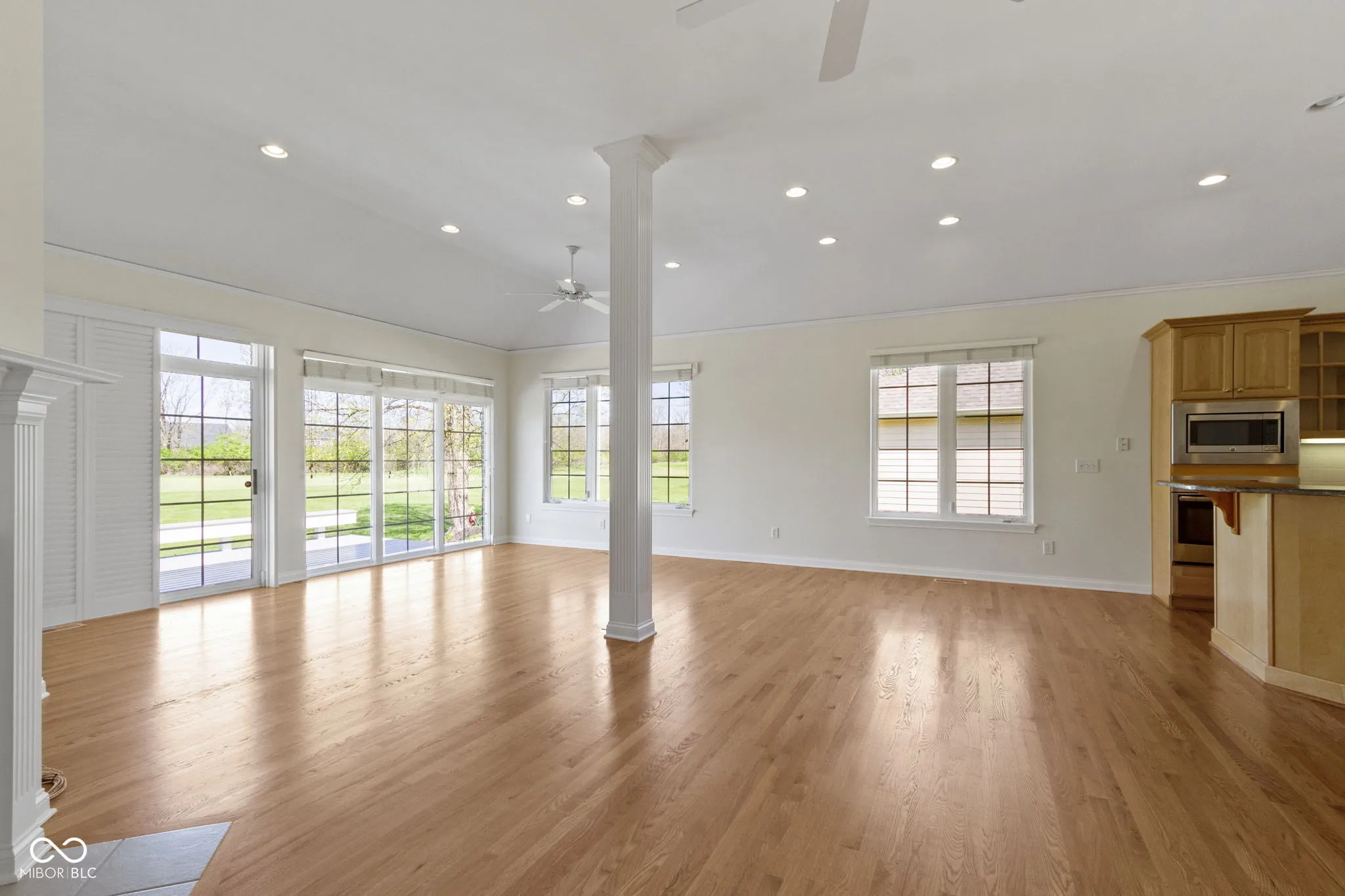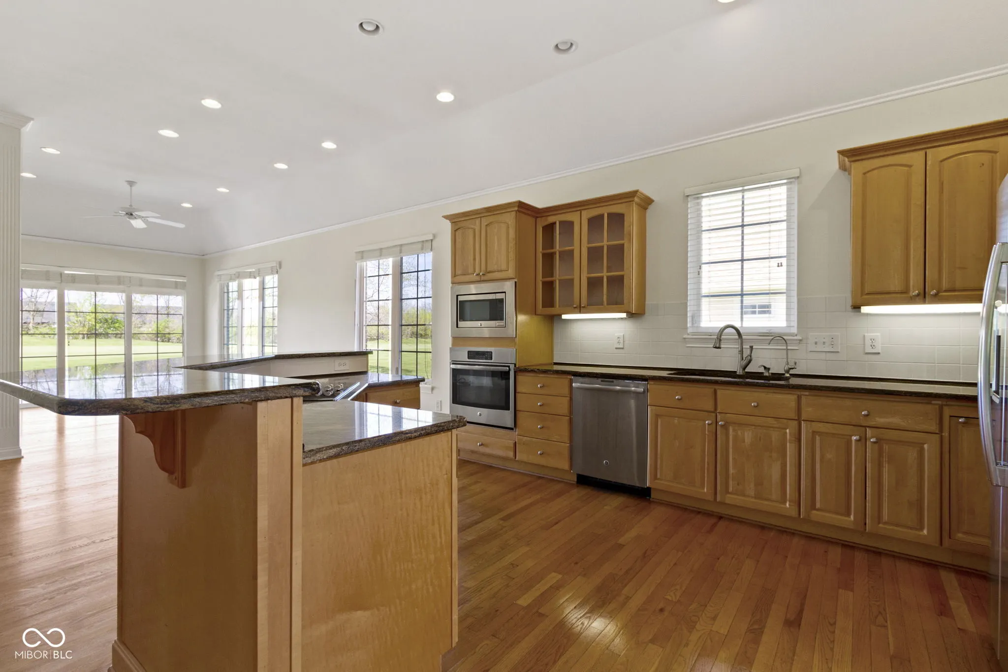 Spacious 1.5 level home on Ironwood Golf Course with a view that is like no other! Open floor plan for entertaining and family gatherings! Great room with 11′ ceiling, built-in bookcases, gas fireplace, hardwood floors and a wall of windows to enjoy the view of the course! Gourmet eat-in kitchen with island/breakfast bar, light maple cabinets, granite counters, tile backsplash, recessed lighting and stainless steel appliances! Formal dining room! Main level primary bedroom with vaulted ceiling, step in glass block shower, soaking tub and walk-in closet designed with double hangings and built-in shelving! Large multi-purpose 27×14 room upstairs with full bath that could serve as private guest quarters! Finished basement with family/rec room, plenty of space for watching the big games and relaxing! 20×12 room that could be used for workshop or hobby room! Interior of the home was just professionally painted and new plush carpet on the main and upper levels! A golf course view like this is rare, and this is the one you have dreamt about! Come see it today!