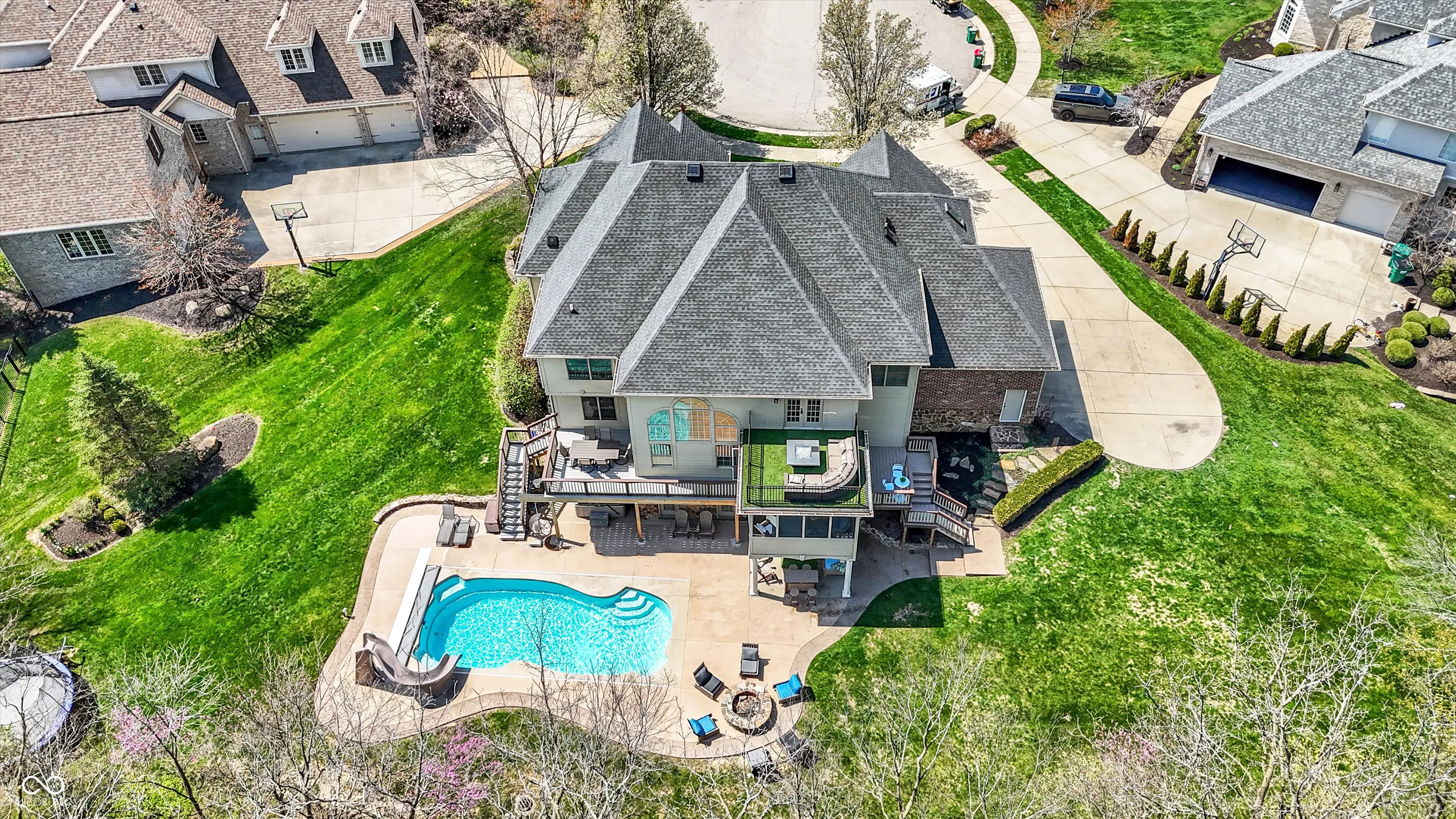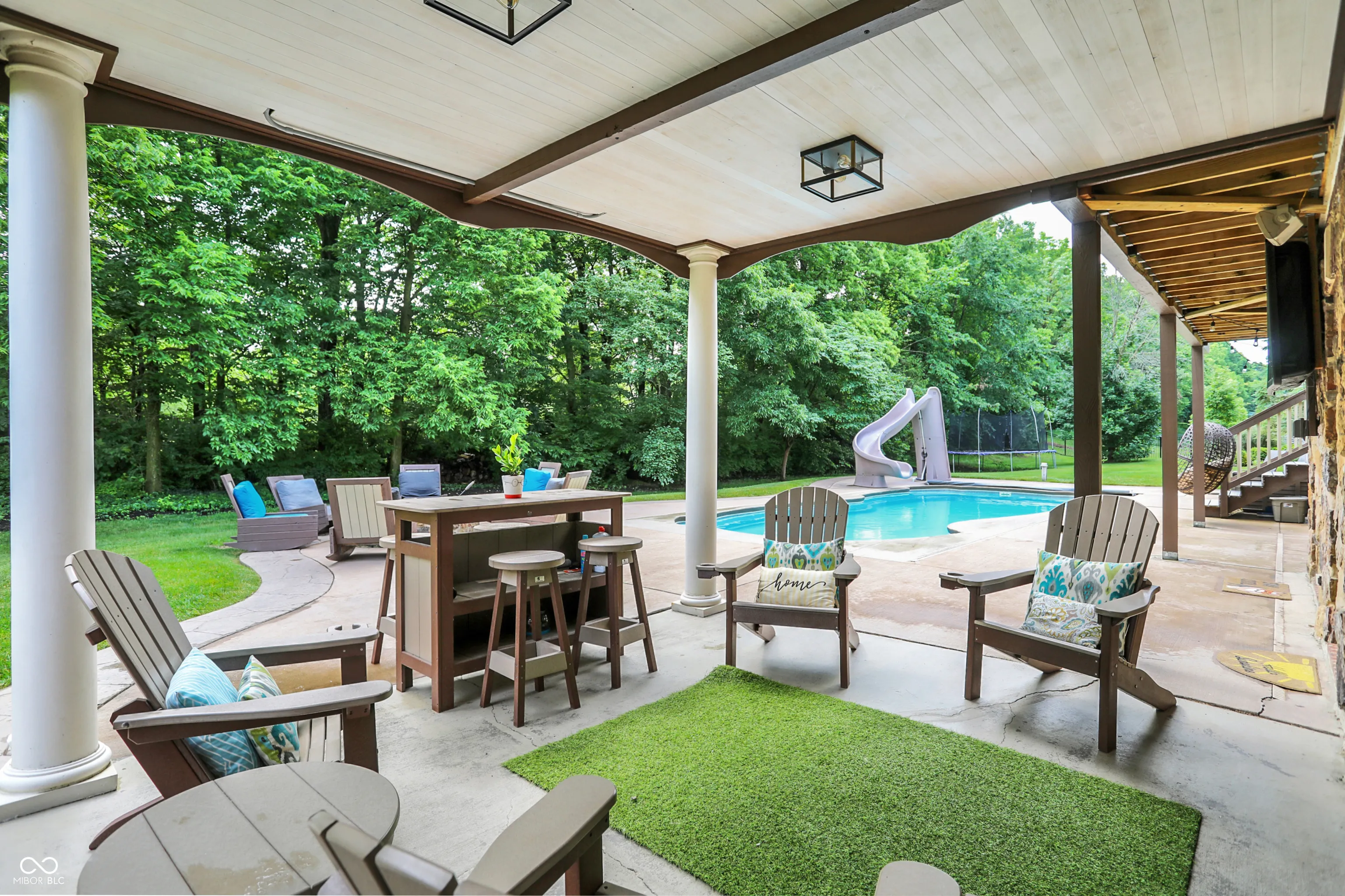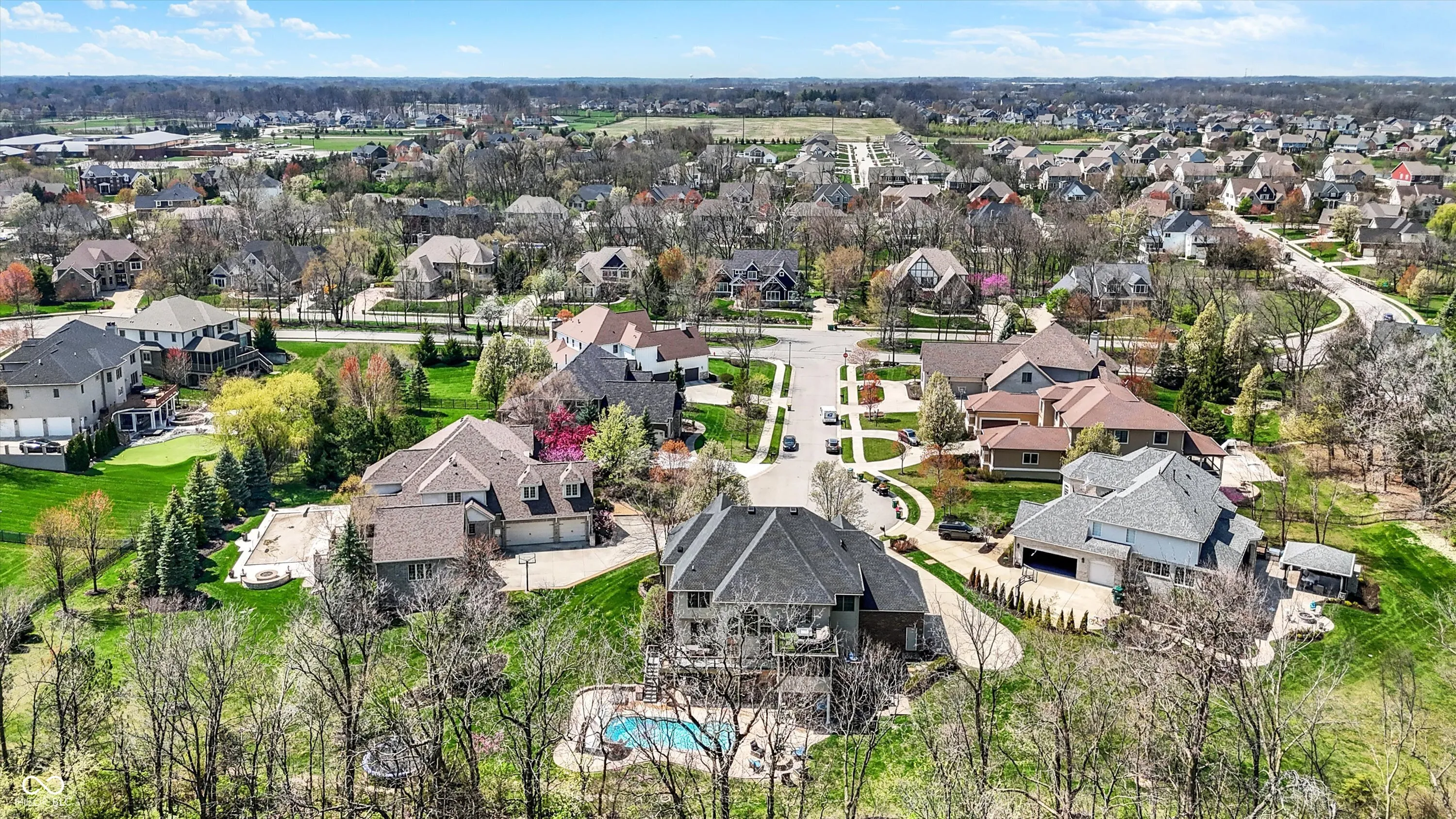 Stunning 5BR/4.5BA home on a cul-de-sac lot in Westfield-Washington Schools with over 5,500 finished SqFt. Features include a 2-story great room, formal living & dining rooms, updated kitchen with center island, and upstairs laundry. Walkout basement offers custom bar area, pool table zone with wainscoting, and a high-end theatre room with 120″ screen and recessed lighting. Primary suite features private balcony, sitting area, shiplap fireplace wall, and spa-like bath. Recent updates: new geothermal HVAC (2024), new deck with walkway to pool (2023), new pool pump, updated sun porch, and more. Outdoor living includes screened porch, fire pit, gas grill, in-ground pool, and professionally mounted outdoor TV. 3-car finished garage. Community amenities include clubhouse, sidewalks, and mature trees. A rare opportunity for luxury, comfort, and space in one of Westfield’s premier neighborhoods.
