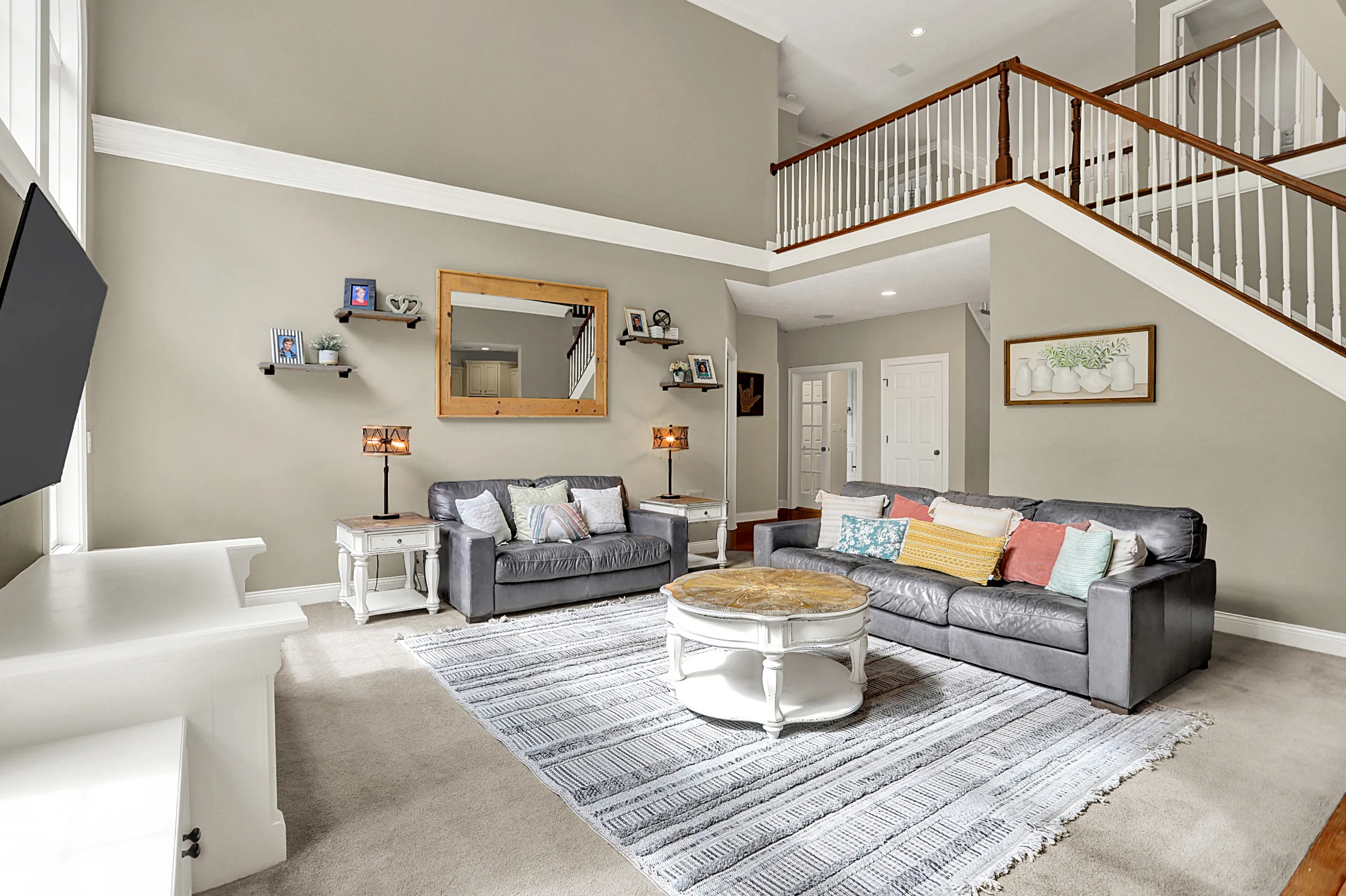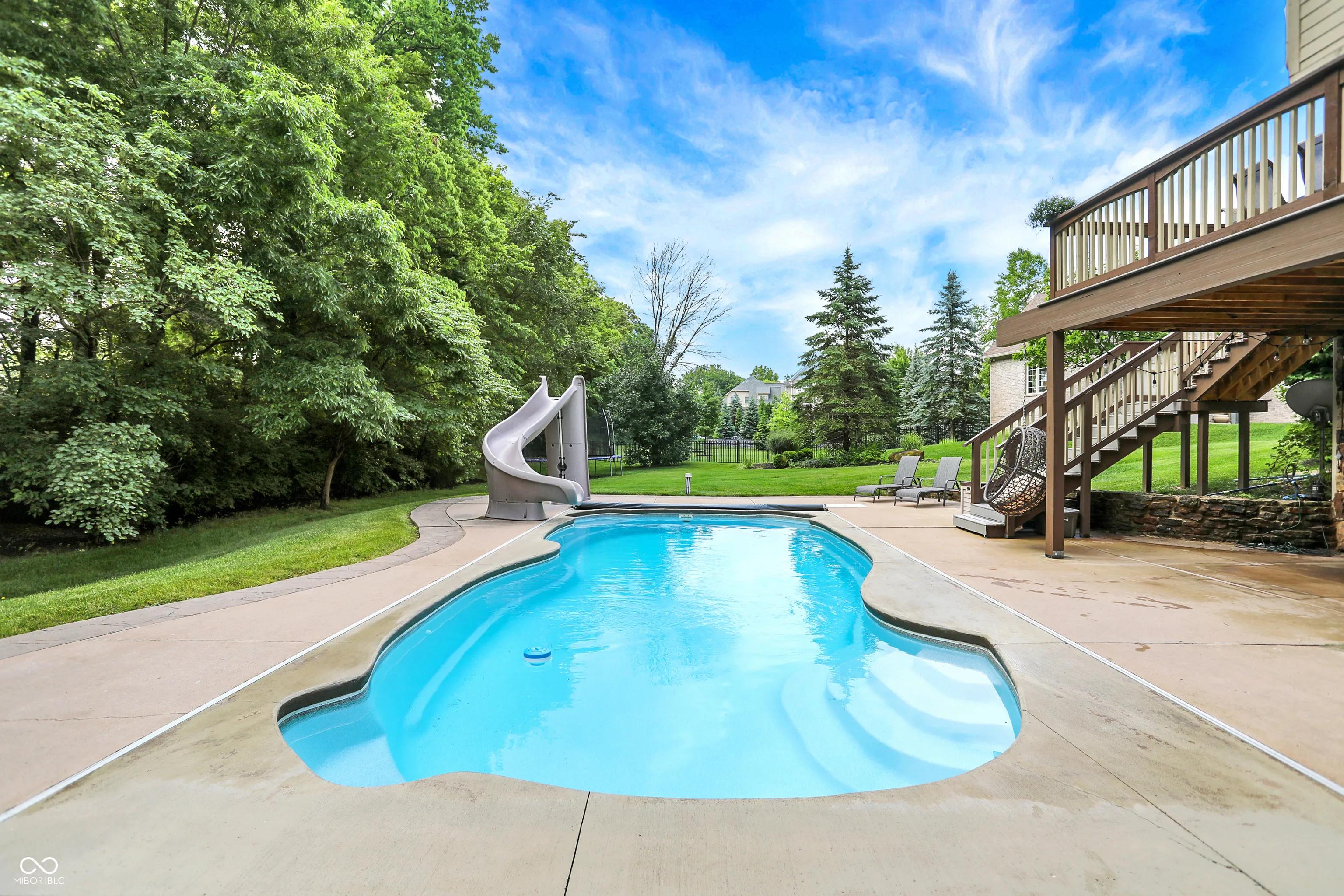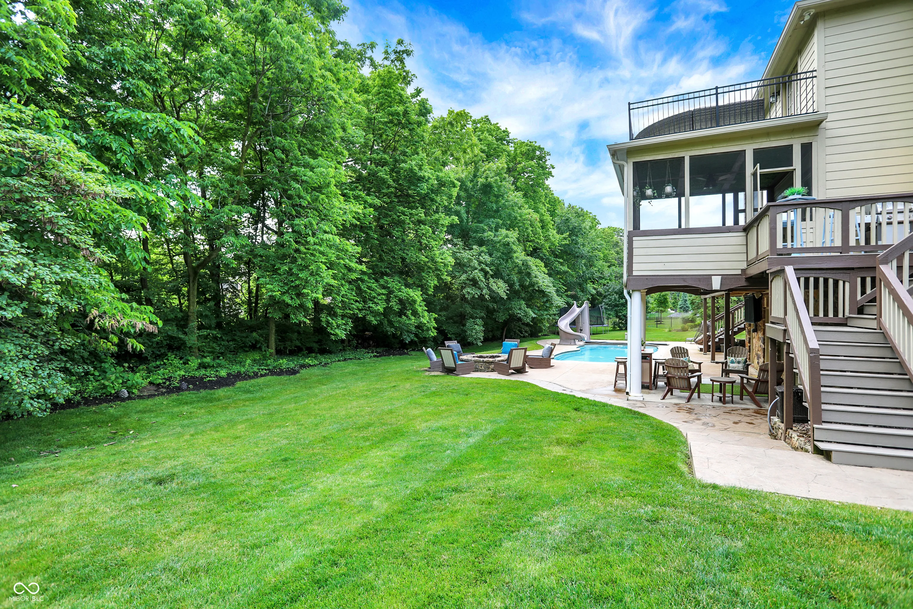 Stunning 5BR/4.5BA home on a cul-de-sac lot in Westfield-Washington Schools with over 5,500 finished SqFt. Features include a 2-story great room, formal living & dining rooms, updated kitchen with center island, and upstairs laundry. Walkout basement offers custom bar area, pool table zone with wainscoting, and a high-end theatre room with 120″ screen and recessed lighting. Primary suite features private balcony, sitting area, shiplap fireplace wall, and spa-like bath. Recent updates: new geothermal HVAC (2024), new deck with walkway to pool (2023), new pool pump, updated sun porch, and more. Outdoor living includes screened porch, fire pit, gas grill, in-ground pool, and professionally mounted outdoor TV. 3-car finished garage. Community amenities include clubhouse, sidewalks, and mature trees. A rare opportunity for luxury, comfort, and space in one of Westfield’s premier neighborhoods.
