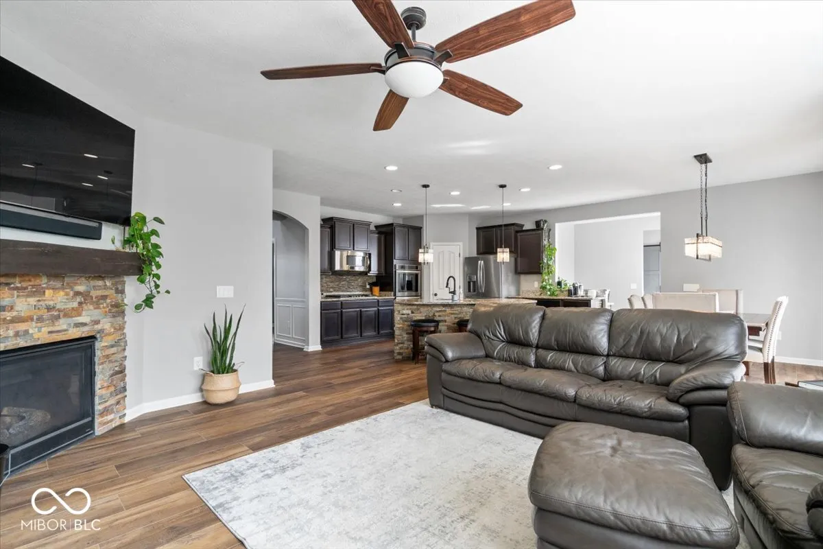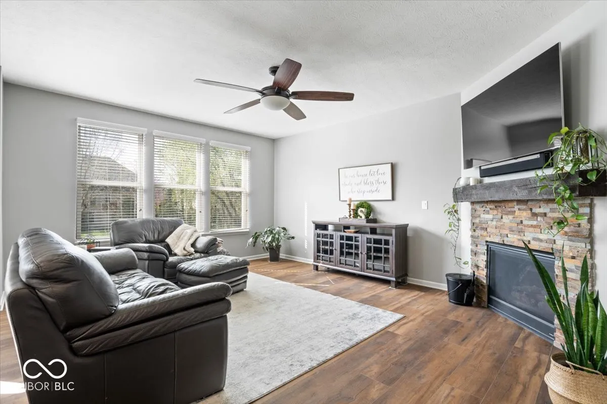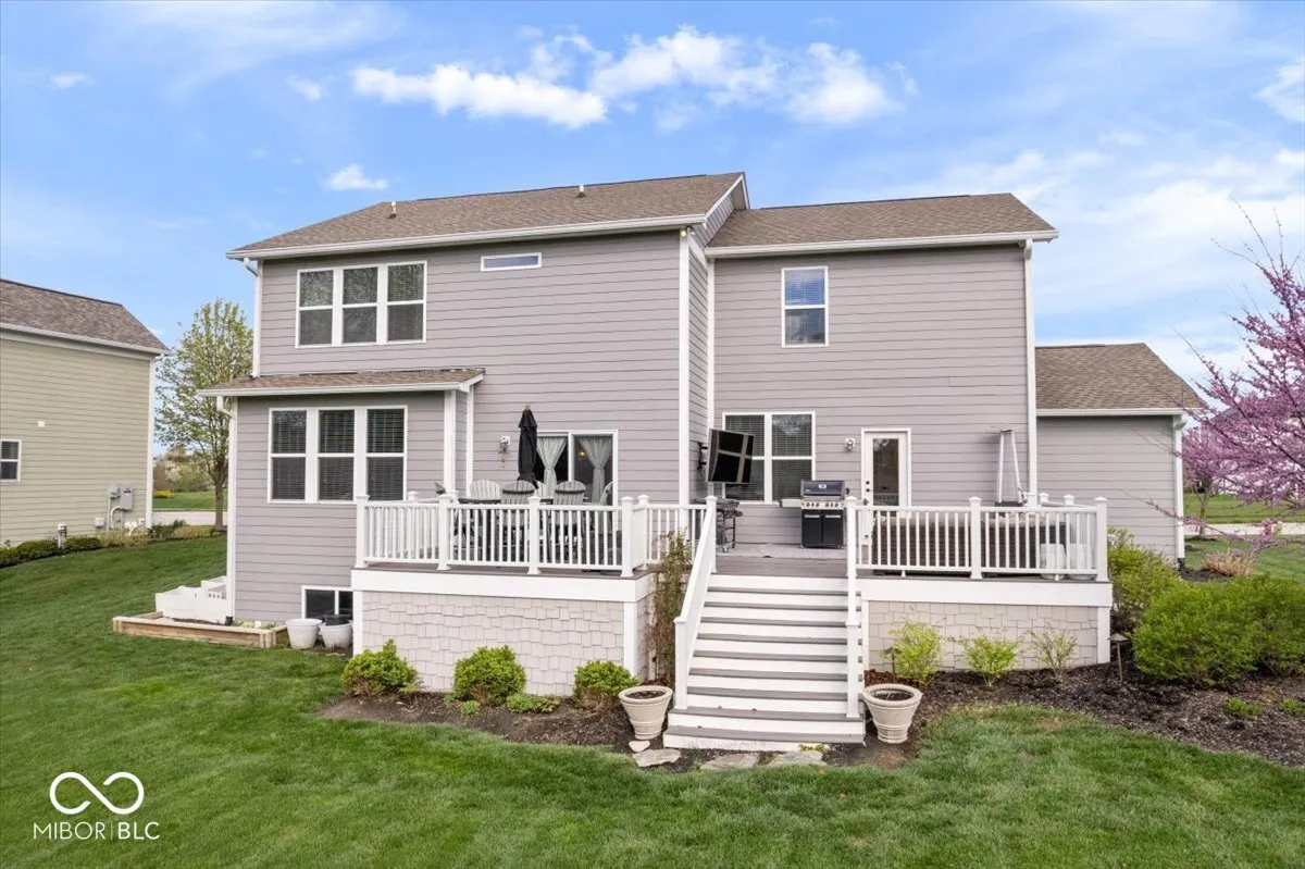 Nestled on one of the best lots in the highly desirable Viking Meadows neighborhood, this beautifully updated 4 bed, 3.5 bath home offers a rare combination of privacy, space, & thoughtful design. Located on a quiet cul-de-sac, this .37 acre lot backs up to open green space & mature trees w professional landscaping, a large composite deck, & a welcoming covered front porch – perfect for relaxing or entertaining outdoors. Inside, the home features a functional & flexible layout w high-end updates throughout. New luxury vinyl plank flooring flows through the main level & staircase, complemented w fresh paint & modern light fixtures. The main floor includes a private office w French doors, a spacious open-concept living room w a stone fireplace, & chef’s kitchen with granite countertops, gas cooktop, double ovens, & a large island perfect for gathering. Just off the three-car garage entry, is a custom bench with coat hooks & built-in desk nook that works well as a drop zone or workspace. Upstairs, all four bedrooms include walk-in closets, pairing perfectly with the upper laundry room and a loft with built-ins offering the perfect flex space for a second living area, playroom, or home office. The primary suite features a beautifully updated bathroom, while the three additional bedrooms and full bath are thoughtfully situated into their own separate area for added privacy & functionality. The finished basement is built for entertaining, w daylight windows, an open recreational space, a full bath, & storage. Additional updates include a new water heater, water softener, updated faucets and door hardware (’24), roof & exterior paint (’19), and built-in audio speakers throughout the home (’17). Viking Meadows is known for its amenities, including a clubhouse w basketball, tennis, a game room, gym, event space, pool, & playground – plus direct access to the Monon Trail.