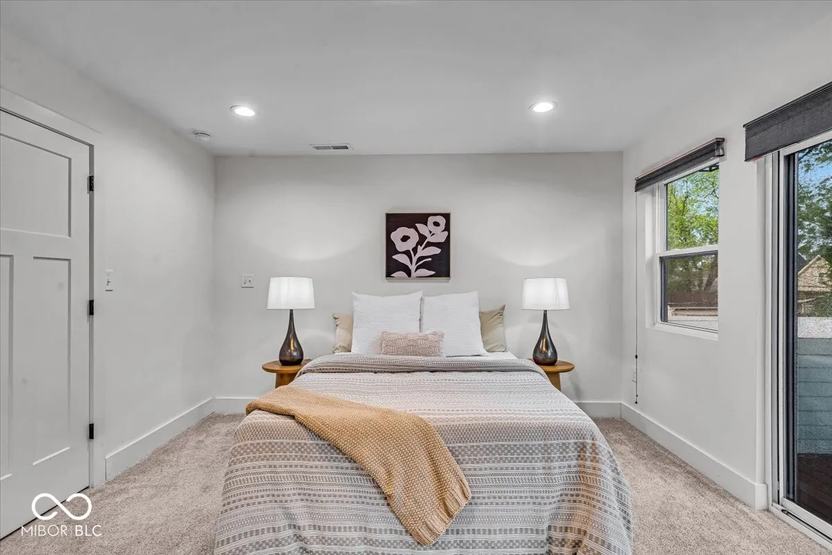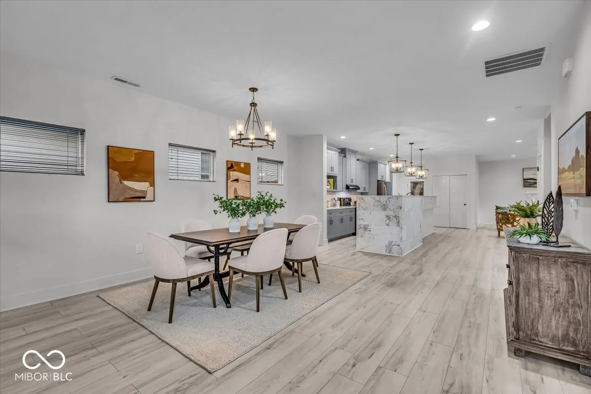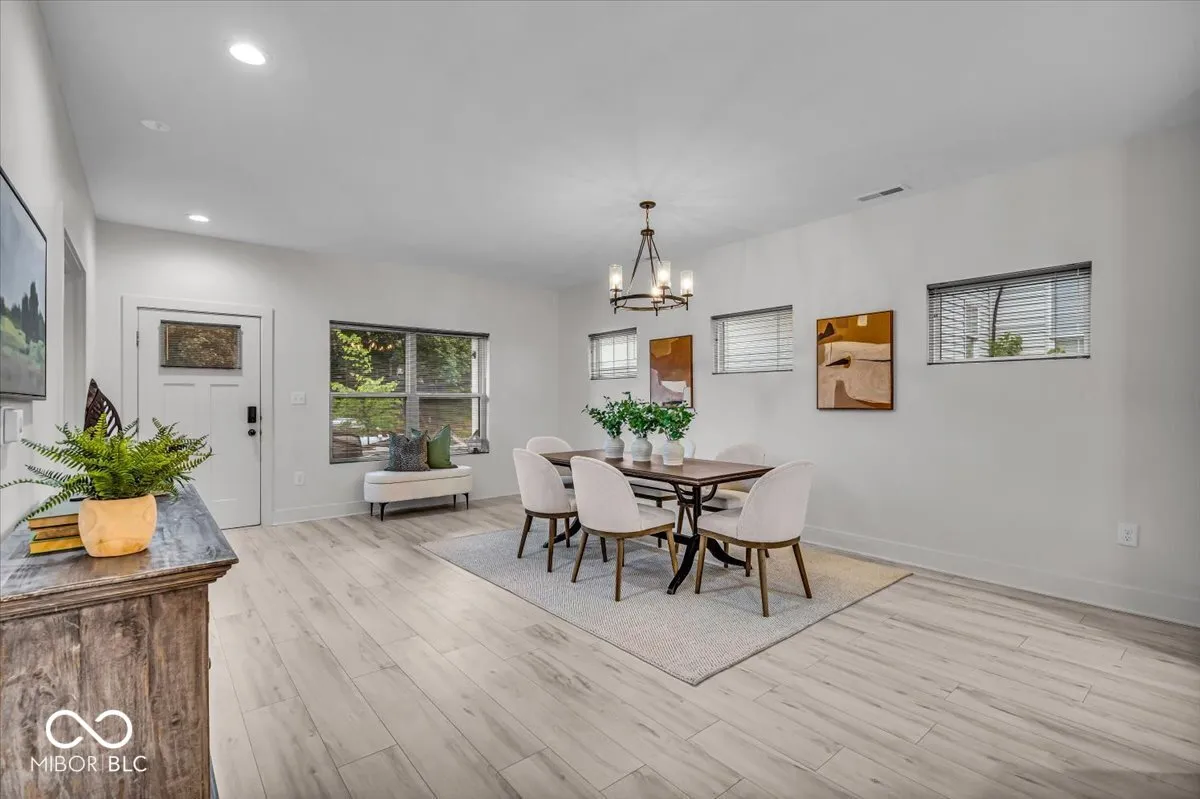 Experience contemporary living in this newer construction 3-bedroom, 3 full bath home located in the vibrant Bates Hendricks neighborhood. Designed with comfort and style in mind, the open-concept main level features a spacious living area with an electric fireplace and abundant natural light seamlessly flowing into a sleek, modern kitchen complete with ample cabinetry, tiled backsplash, and stainless-steel appliances. A rare main-level bedroom with a full bath offers flexible living options, while upstairs, the primary suite impresses with a large walk-in closet and direct access to a private upper-level deck perfect for relaxing evenings. Both upper-level bathrooms feature skylights, walk-in showers, and high-end finishes, creating bright and spa-like spaces. Enjoy the ease of a two-car finished attached garage, energy-efficient tankless gas water heater, and high-efficiency gas furnace. Exterior highlights include durable cement board siding, a private patio, and the elevated deck for added outdoor enjoyment. Situated just minutes from downtown Indianapolis, this home offers unbeatable access to a variety of entertainment options, local parks, and a thriving dining scene-everything you need for an active and connected lifestyle.