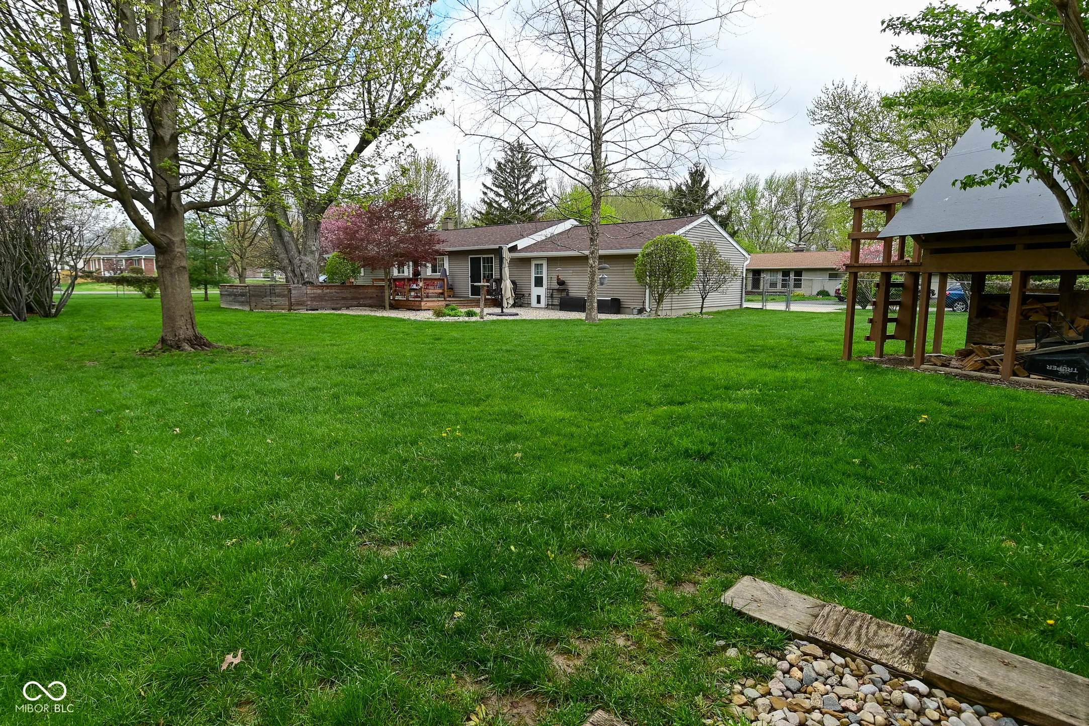 Welcome to this beautifully maintained and thoughtfully updated 3-bedroom, 1-bath ranch home! Situated just moments from the Monon Trail, shopping, and dining, this light-filled gem offers the perfect blend of comfort, convenience, and functionality. Step inside to discover a bright and inviting living room that flows into a cozy dining area and an efficient galley kitchen-perfect for everyday living and entertaining. The spacious laundry room offers ample storage, making organization a breeze. The versatile third bedroom can easily serve as a home office or den, providing flexibility to fit your lifestyle. Out back, enjoy your private outdoor oasis featuring a large fenced-in yard with two double gates and two single gates for easy access. Relax or entertain on the expansive deck, roast marshmallows around the fire pit, or let your imagination run wild in the whimsical playhouse/fort. A convenient storage shed keeps outdoor tools and toys neatly tucked away. Additional highlights include prewiring for a generator and tasteful updates throughout. Whether you’re looking for your first home or a place to simplify, this charming ranch has it all. Updates include: New Water Heater (2023), New Roof (2022), Driveway, Front Porch, and Garage Floor redone (2015), Reverse Osmosis installed at Kitchen Sink (2020)(New Filter 8/2024 and service through Elgin Water Care). Owner willing to sell plenty of the furnishings, the lawn mower, and generator.