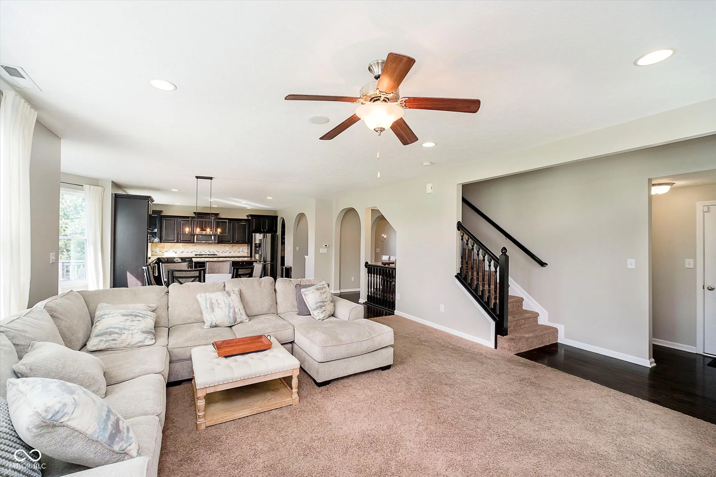 Welcome to 5196 E County Road 100 S, Avon, IN – a magnificent 5-bedroom, 4.5-bathroom former model home nestled on a coveted golf course lot within the sought-after Parks at Prestwick neighborhood. Built in 2013 by Beazer Homes (Providence floor plan), this residence offers an array of upgrades and extras designed for luxurious living and effortless entertaining. From the moment you enter the expansive foyer, you’ll appreciate the thoughtful design. A private home office with French doors and a formal dining room flank the entrance, leading to an open-concept main living area bathed in natural light. The gourmet chef’s kitchen is a culinary delight, featuring ample custom cabinetry, extensive granite countertops, stainless steel appliances (including double ovens and a gas cooktop), an oversized center island, and a convenient butler’s pantry. The adjacent large eat-in breakfast room, with its charming bay window overlooking the lush backyard, flows seamlessly into the inviting great room with a cozy gas fireplace. Upstairs, a versatile loft area awaits, along with a convenient laundry room, four generously sized bedrooms, and three full bathrooms, including a Jack-and-Jill setup. The spacious primary suite is a true retreat, boasting a sophisticated trey ceiling, double vanities, a relaxing garden tub, a separate tiled shower, and an impressively large walk-in closet. The finished basement adds incredible living space, featuring a beautifully appointed wet bar (complete with under-cabinet fridge), a comfortable 5th bedroom, a full bathroom, a fantastic TV and recreation room, and a dedicated exercise area. Outside, enjoy professional landscaping with an irrigation system and built-in rock speakers, perfect for outdoor enjoyment. The home also features a 3-car side load garage and a fenced backyard for privacy. Situated across the street from the community pool and park/playground, convenience is key. Owner hates to sell, but is moving closer to his new family!