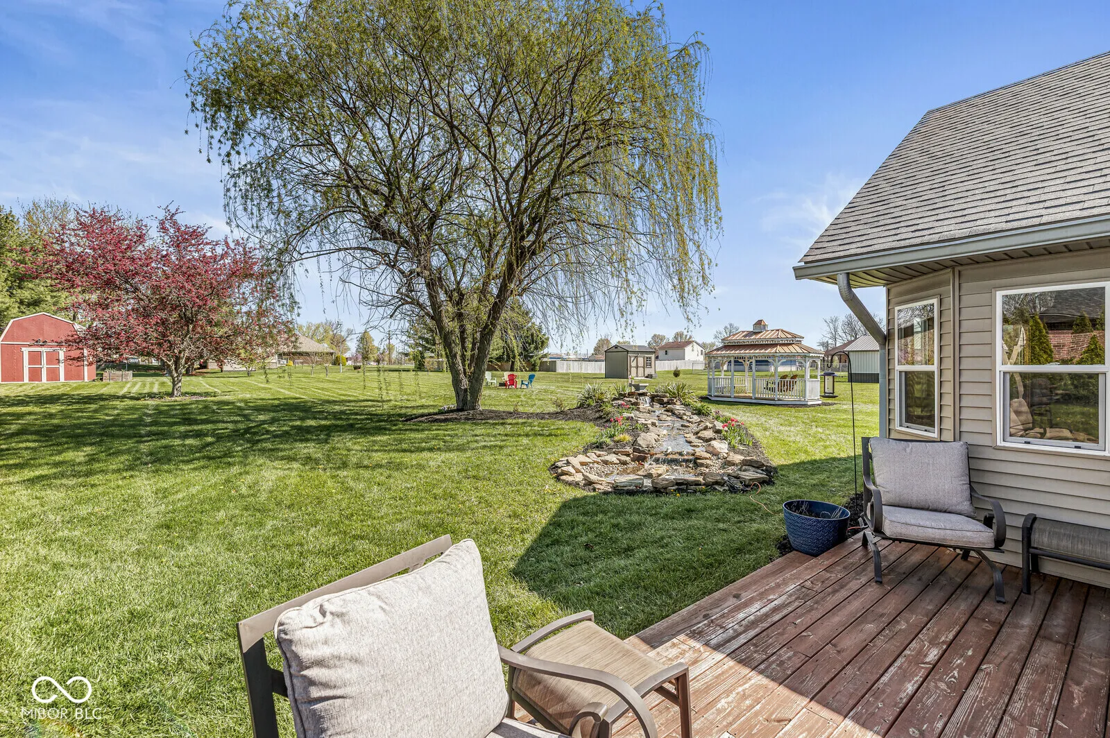 SERENE SETTING! Updated all-brick ranch with vaulted ceilings and large windows that let in natural light. The updated kitchen, featuring granite countertops and a built-in oven, along with ample cabinets, flows seamlessly into the dining room for easy entertaining. The dining room flows to the sunroom, where you can enjoy your cup of coffee overlooking the babbling brook or make your way to the Amish-built gazebo.