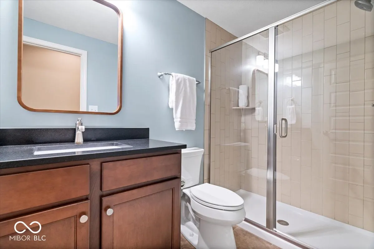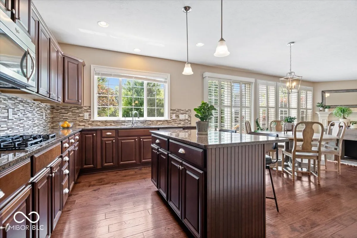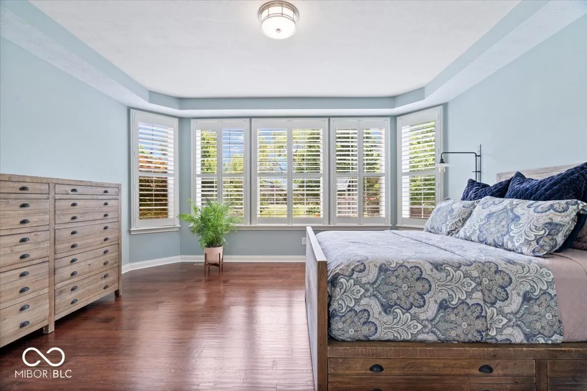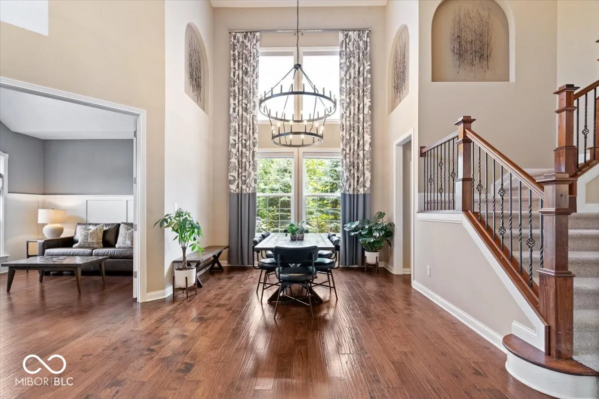 Elegant West Carmel residence situated on a beautifully landscaped corner lot. The main level features both a spacious primary suite and a private guest suite, ideal for multigenerational living. Rich hardwood floors run throughout the first floor, complementing the grand entry with soaring ceilings and an abundance of natural light. The upper level offers three additional bedrooms and a versatile loft space. The expansive lower level is designed for entertaining, with a large game area, media zone, additional guest room, and full bath. Enjoy outdoor living on the paver patio overlooking the yard. Neighborhood amenities include a community pool.