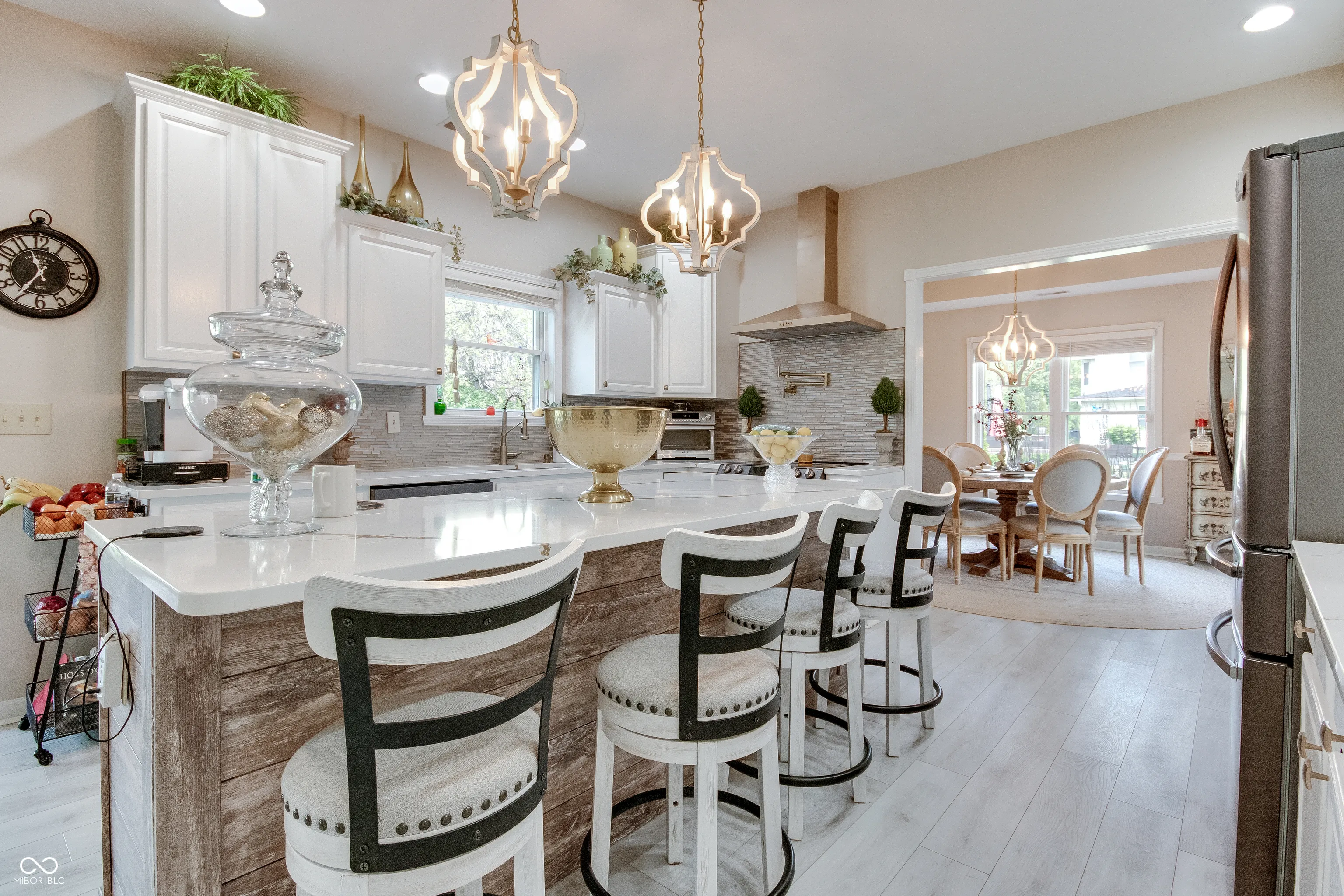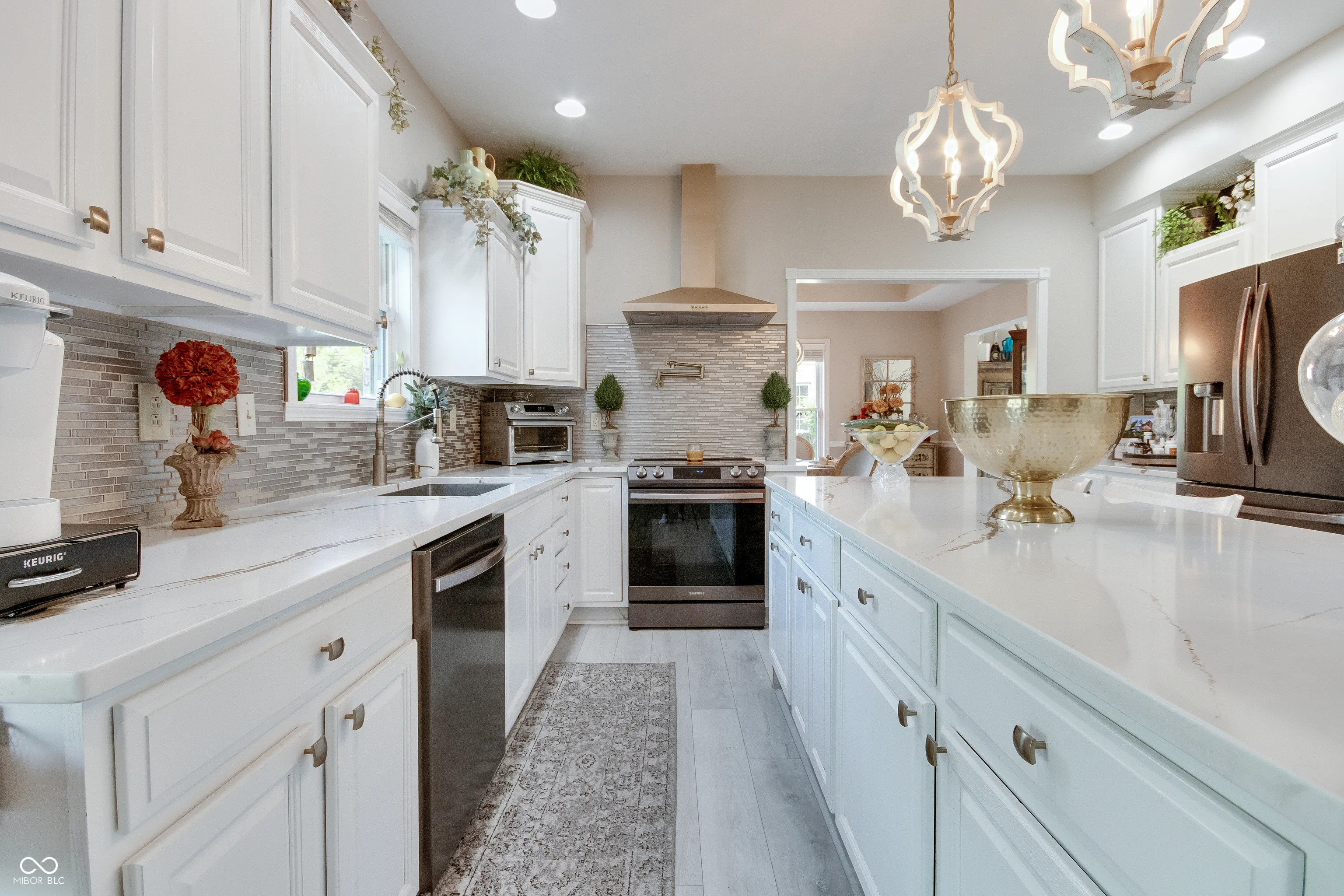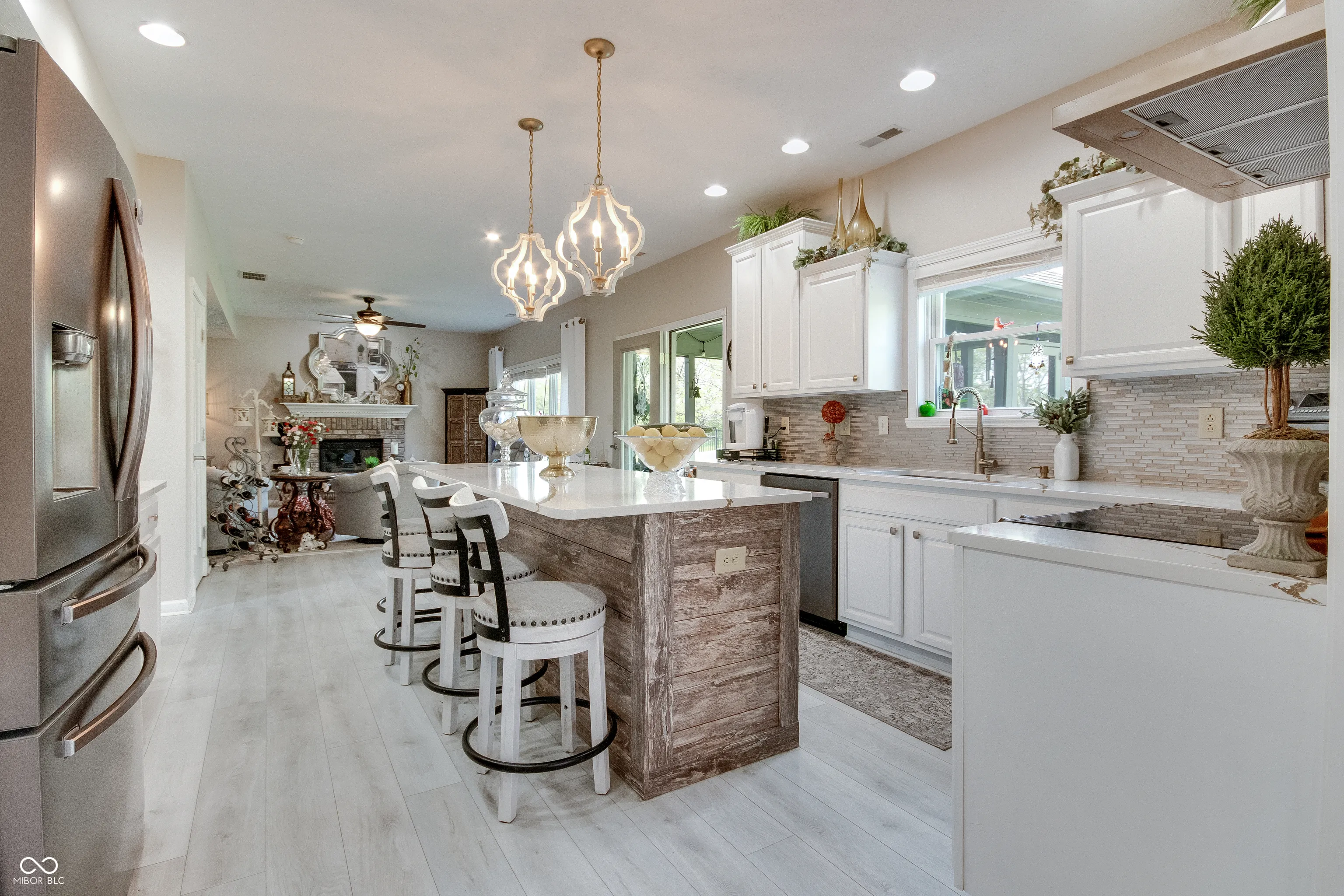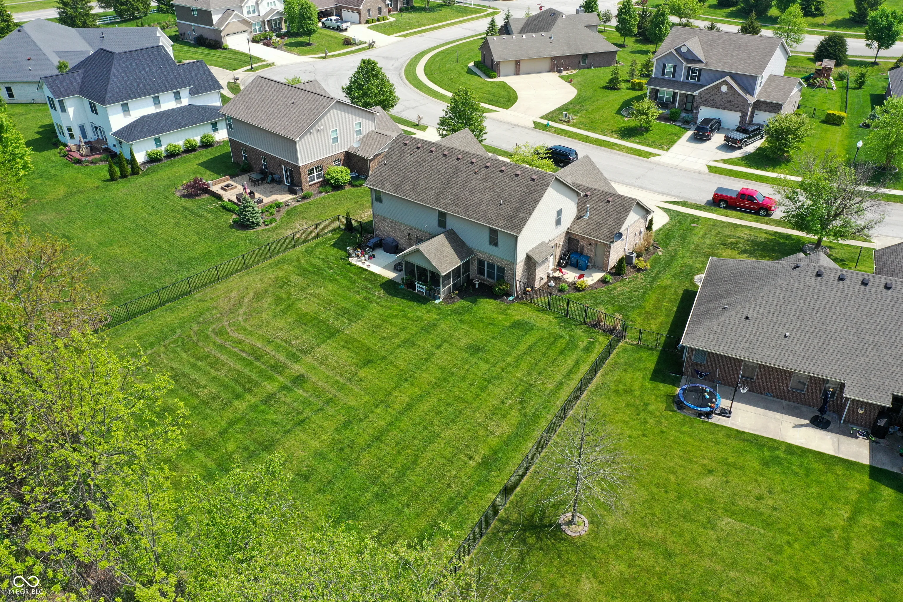 This stunning custom-built home is fully updated and move-in ready. A grand entry with designer lighting leads to an oversized kitchen featuring quartz countertops, gold accents, high-end appliances, and two pantries, including a walk-in. The kitchen opens to a spacious screened-in patio, perfect for seamless indoor/outdoor entertaining. The cozy family room with a gas fireplace connects to the elegant dining and living areas, creating a warm and inviting flow. Upstairs, all bedrooms are generously sized with oversized closets and views of the beautifully landscaped backyard. The large, fully fenced yard backs to a wooded area and features a 5-foot black metal fence with three access gates. This home blends luxury, functionality, and comfort in every detail.