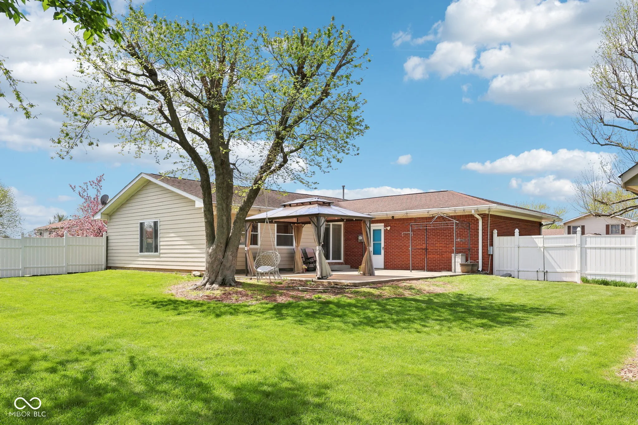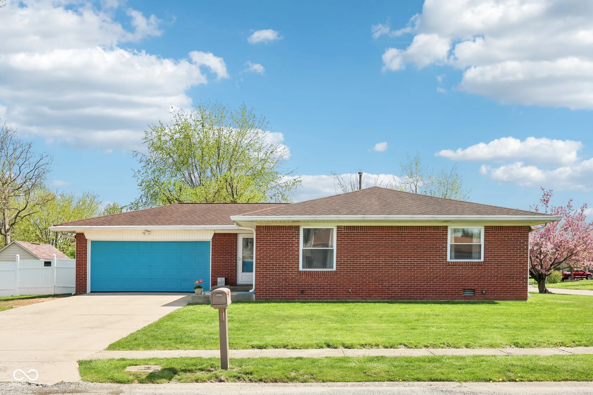 Check out this well maintained, beautifully updated brick and cement composition siding ranch home that effortlessly blends style and comfort. Located on a corner lot in the Farhill Downs subdivision in Franklin Township, this home is minutes away from groceries, shopping and I465 interstate access. Once you step inside this recently updated, 3 bedroom, 2 full bath home you’re greeted with fresh paint and durable vinyl plank flooring giving the home a clean and modern feel. The kitchen is a true showstopper with sleek quartz countertops with a breakfast bar, stainless steel appliances, and plenty of cabinet space for all your culinary needs. The massive great room featuring soaring cathedral ceilings and tons of large windows providing natural light is perfect for entertaining or cozy nights in. Outside, enjoy your own private retreat in the fully fenced backyard-complete with an oversized patio, gazebo, fire pit, and a large mini barn for extra storage. Whether you’re hosting guests or relaxing under the stars, this space is ready for year-round enjoyment. The attached garage features pristine epoxy floors and adds even more functionality to this already impressive home. Don’t miss your chance to own -schedule your showing today!