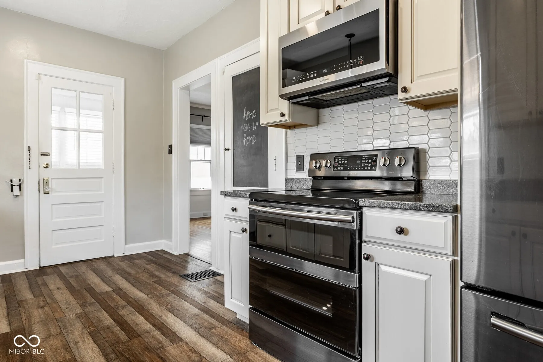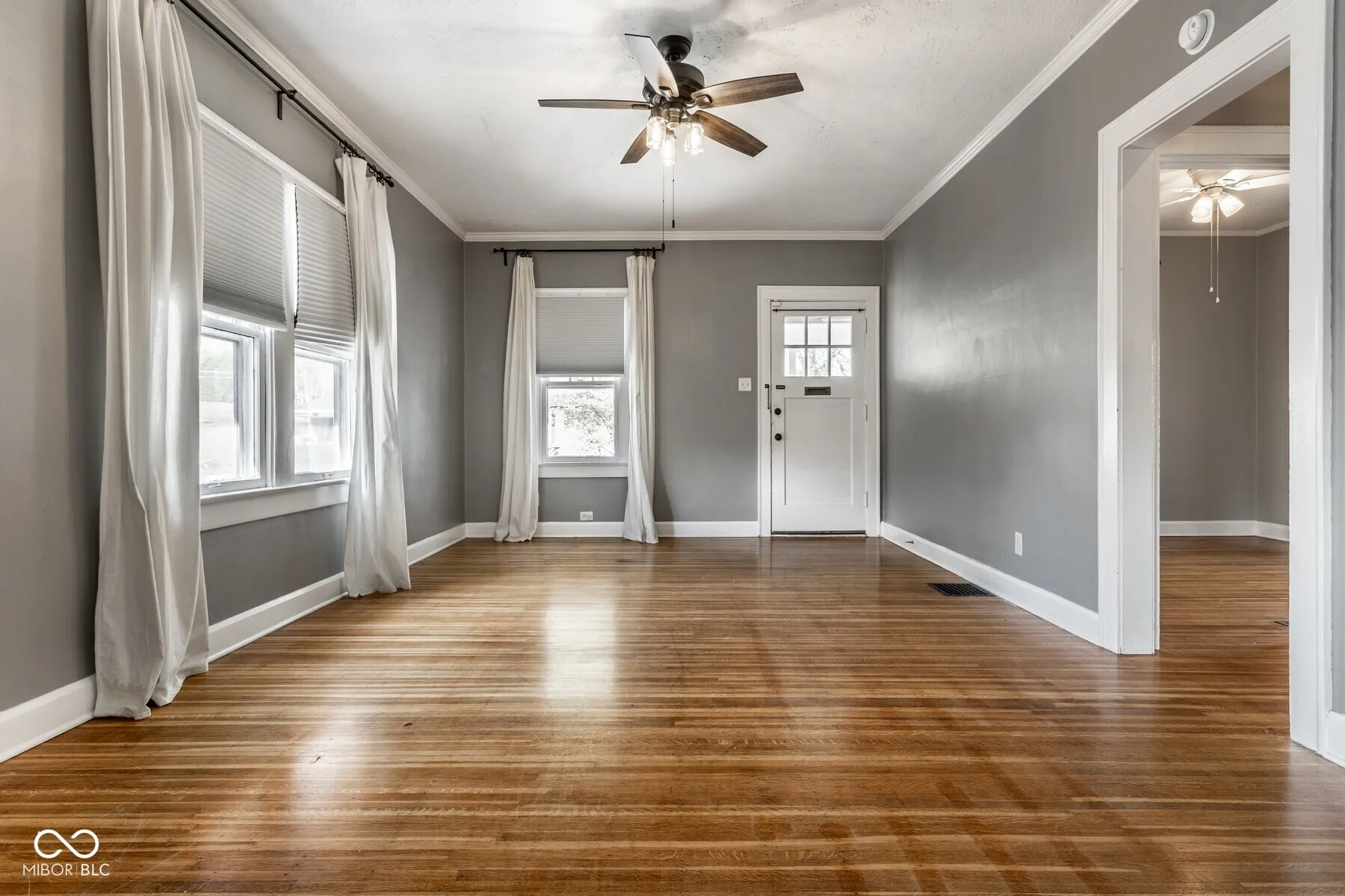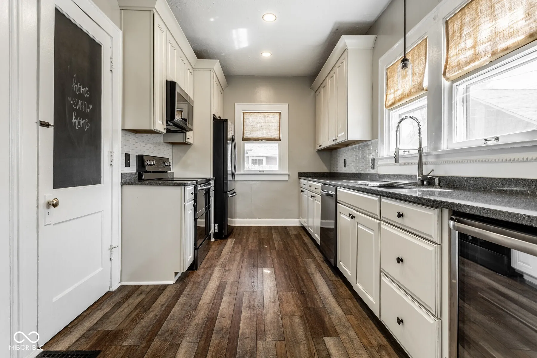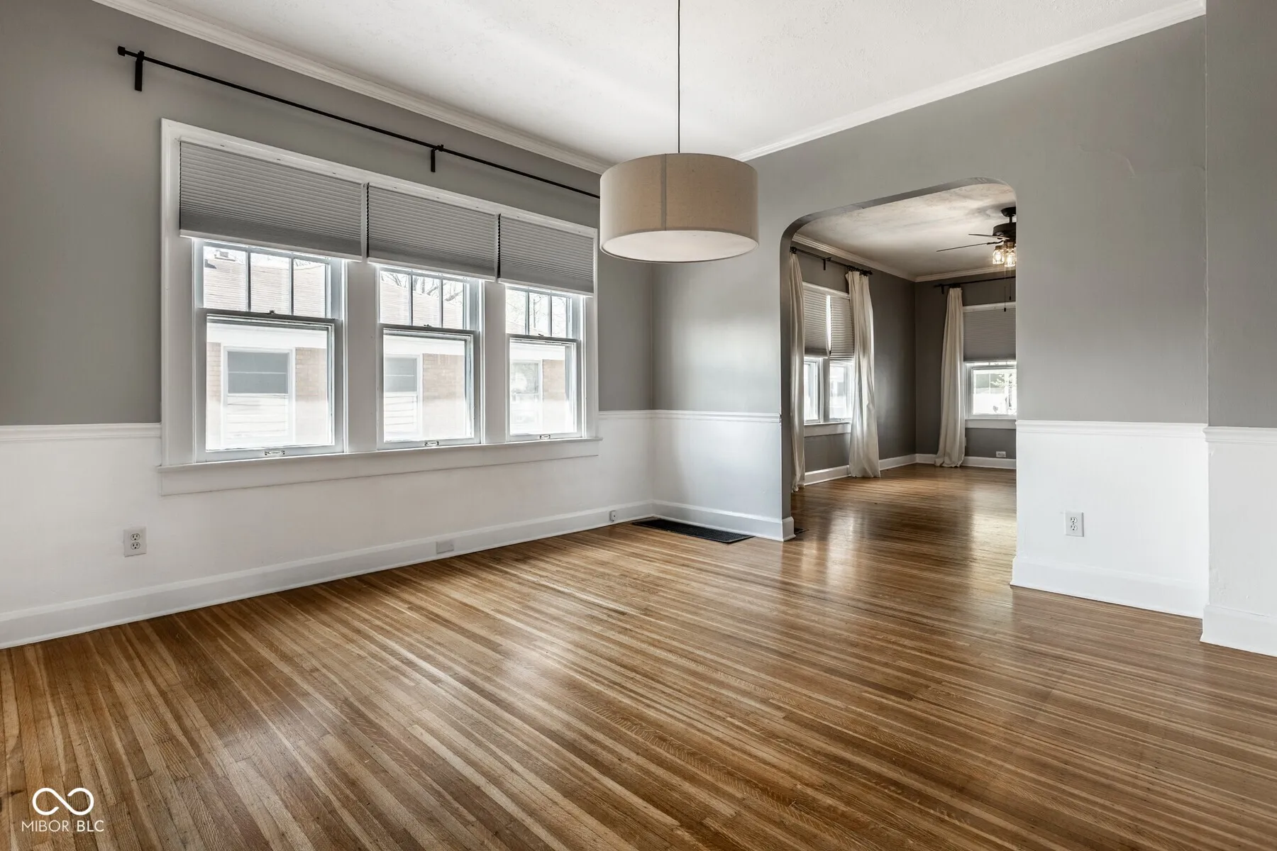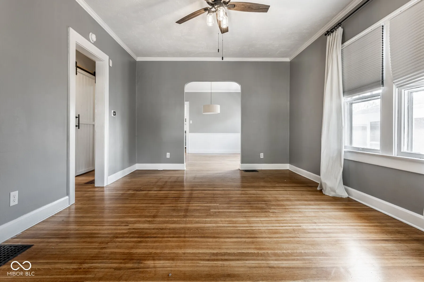 Welcome to this beautifully updated 2-bedroom, 1-bathroom bungalow nestled in the heart of Broad Ripple. Built in 1926, this home blends timeless character with modern updates, offering over 2,000 square feet of inviting living space. Step inside to discover gleaming hardwood floors that flow through a spacious living and dining area, perfect for entertaining or relaxing. The kitchen is generously sized and features updated appliances, ample cabinet space, and a functional layout for everyday living. The bathroom has been tastefully remodeled and includes a sliding barn door for added charm. Both bedrooms are comfortable in size, and a third flex room off the kitchen can serve as an office, mudroom, or extra storage. The finished basement provides additional living space-ideal for a family room, home gym, or game area. Outside, enjoy a large deck perfect for summer gatherings, a fully fenced backyard, and a 2-car detached garage.