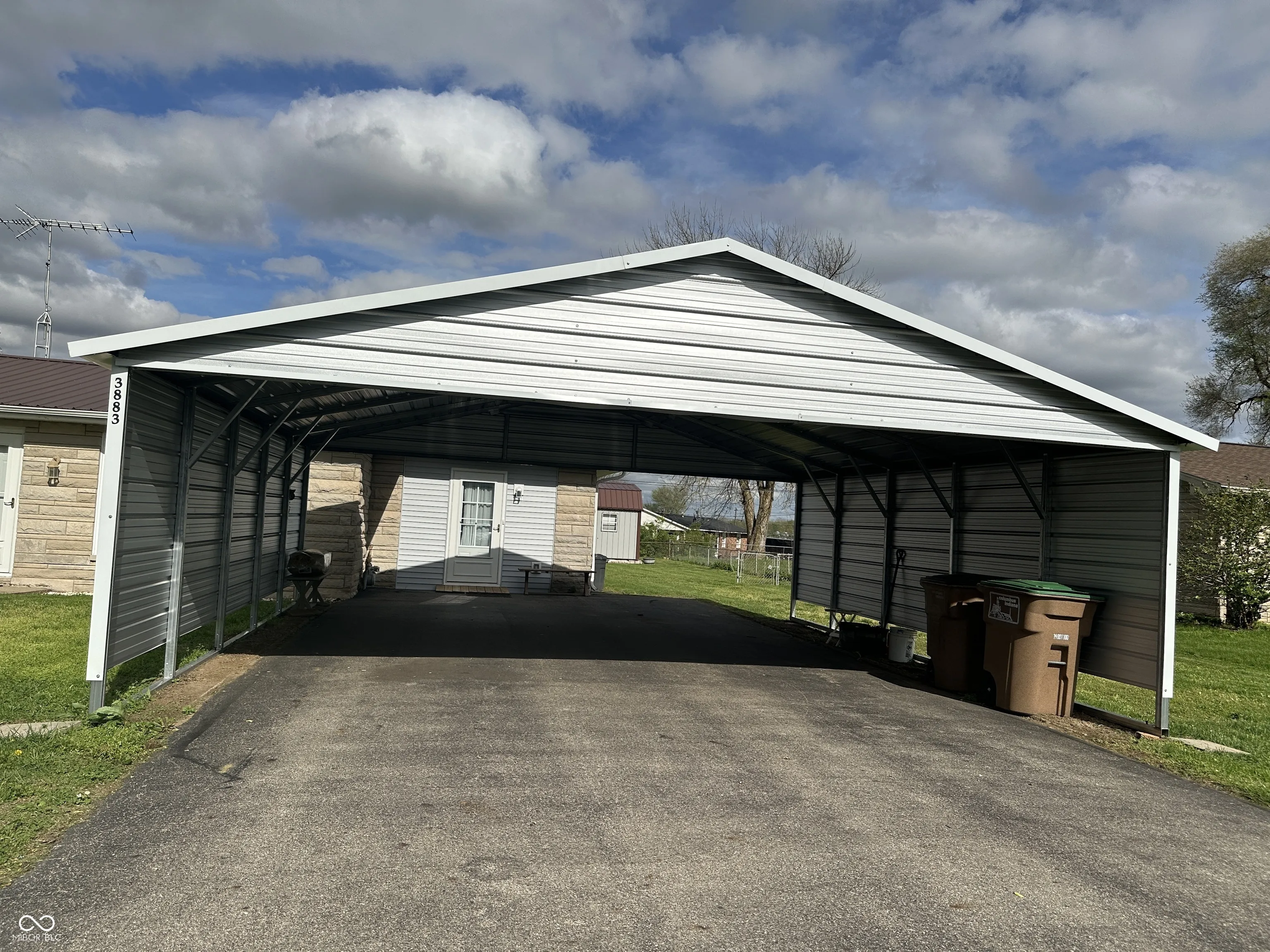 This three-bedroom, 1.5-bathroom home has undergone numerous recent updates. The improvements include a gas furnace, garbage disposal, a new front door, two storm doors, two interior doors (for a bedroom and a closet), a 12×20 shed, a 24×24 carport, a 20×10 patio, updated water, and plumbing lines, two new commodes, one new shower, and a new metal roof.