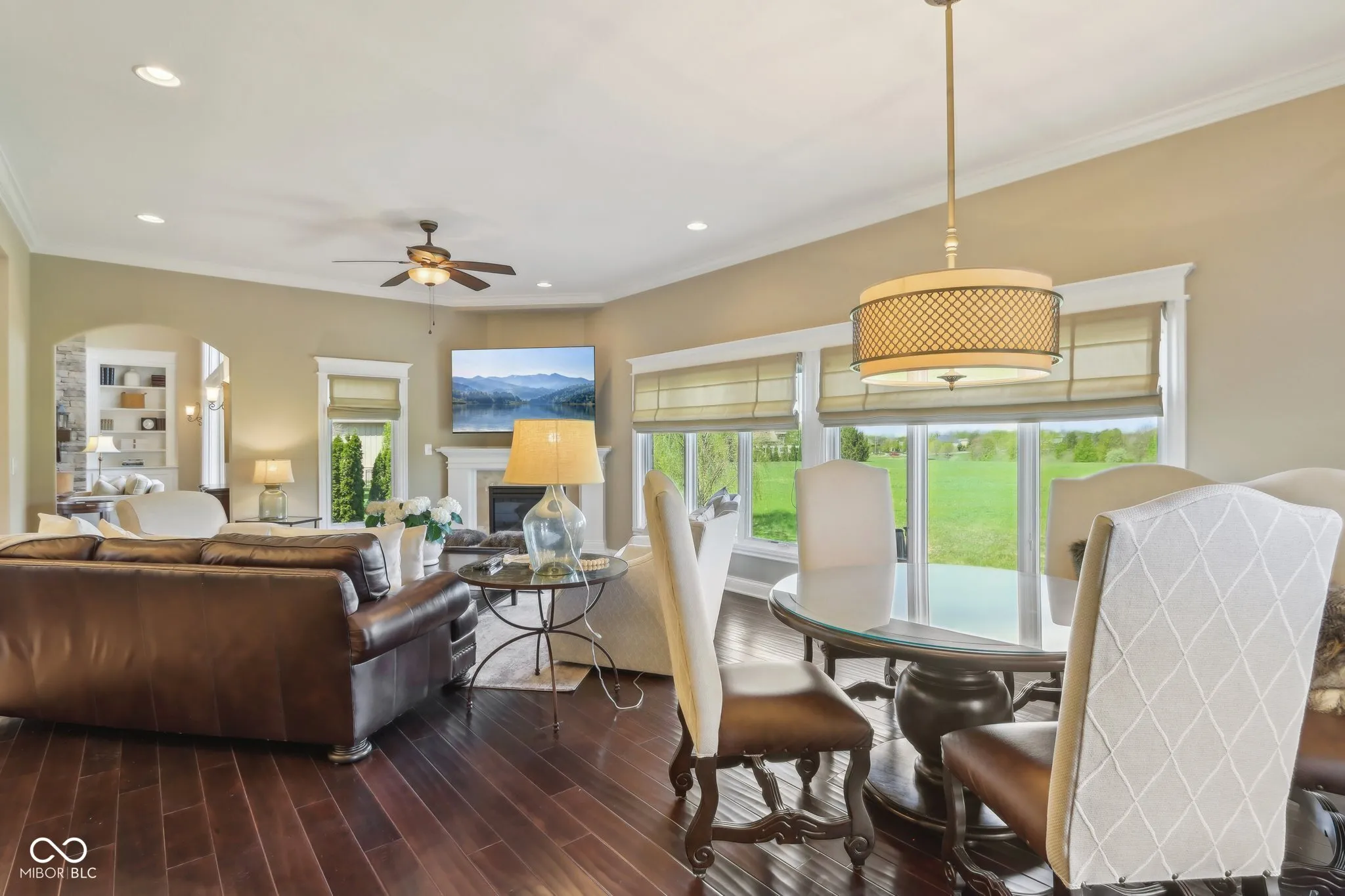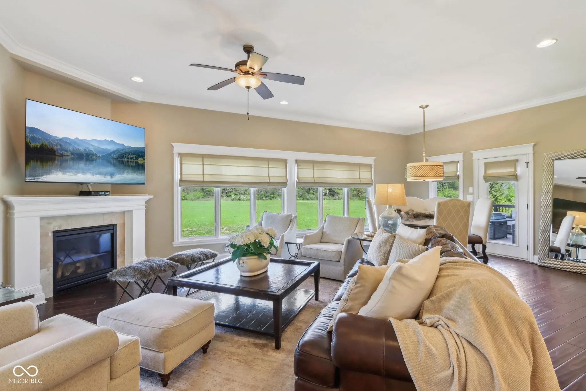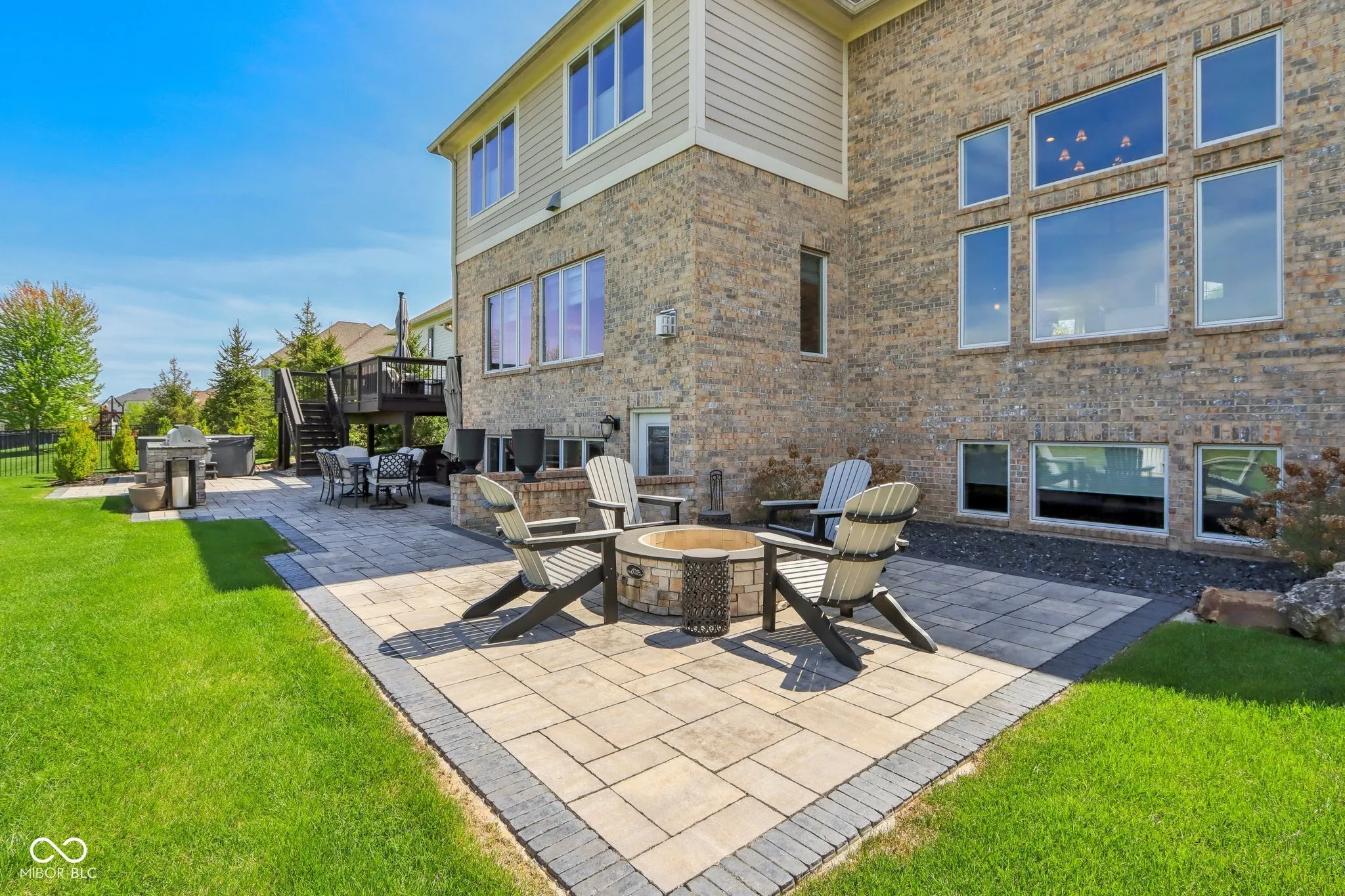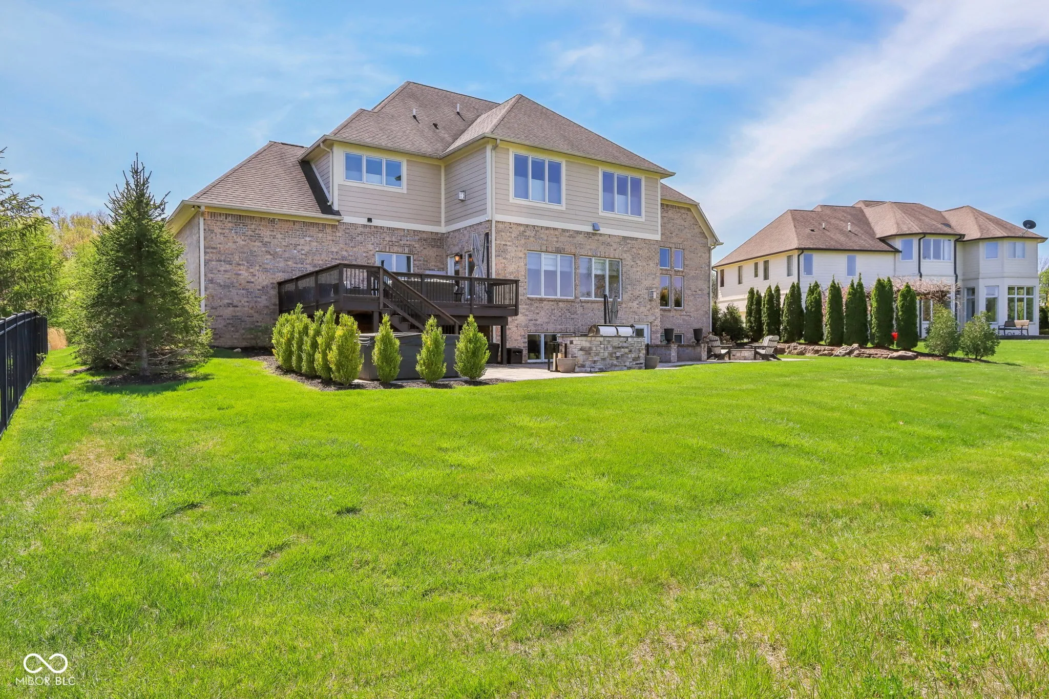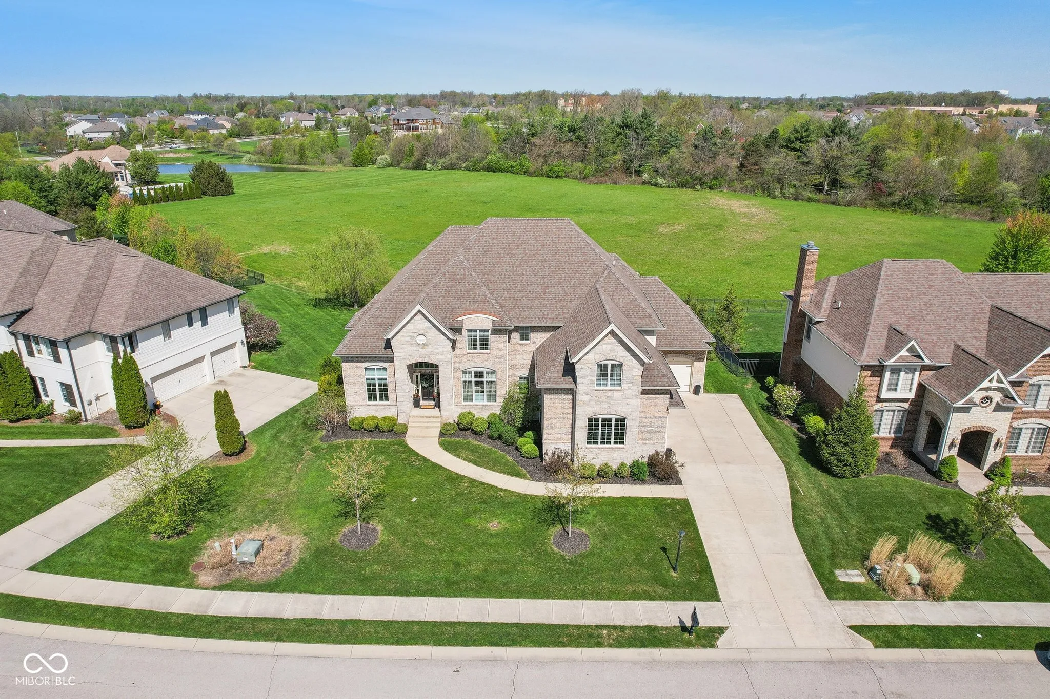Prepare to be impressed by this exquisitely crafted and meticulously maintained 5-bedroom, 6.5-bath luxury home, offering over-the-top elegance and comfort in every detail. From the moment you step into the grand two-story foyer, you’ll be captivated by the open, light-filled floor plan and extensive custom millwork throughout. The heart of the home is the show-stopping great room featuring a dramatic two-story stone fireplace, gorgeous coffered ceiling, and custom built-ins. Entertain in style in the formal dining room or relax in the cozy hearth room with stunning views of the expansive green space behind the home. The chef’s kitchen is a dream with granite counters, top-tier GE Monogram appliances, including a newer 48″ built-in fridge, double ovens, gas cooktop, wine fridge, hot water pot dispenser, and breakfast bar seating. The main level also features a private guest suite, elegant home office with French doors and built-ins, and gleaming hardwood floors. Upstairs, you’ll find a spacious primary suite with sitting area, fireplace, new luxury vinyl plank flooring, and spa-like bath with whirlpool tub, dual-head tiled shower, granite vanities, and oversized walk-in closets. Three additional bedroom suites each offer private baths and walk-ins, plus a bonus library with custom shelving and a convenient upper-level laundry room. The finished walkout lower level is a true retreat with new carpet, large family and rec spaces, full bath, custom wet bar, exercise room, and a home theater with tiered seating and surround sound. There’s also room to add a 6th bedroom with an existing egress window. The outdoor living is just as impressive with an upper-level deck, and lower-level paver patio with built-in grill station, hot tub, and wood-burning fire pit. 4-car garage, irrigation, and professional landscaping complete this truly exceptional property. Walking path to West Park directly across the street!