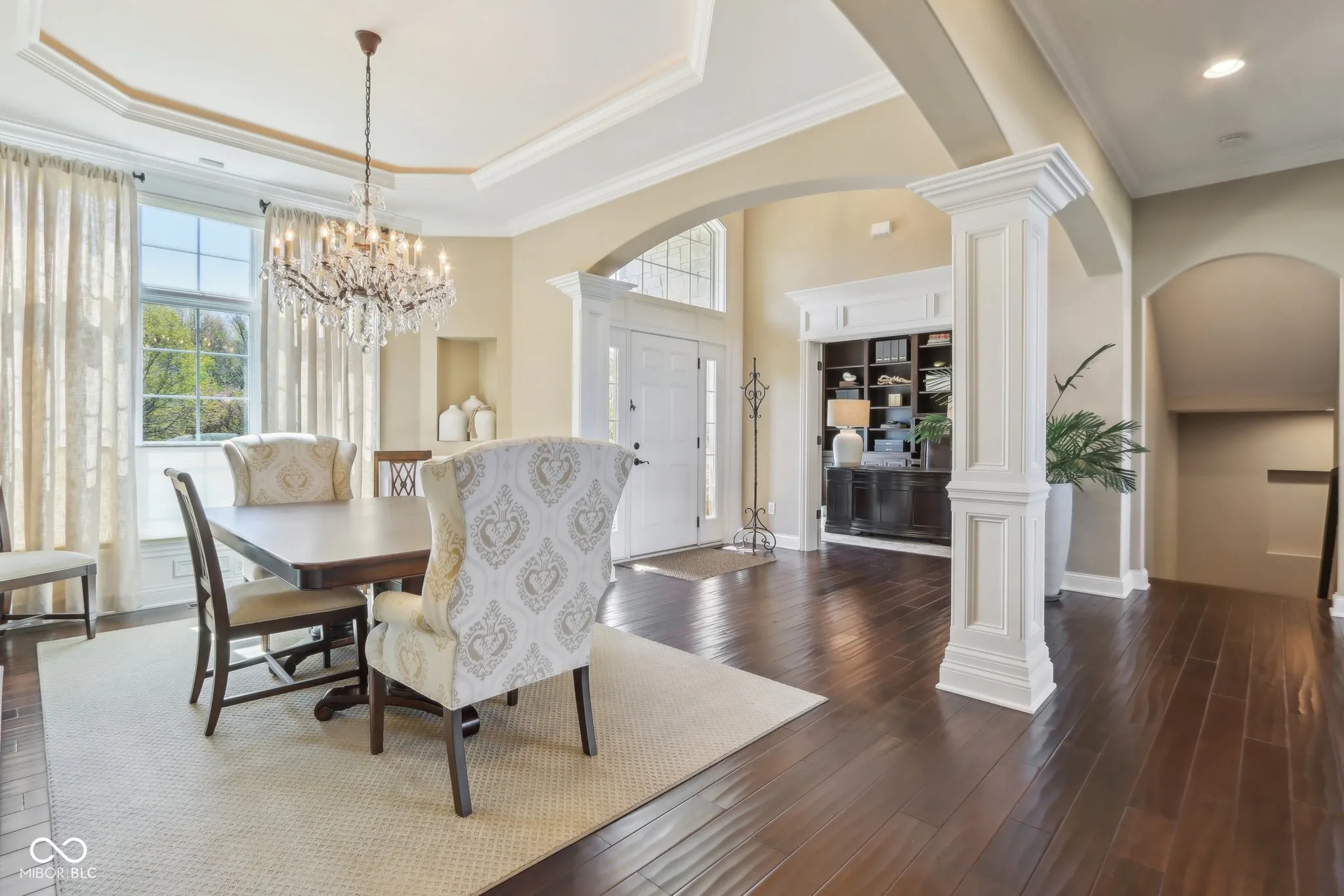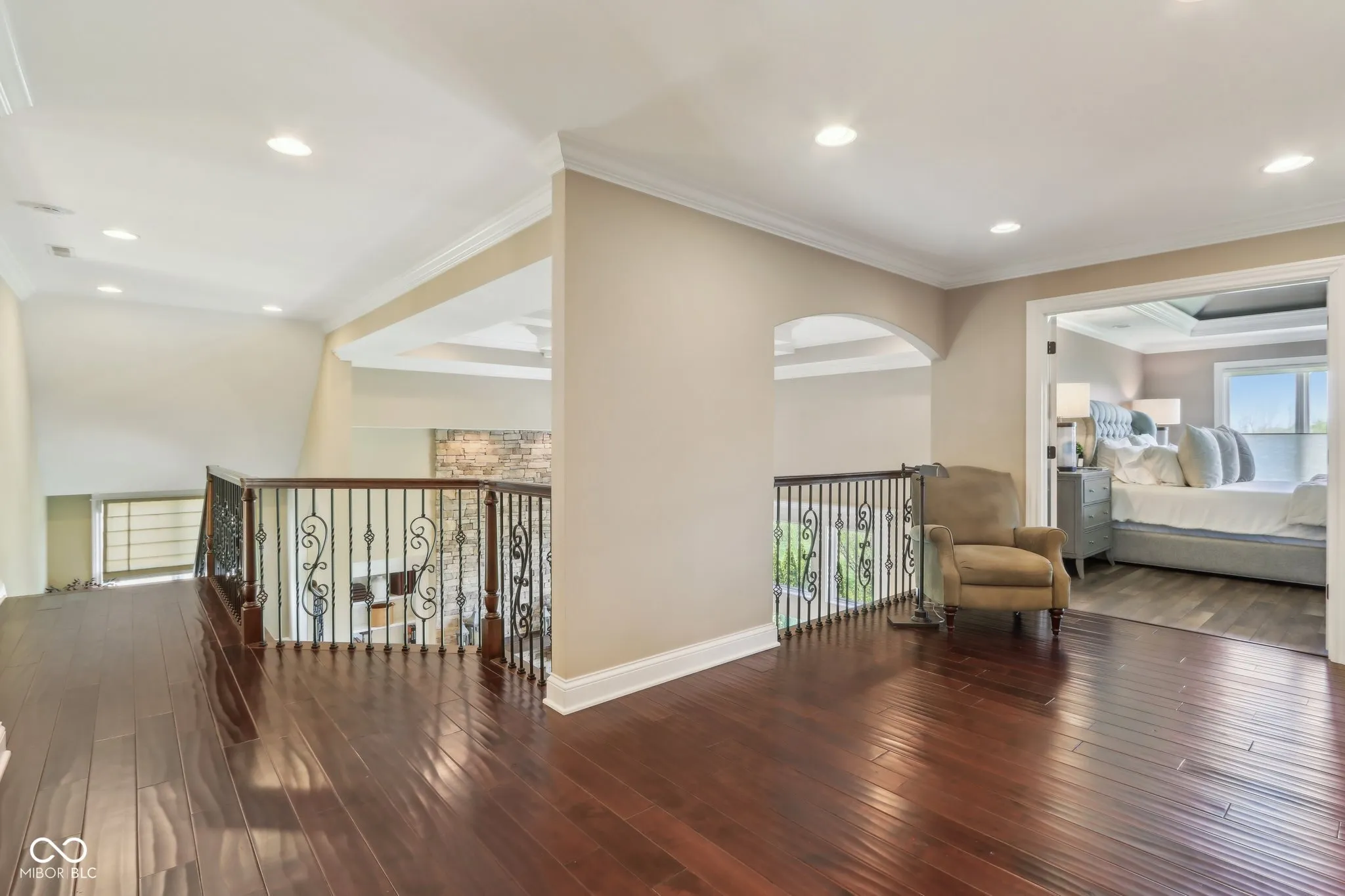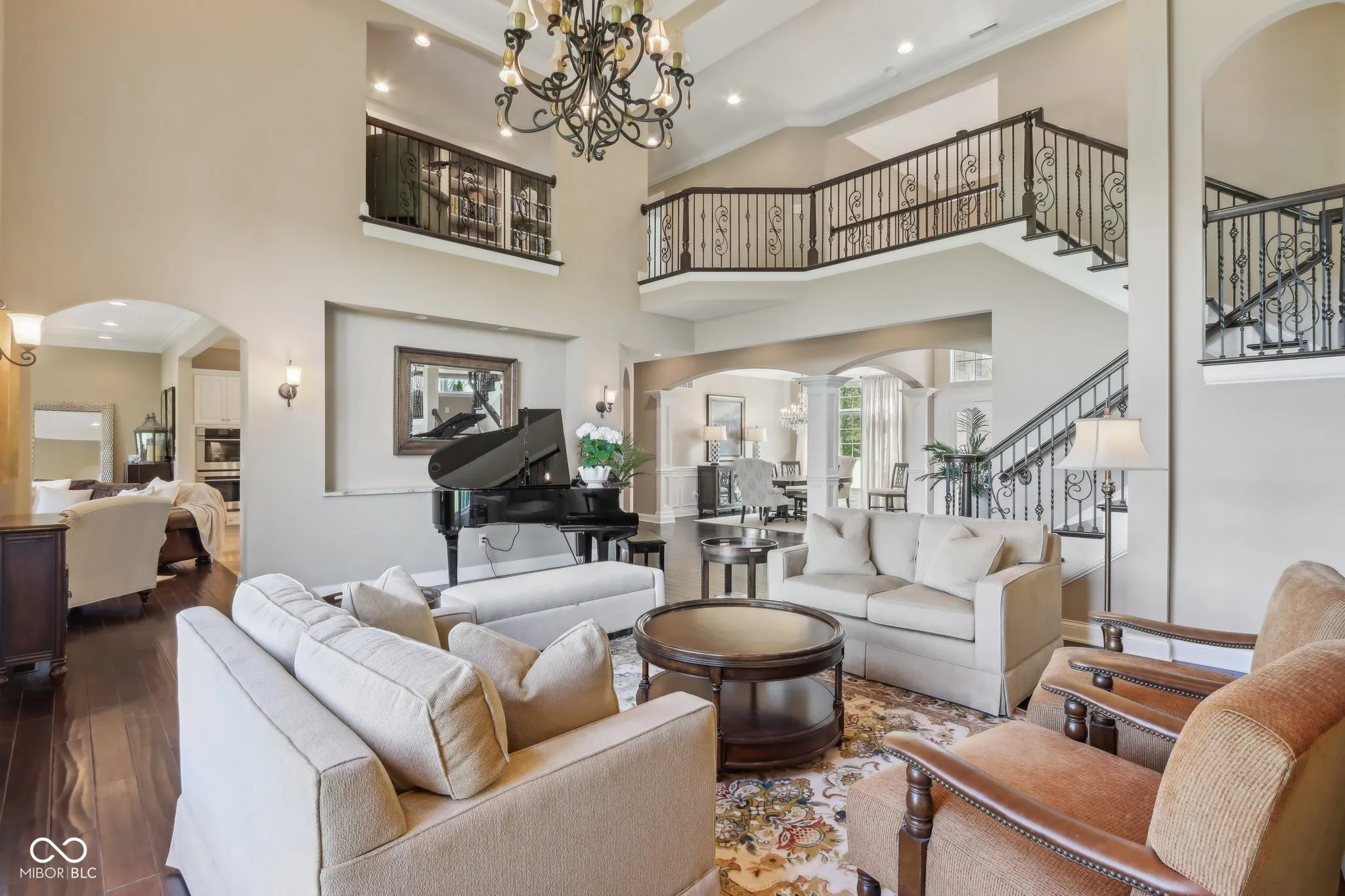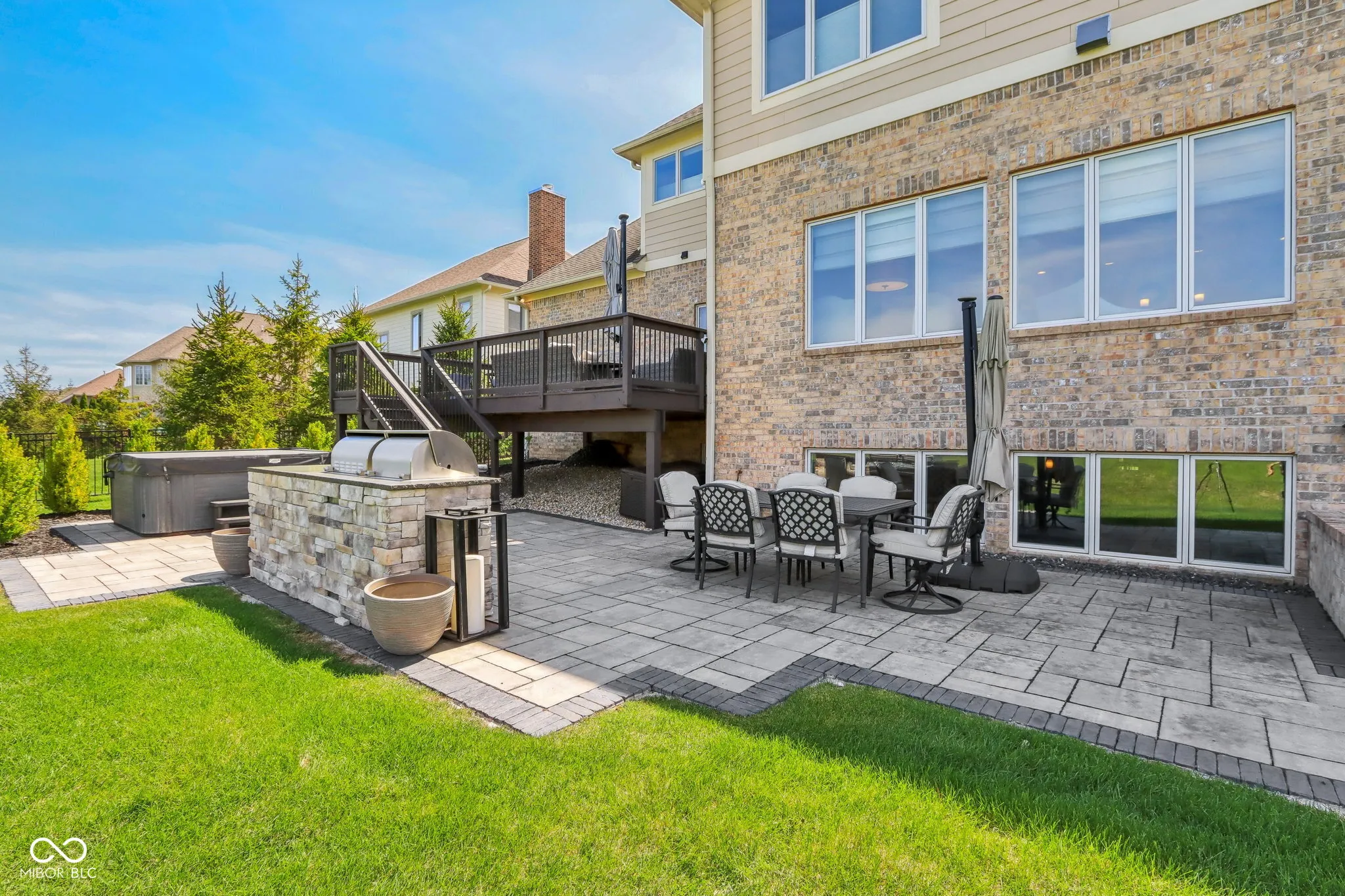 Prepare to be impressed by this exquisitely crafted and meticulously maintained 5-bedroom, 6.5-bath luxury home, offering over-the-top elegance and comfort in every detail. From the moment you step into the grand two-story foyer, you’ll be captivated by the open, light-filled floor plan and extensive custom millwork throughout. The heart of the home is the show-stopping great room featuring a dramatic two-story stone fireplace, gorgeous coffered ceiling, and custom built-ins. Entertain in style in the formal dining room or relax in the cozy hearth room with stunning views of the expansive green space behind the home. The chef’s kitchen is a dream with granite counters, top-tier GE Monogram appliances, including a newer 48″ built-in fridge, double ovens, gas cooktop, wine fridge, hot water pot dispenser, and breakfast bar seating. The main level also features a private guest suite, elegant home office with French doors and built-ins, and gleaming hardwood floors. Upstairs, you’ll find a spacious primary suite with sitting area, fireplace, new luxury vinyl plank flooring, and spa-like bath with whirlpool tub, dual-head tiled shower, granite vanities, and oversized walk-in closets. Three additional bedroom suites each offer private baths and walk-ins, plus a bonus library with custom shelving and a convenient upper-level laundry room. The finished walkout lower level is a true retreat with new carpet, large family and rec spaces, full bath, custom wet bar, exercise room, and a home theater with tiered seating and surround sound. There’s also room to add a 6th bedroom with an existing egress window. The outdoor living is just as impressive with an upper-level deck, and lower-level paver patio with built-in grill station, hot tub, and wood-burning fire pit. 4-car garage, irrigation, and professional landscaping complete this truly exceptional property. Walking path to West Park directly across the street!